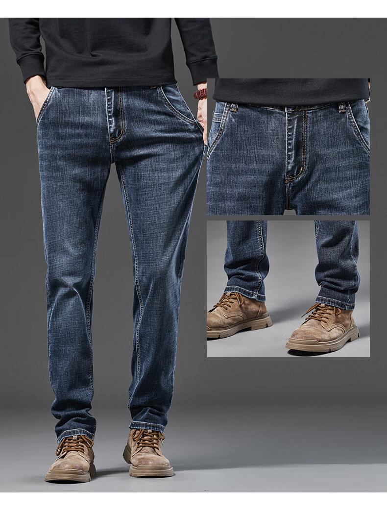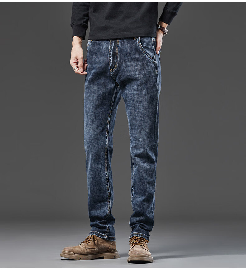 真维斯(Jeanswest)牛仔裤男2026春季新款宽松直筒裤高端弹力厚款大码商务长裤 043H蓝灰色 28