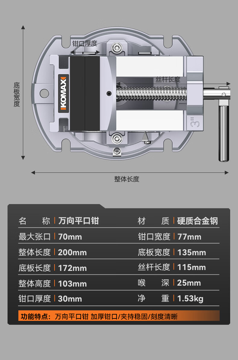 科麦斯(KOMAX)台钳小型多功能家用迷你工作台虎钳木工夹具固定器 可倾斜万向平口钳