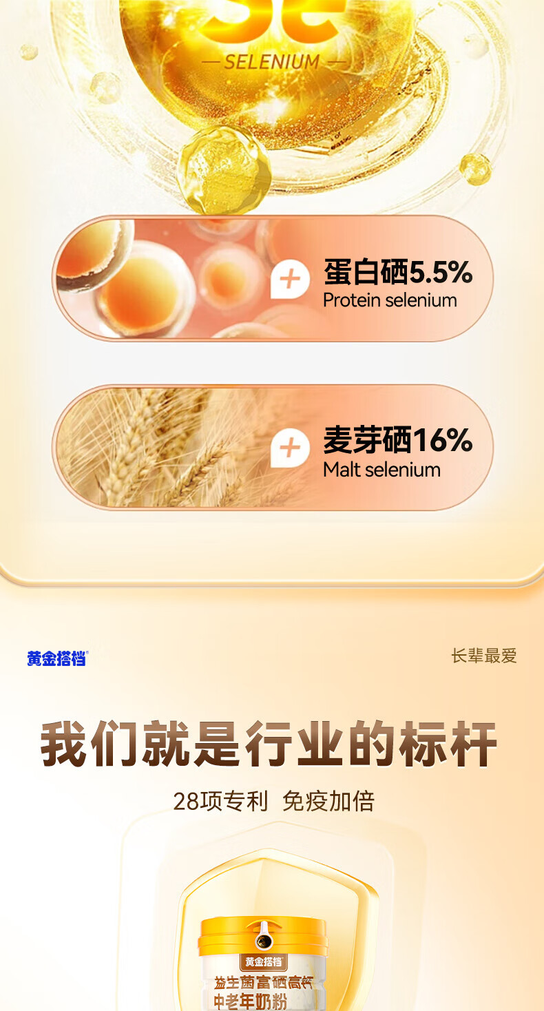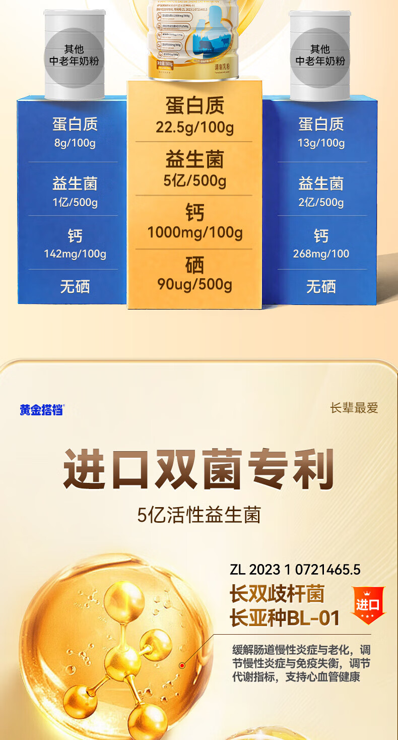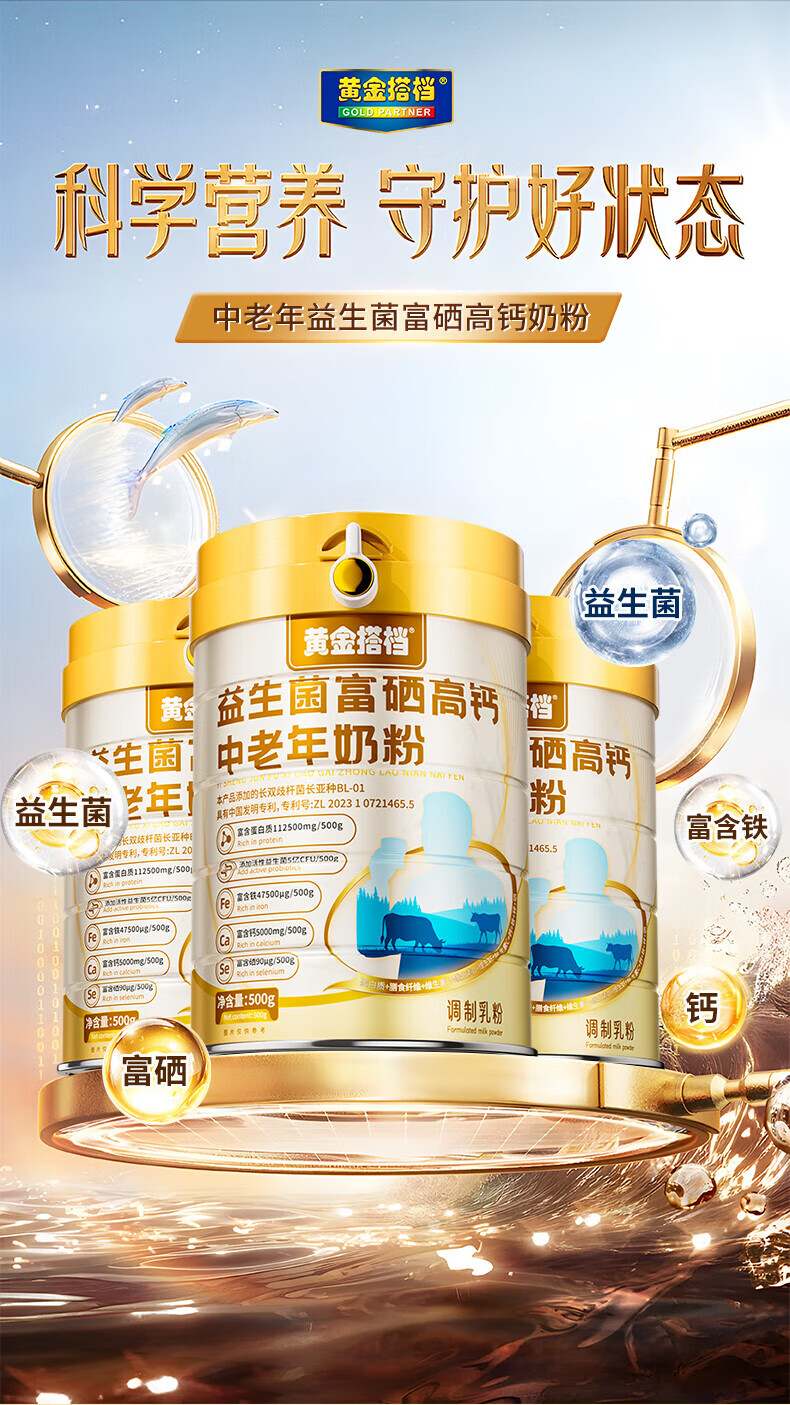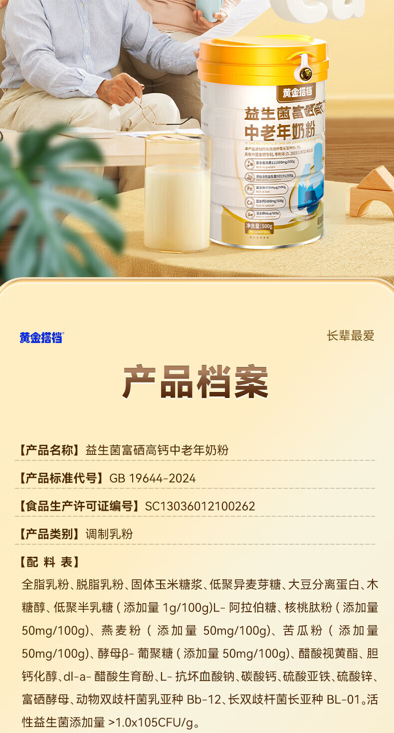 黄金搭档益生菌富硒高钙中老年奶粉增强免疫力0蔗糖送父母营养礼500g*1罐