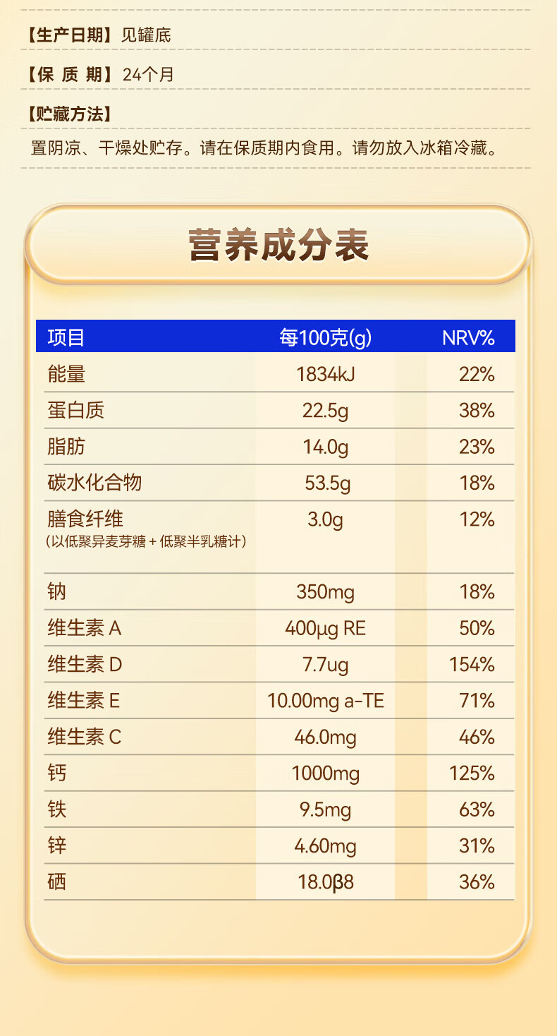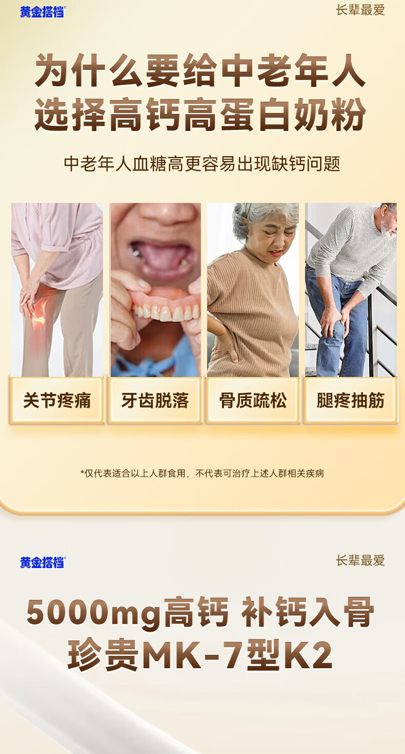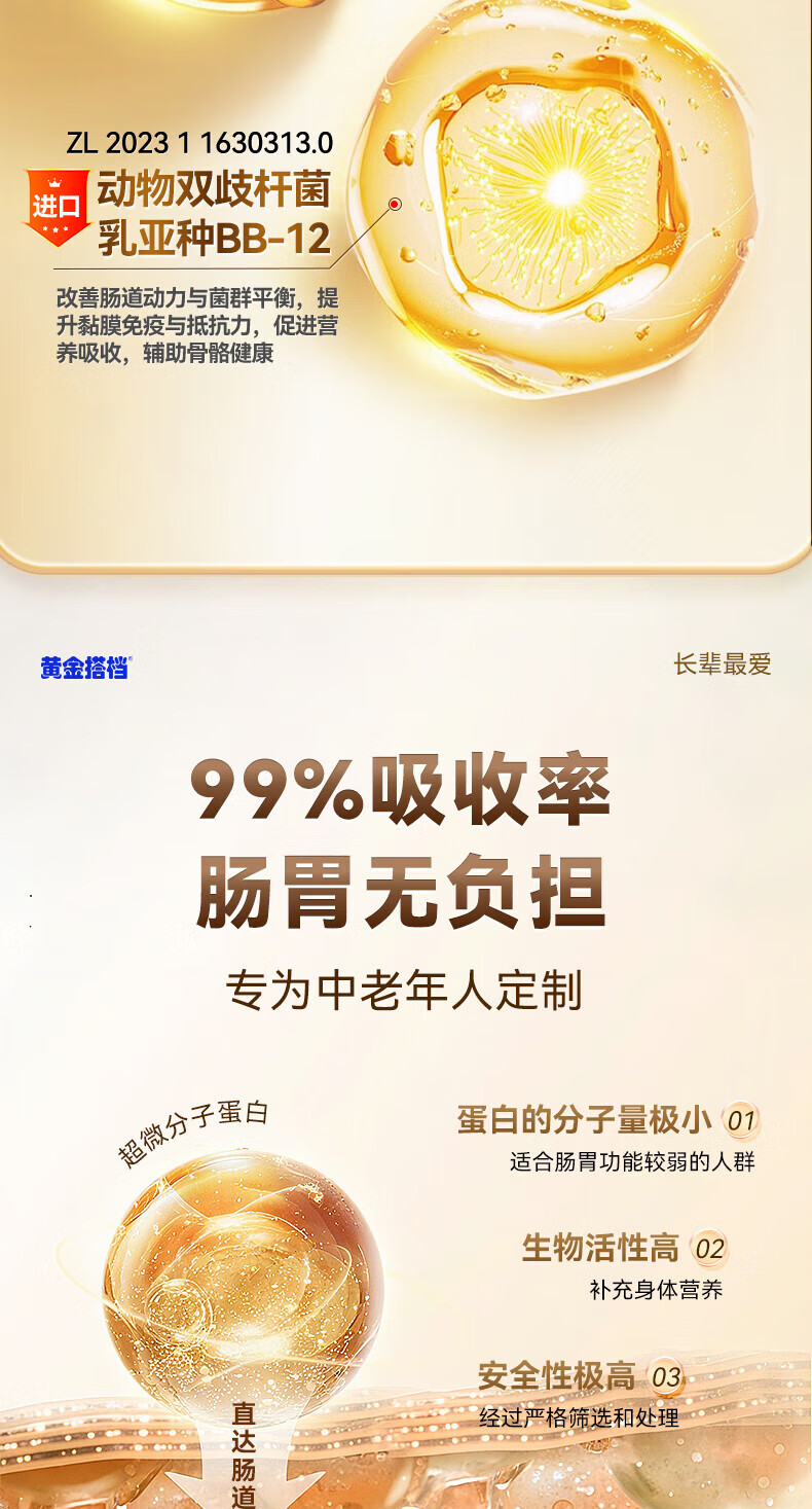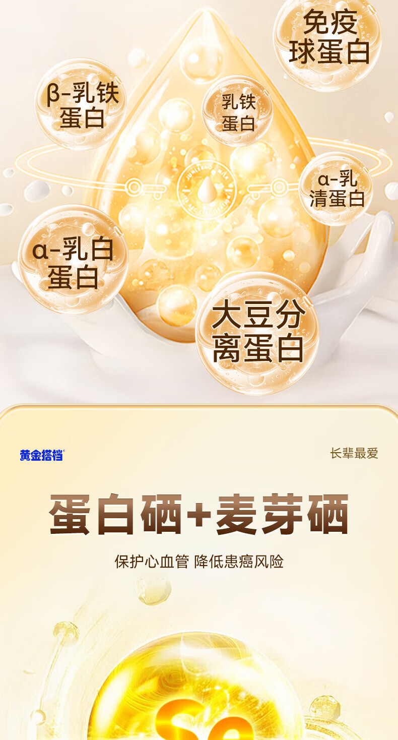 黄金搭档益生菌富硒高钙中老年奶粉增强免疫力0蔗糖送父母营养礼500g*1罐