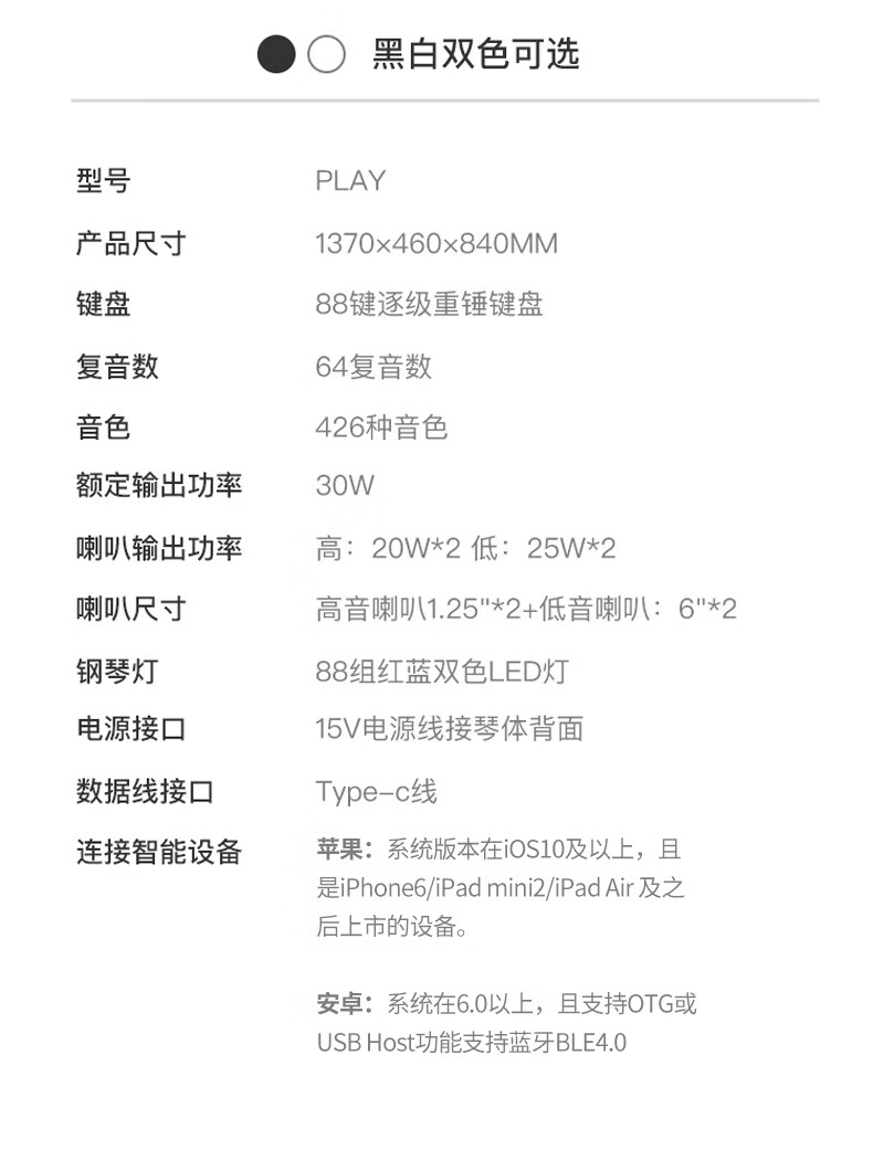 The ONE郎朗代言电钢琴家用88键重锤儿童成人专业智能数码钢琴 PLAY黑色