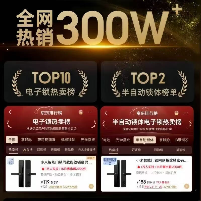 小米智能门锁同款指纹锁密码锁民宿公寓智能门锁电子锁家用防盗门 防盗门专用升级指纹【上门安装】