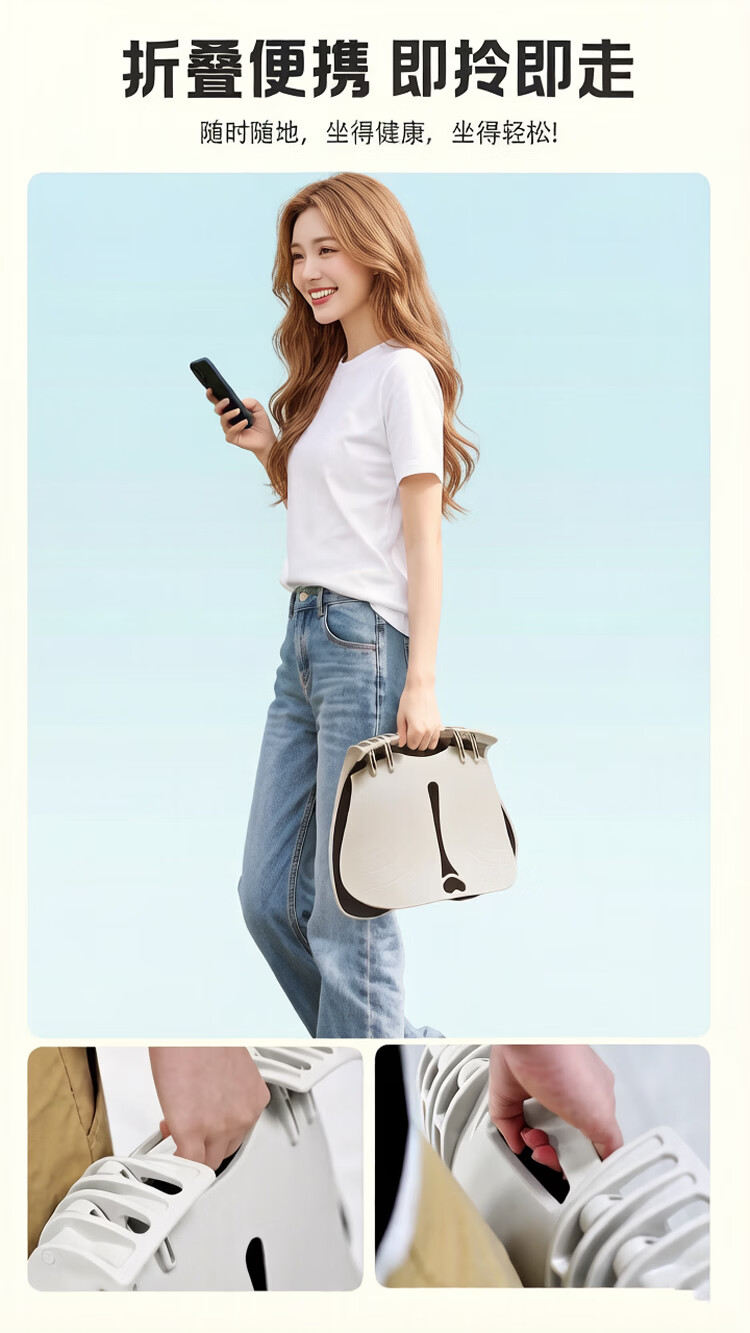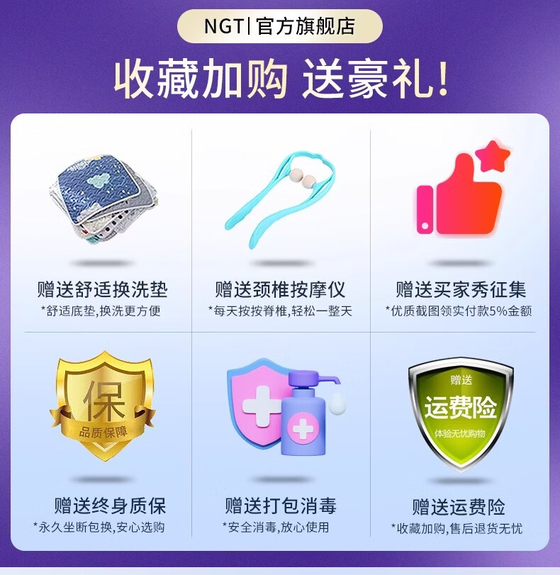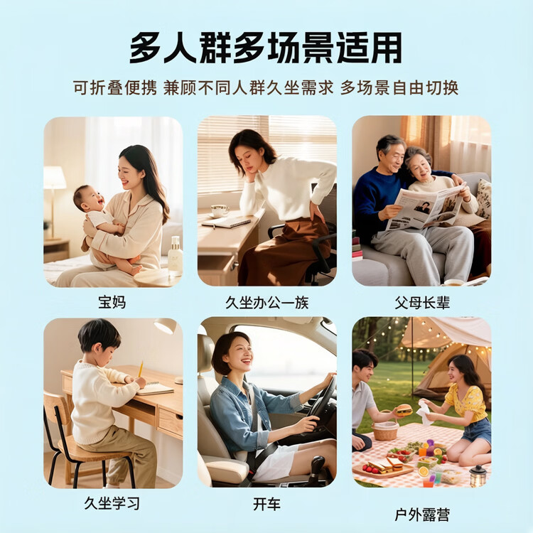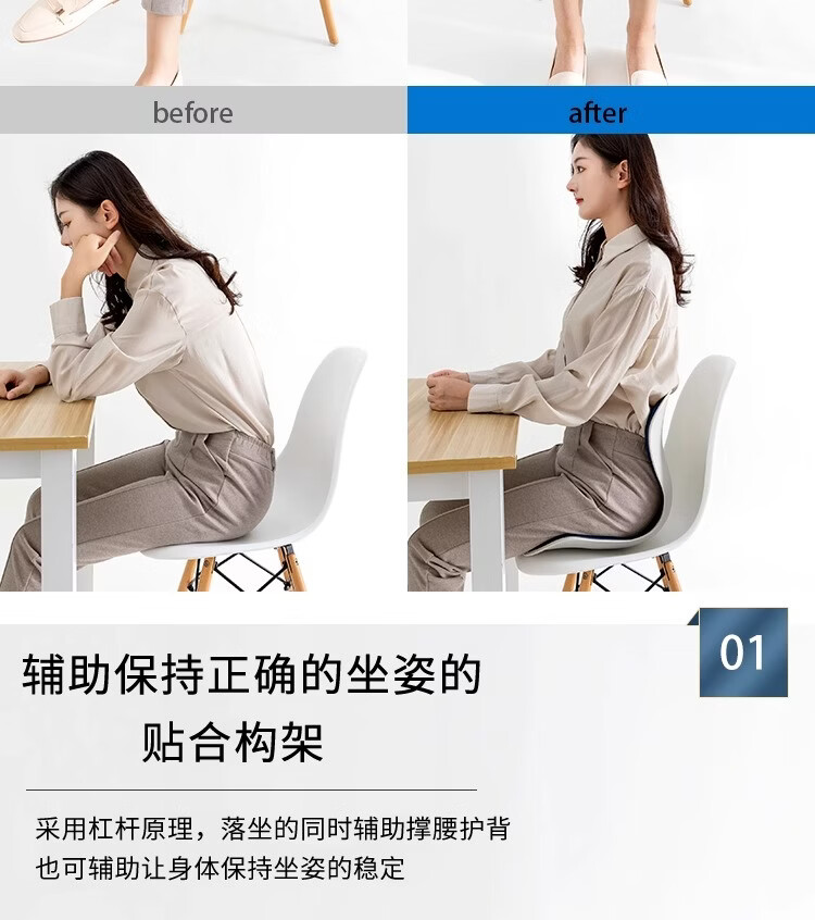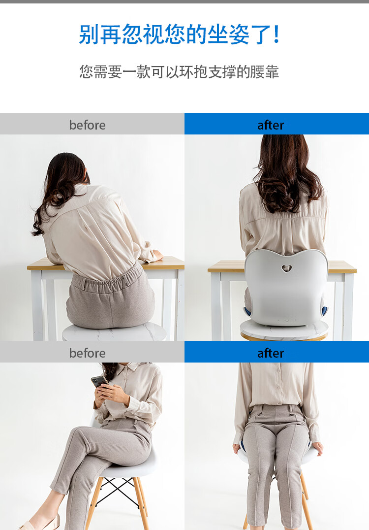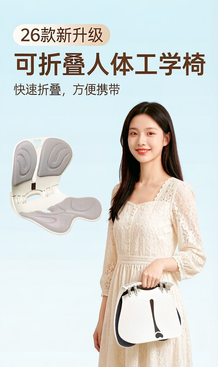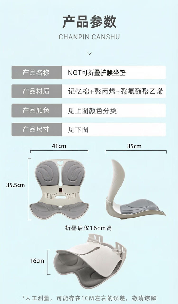 NGTstyle可折叠护腰坐垫办公室久坐神器座靠背托人体工学椅NGT官方旗舰店 尊享-浅灰色折叠款 【150斤内通用】