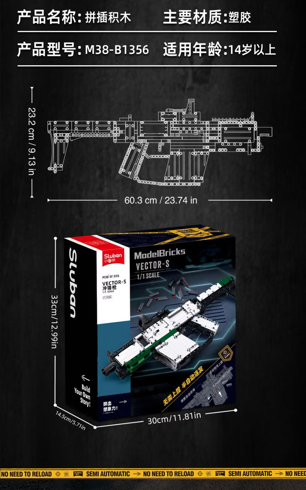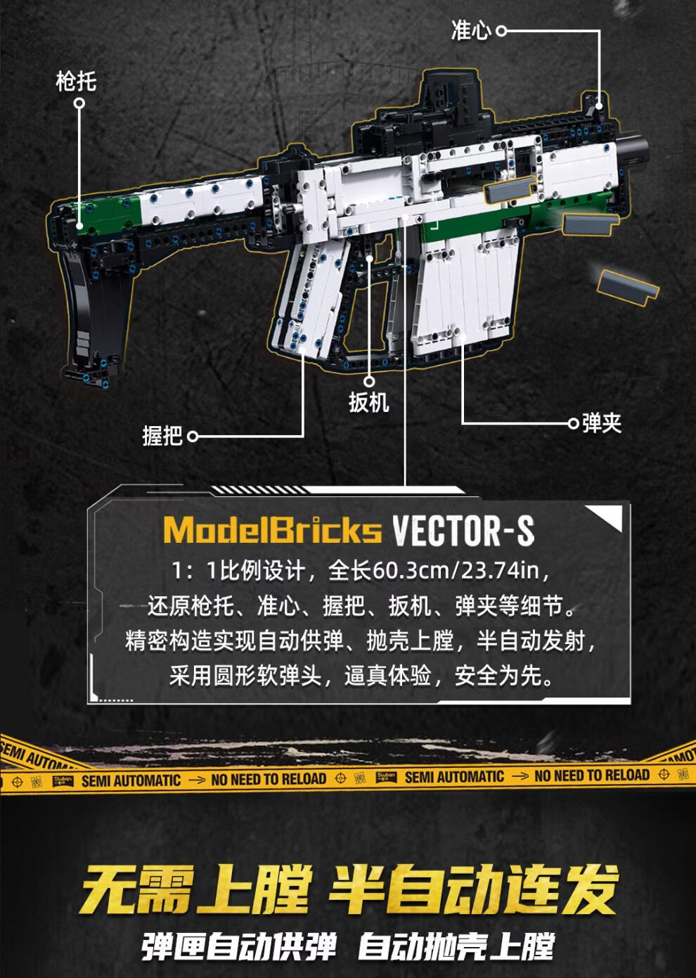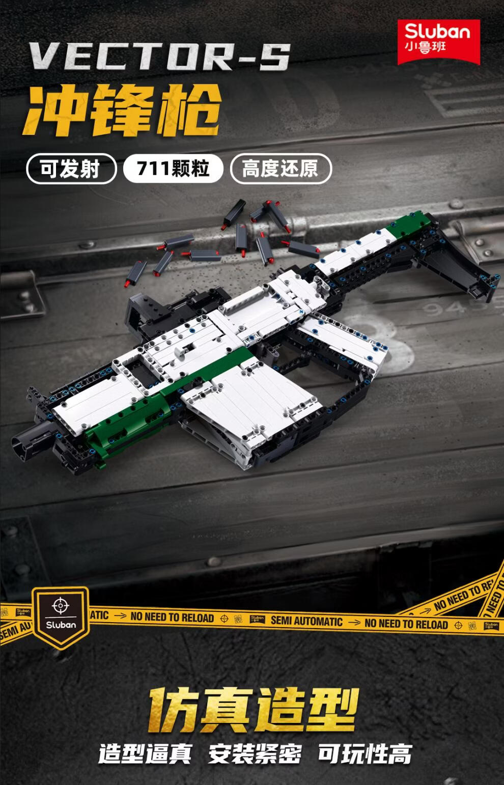 小鲁班VECTORS冲锋枪和平精英周边可发射拼装积木玩具模型礼物男 B1357 SMG-45DS冲锋枪