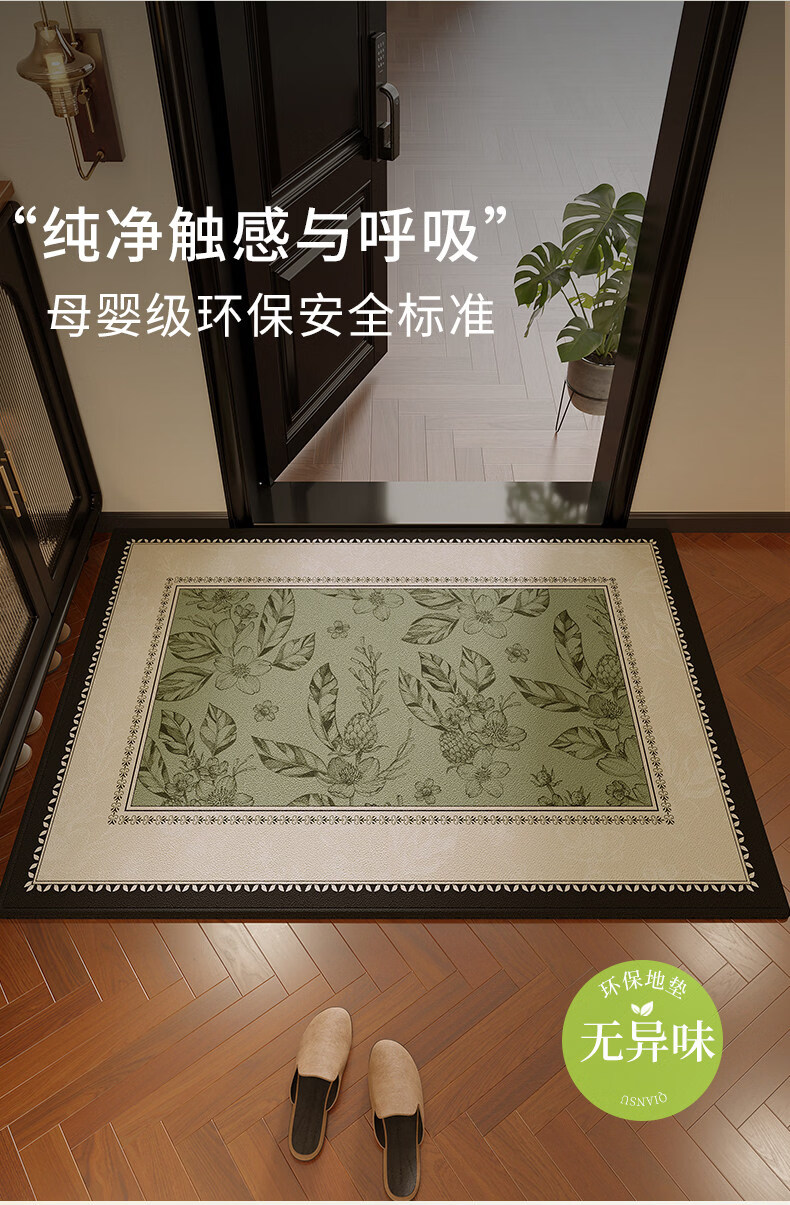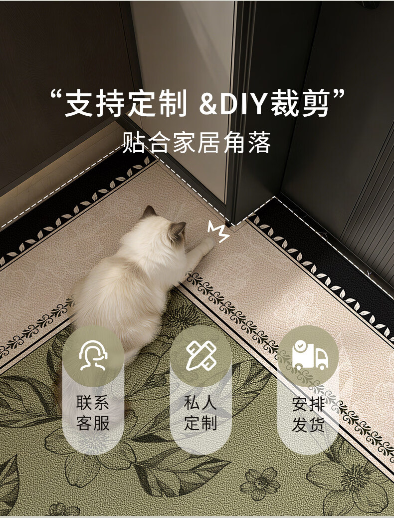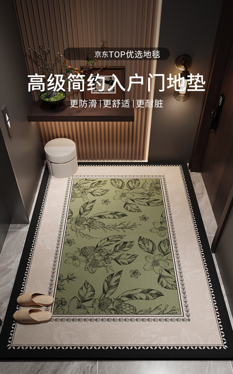 纤苏入户门地垫新款2026高级门垫家用防滑脚垫门口地毯耐脏免洗可裁剪 花蔓幽植pro 60cm*90cm