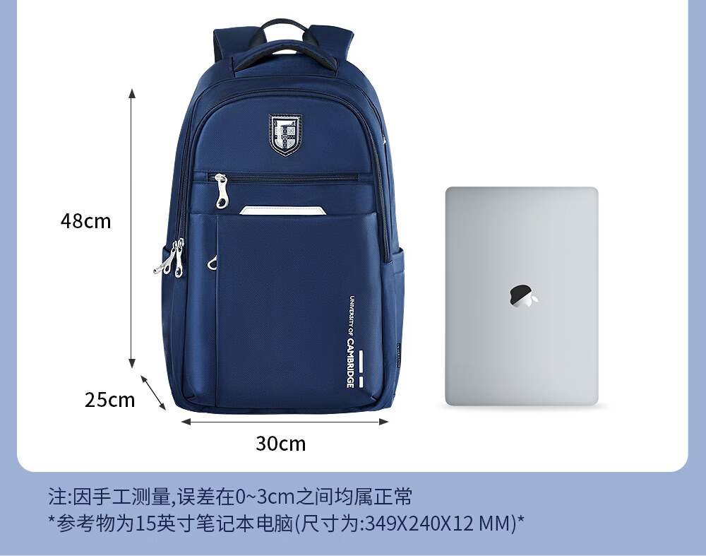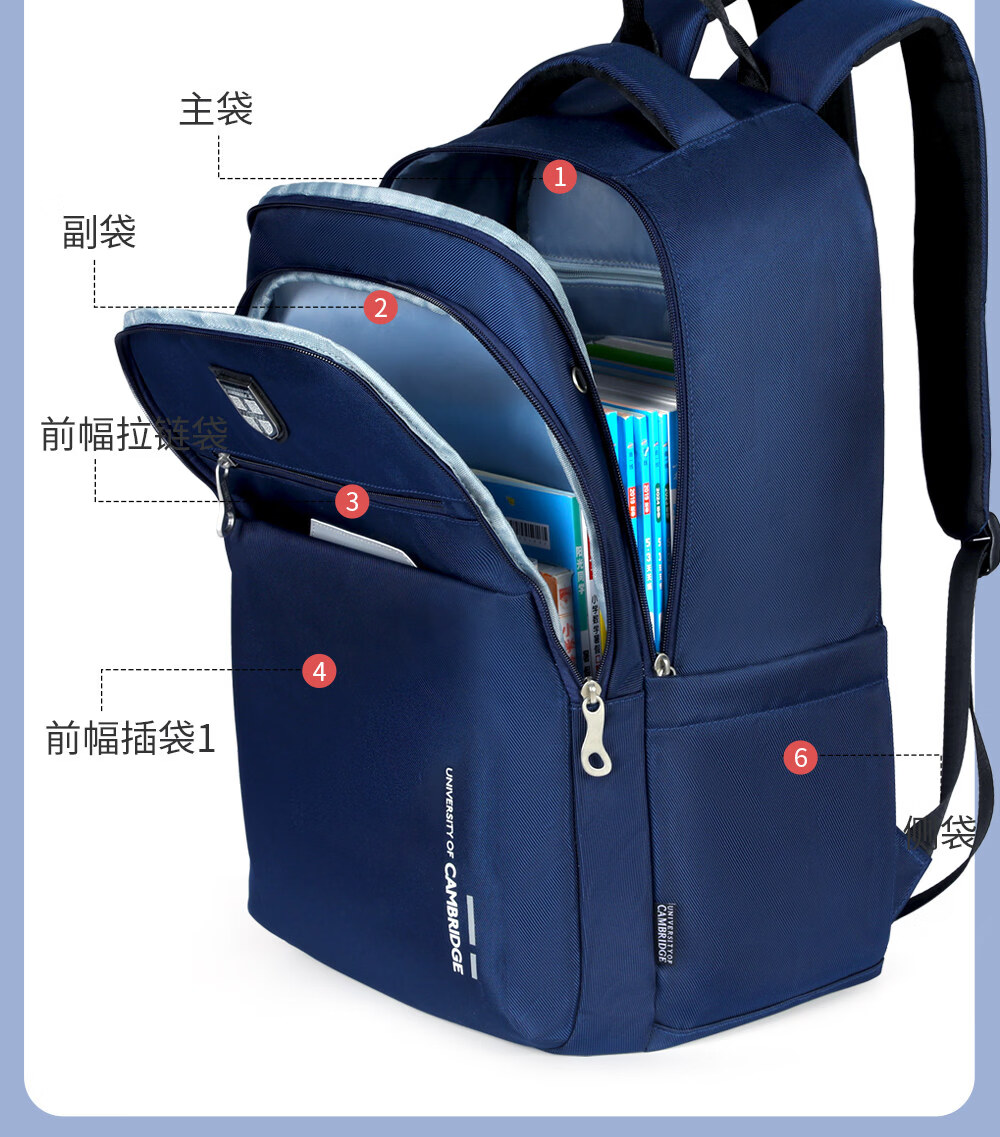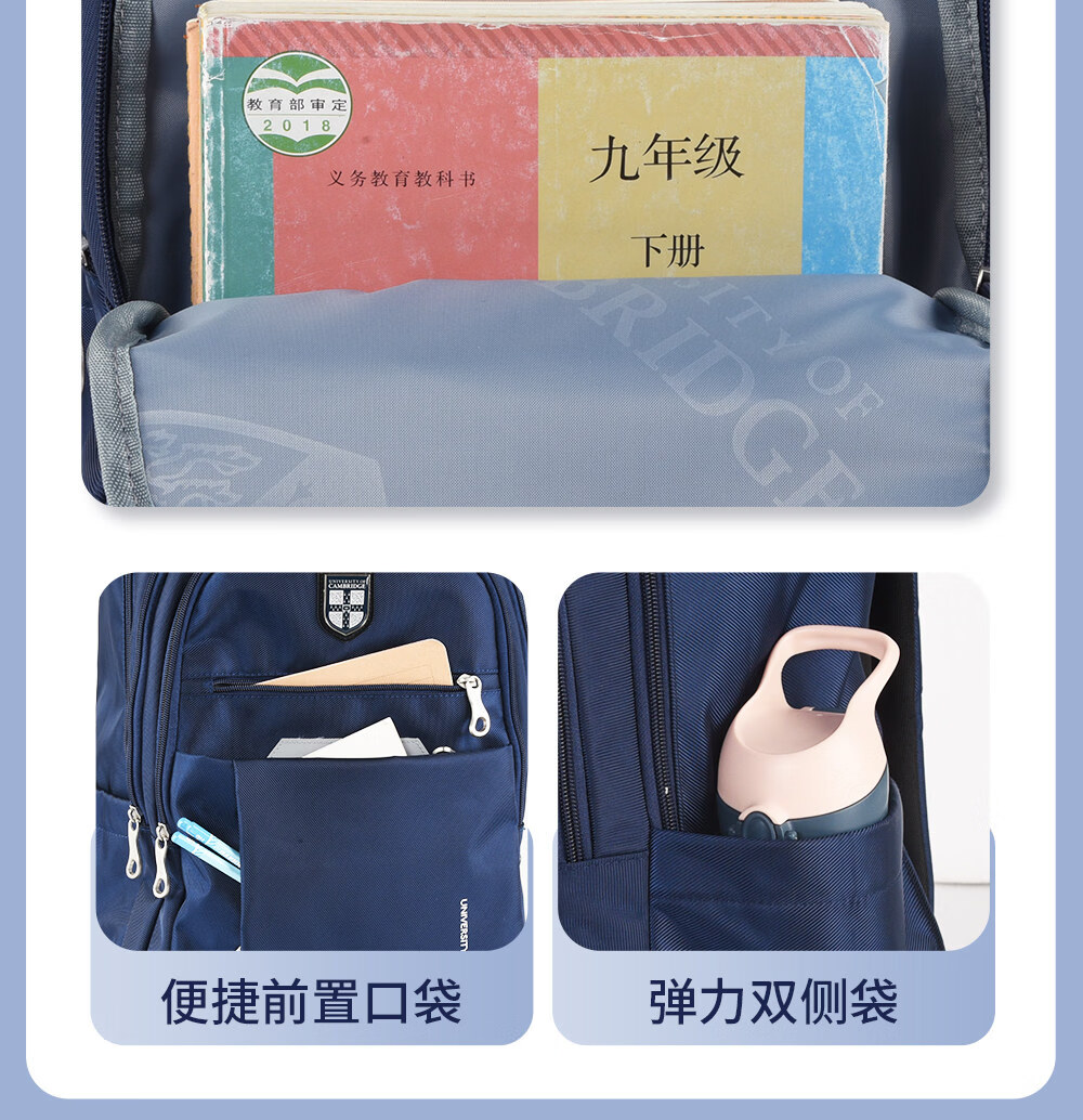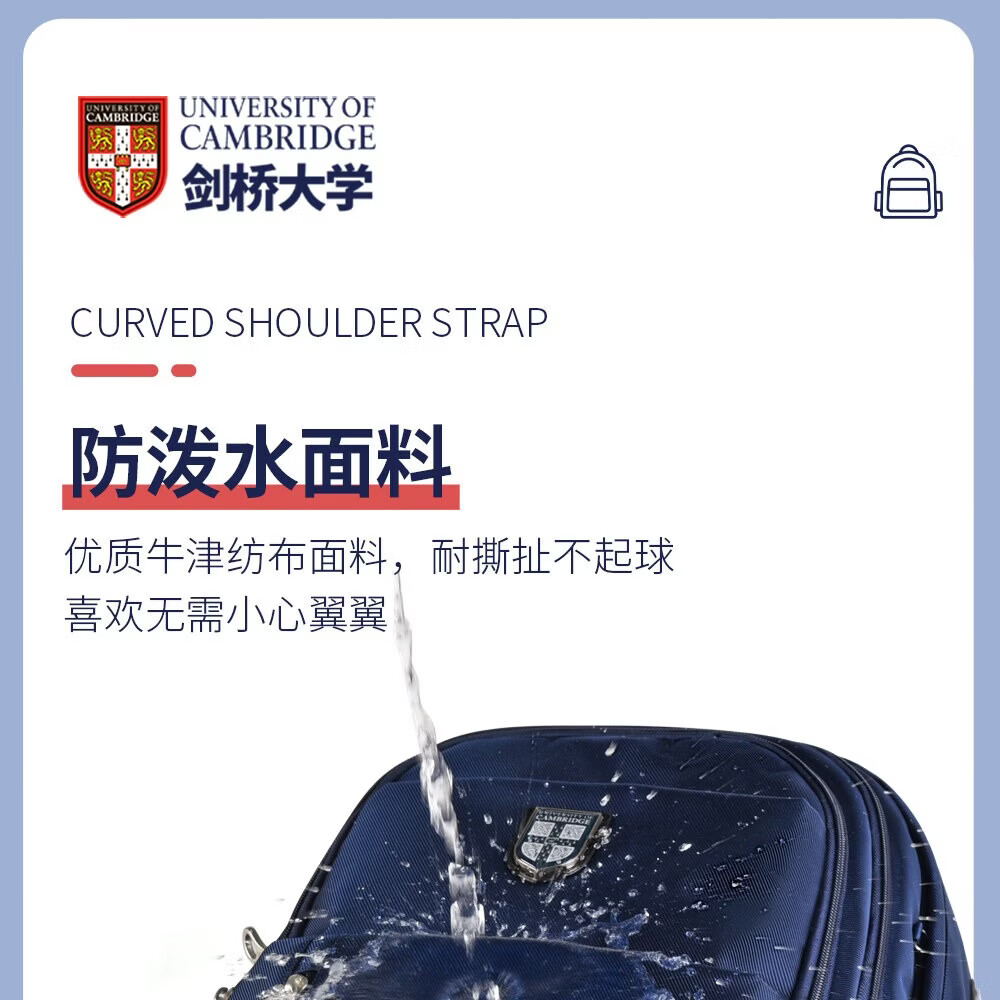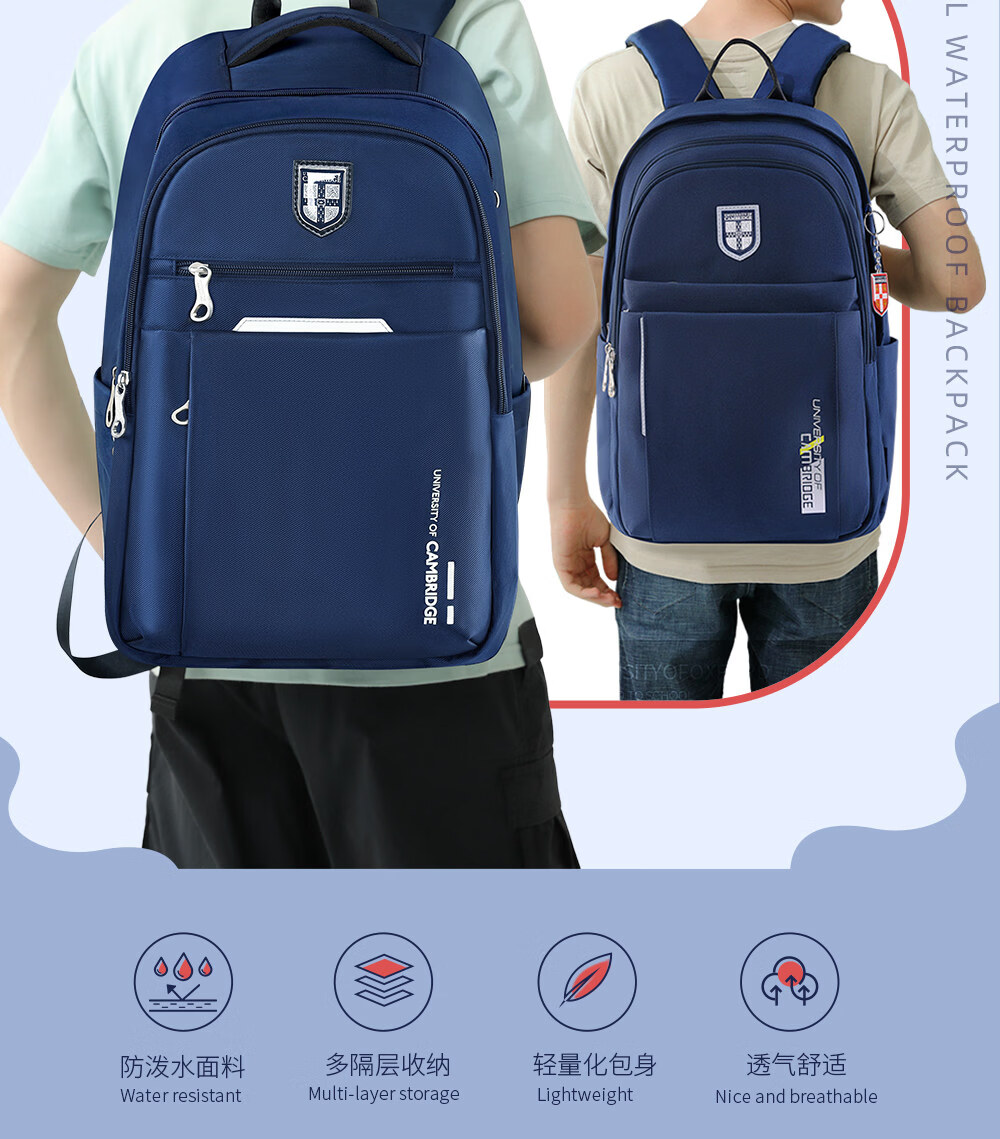 UNIVERSITY OF CAMBRIDGE剑桥大学初中生书包中学生男孩女高中生超大容量旅行双肩背包减负 CA563深蓝 推荐初高中-大学