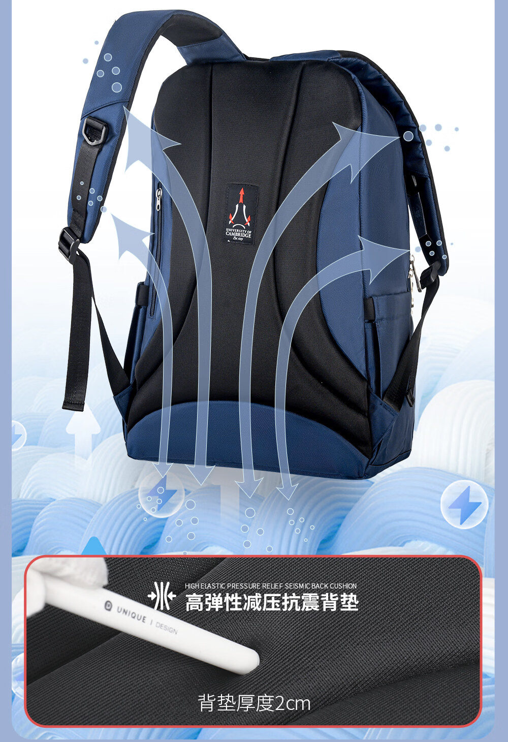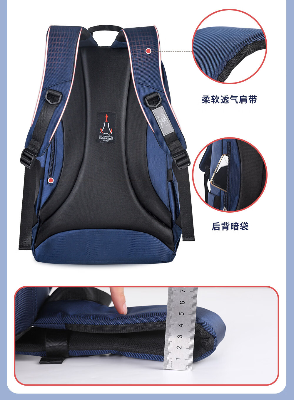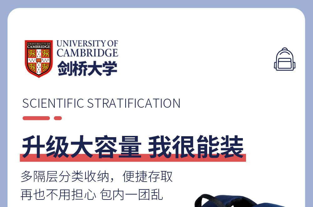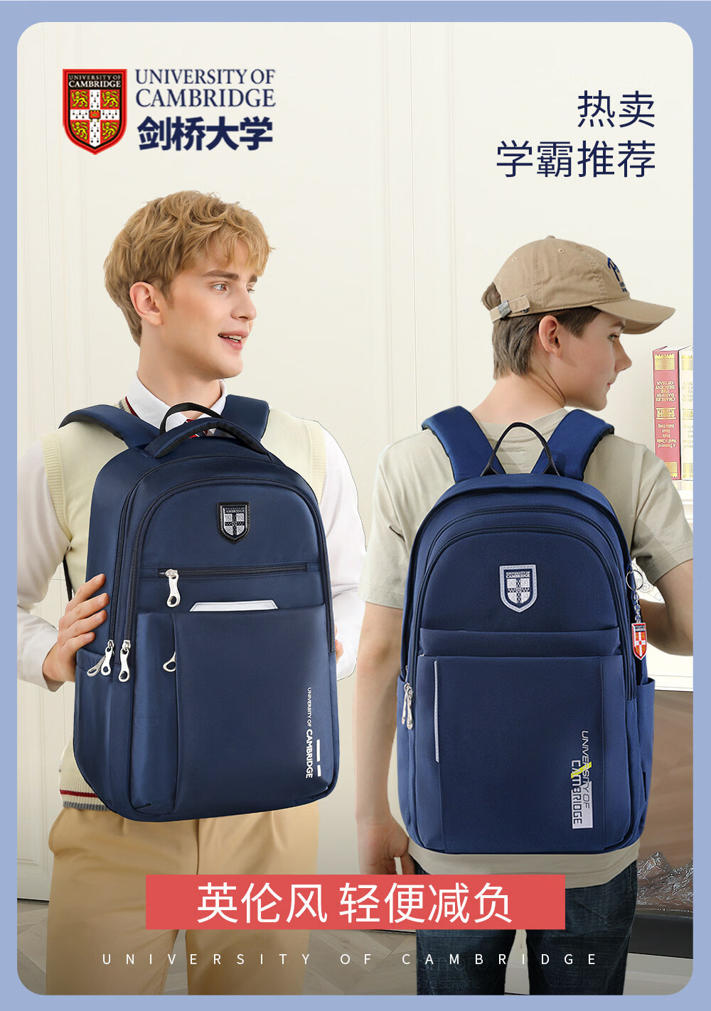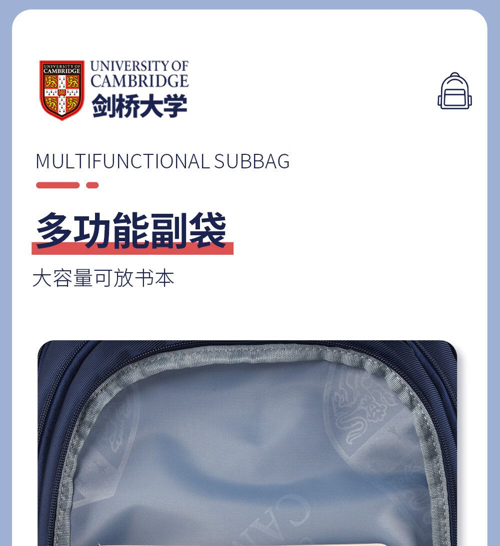 UNIVERSITY OF CAMBRIDGE剑桥大学初中生书包中学生男孩女高中生超大容量旅行双肩背包减负 CA563深蓝 推荐初高中-大学
