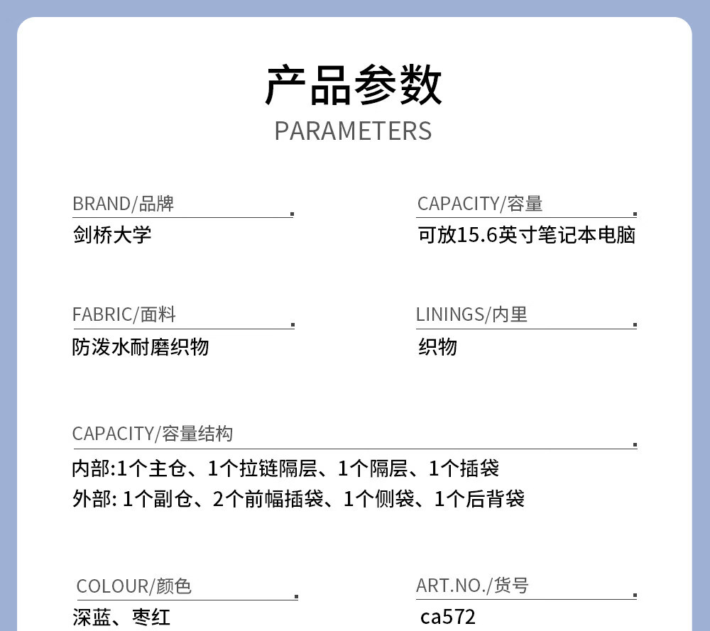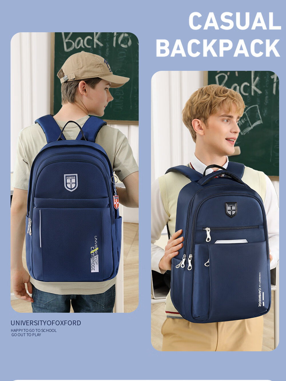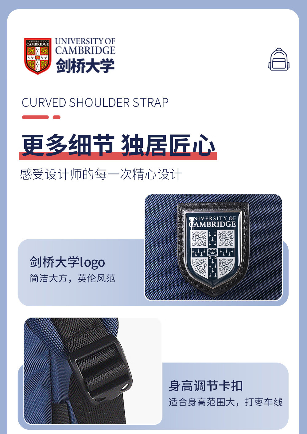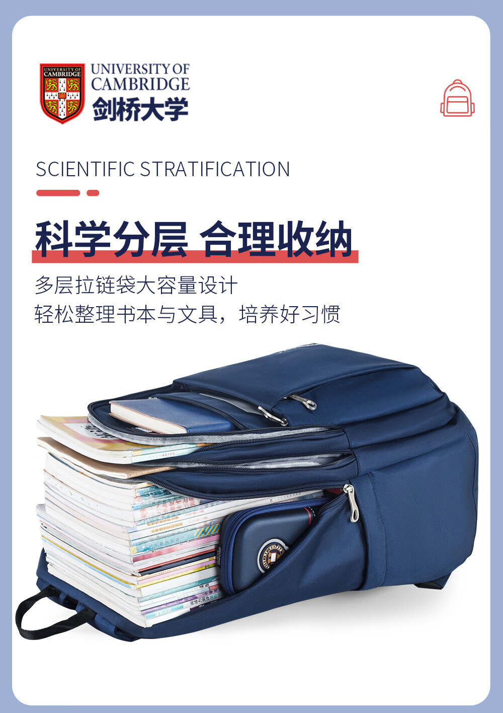 UNIVERSITY OF CAMBRIDGE剑桥大学初中生书包中学生男孩女高中生超大容量旅行双肩背包减负 CA563深蓝 推荐初高中-大学
