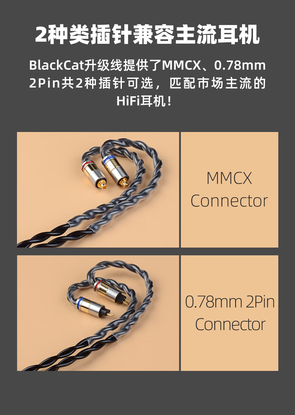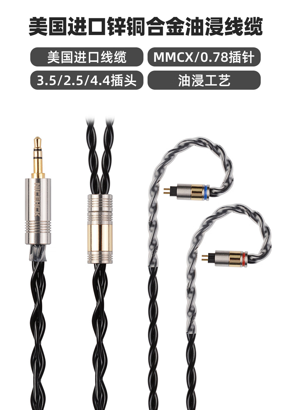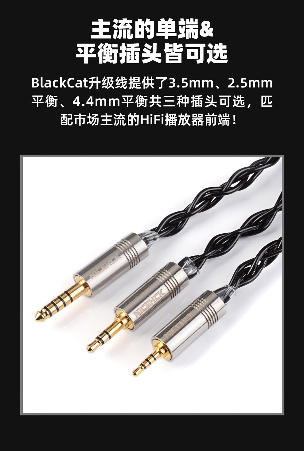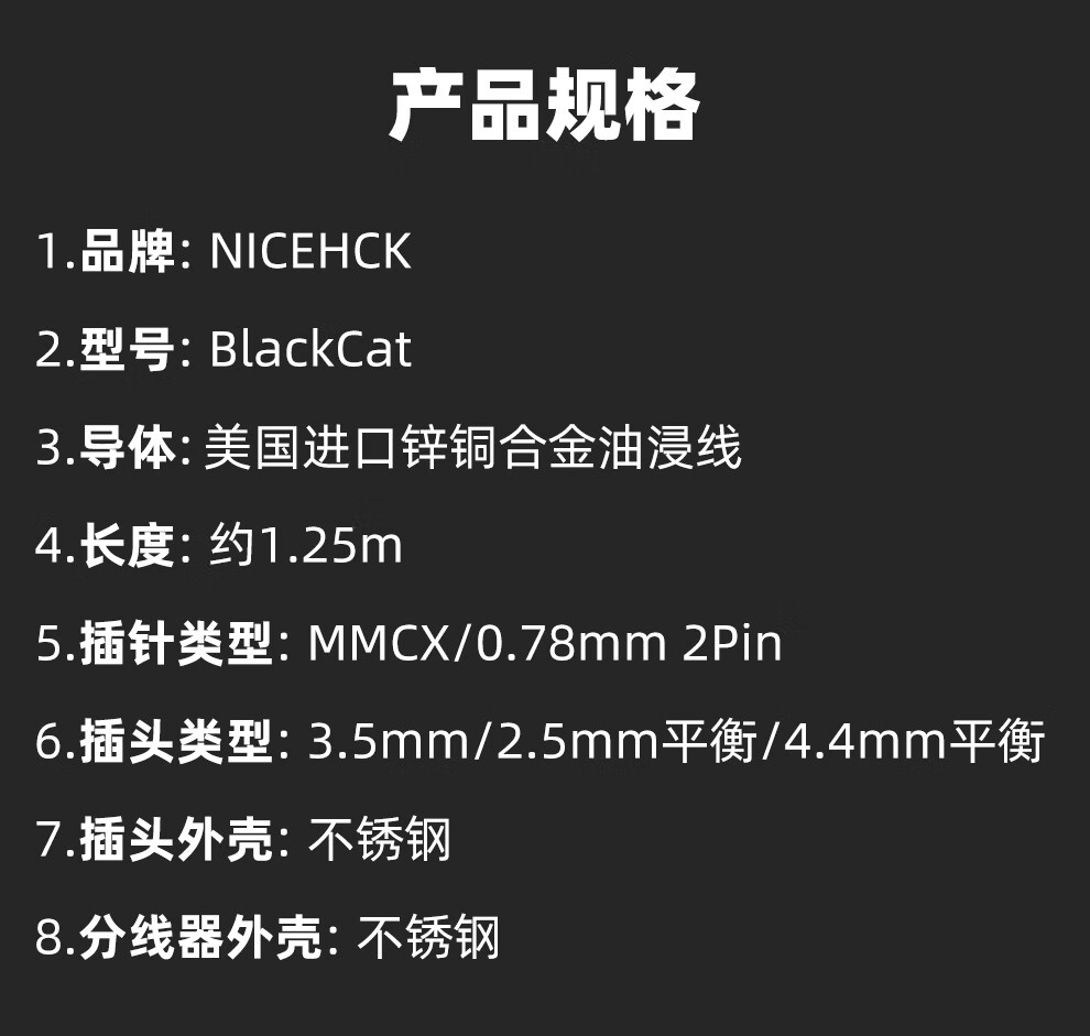 NICEHCK 黑猫BlackCat进口4股锌铜合金线油浸线HiFi原道耳机平衡单端N5005升级线 3.5mm+0.78 2pin