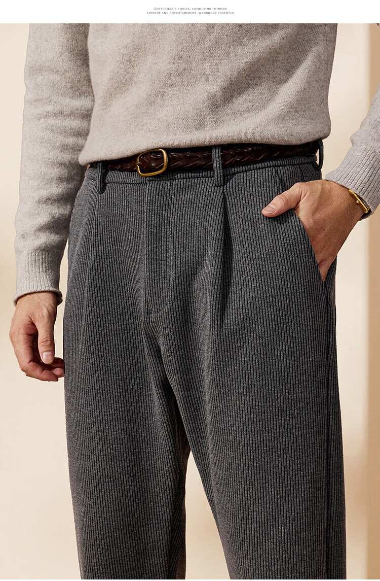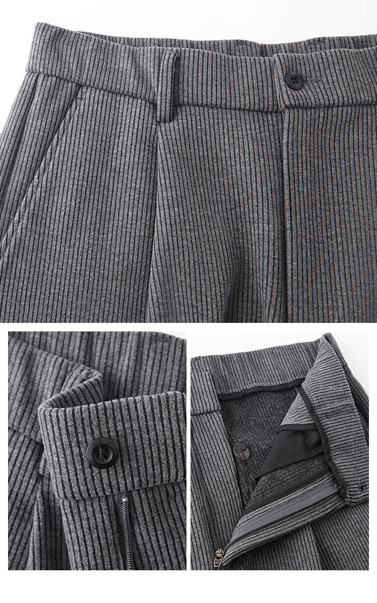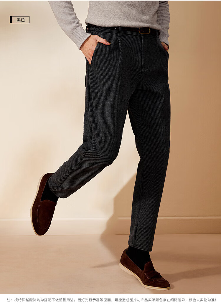 杉杉(FIRS)【灯芯绒】秋季男式休闲裤时尚百搭条纹长裤垂顺易打理西裤男 黑色 30 170/76A(30)