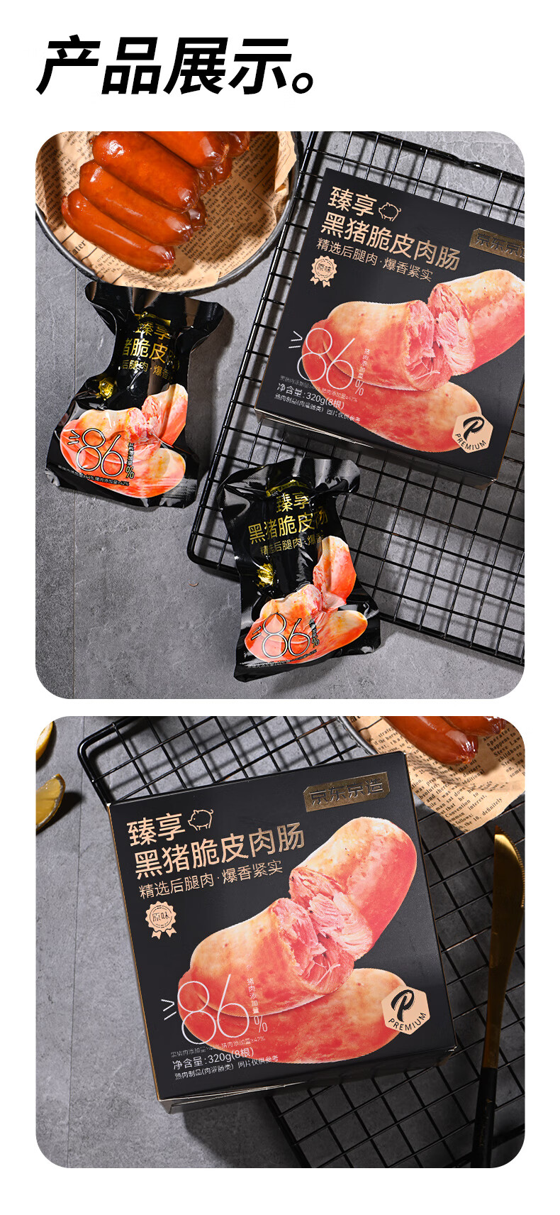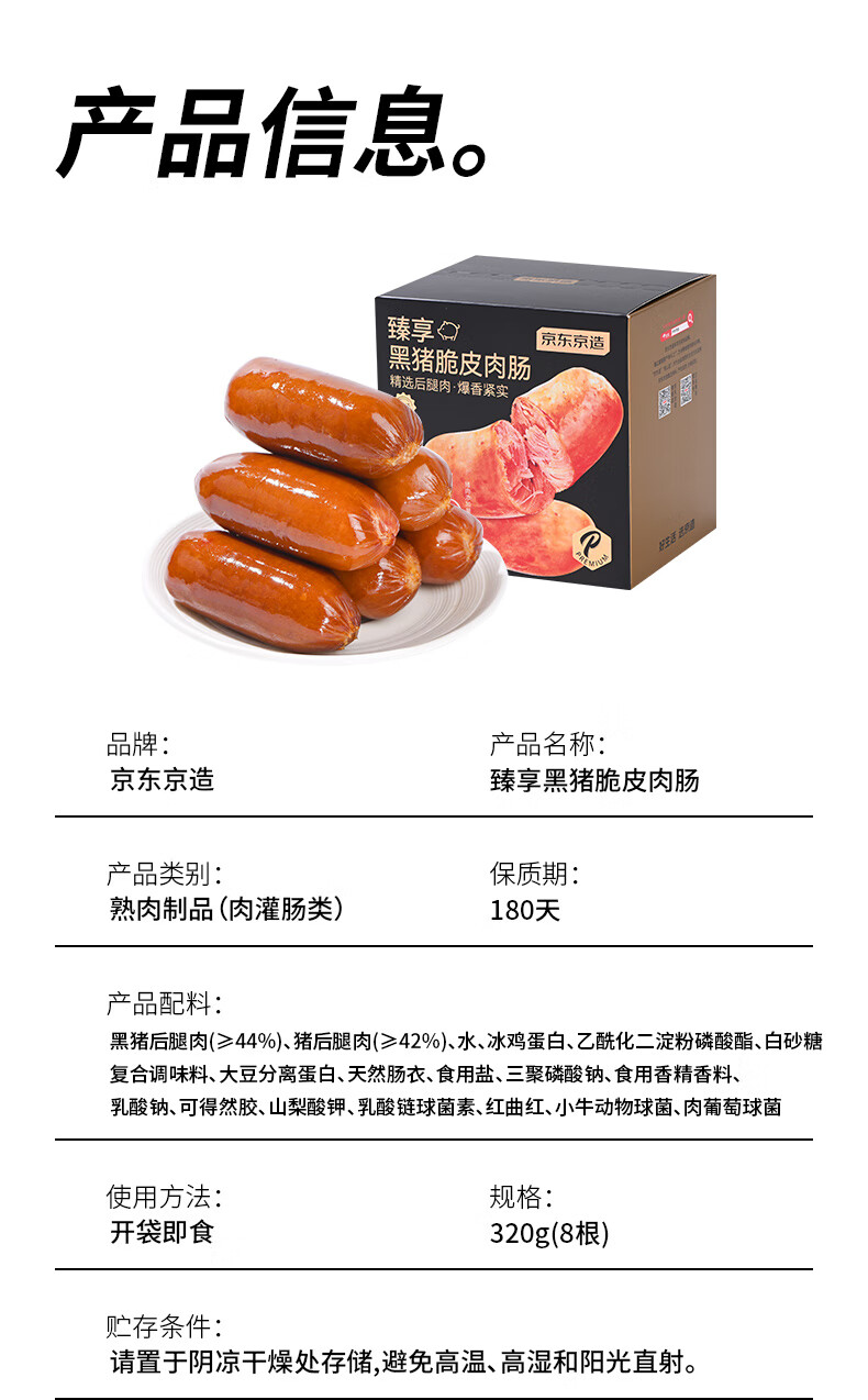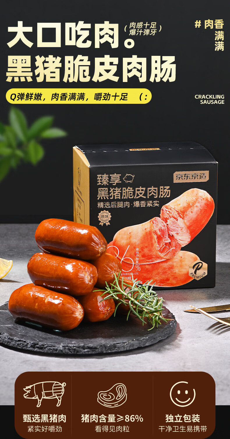 京东京造黑猪肉肠320g【8小包】早餐 儿童零食即食烤肠香肠火腿肠