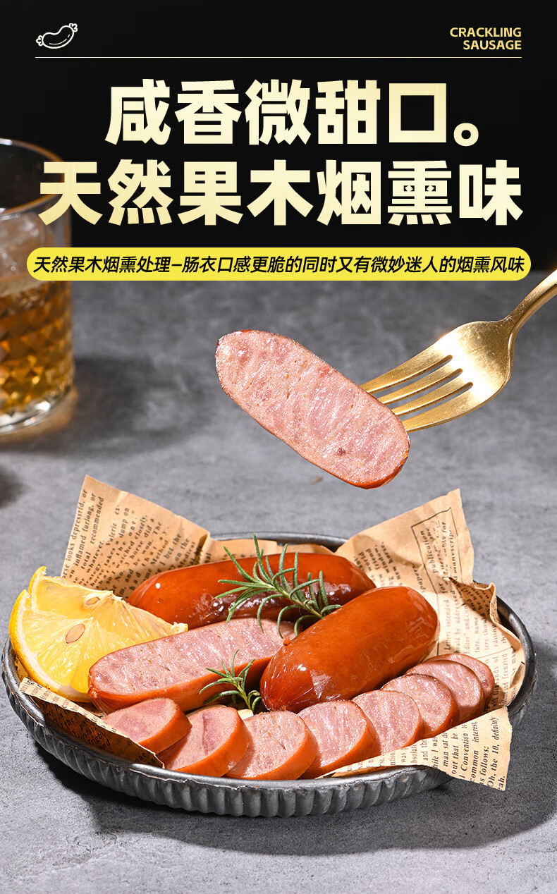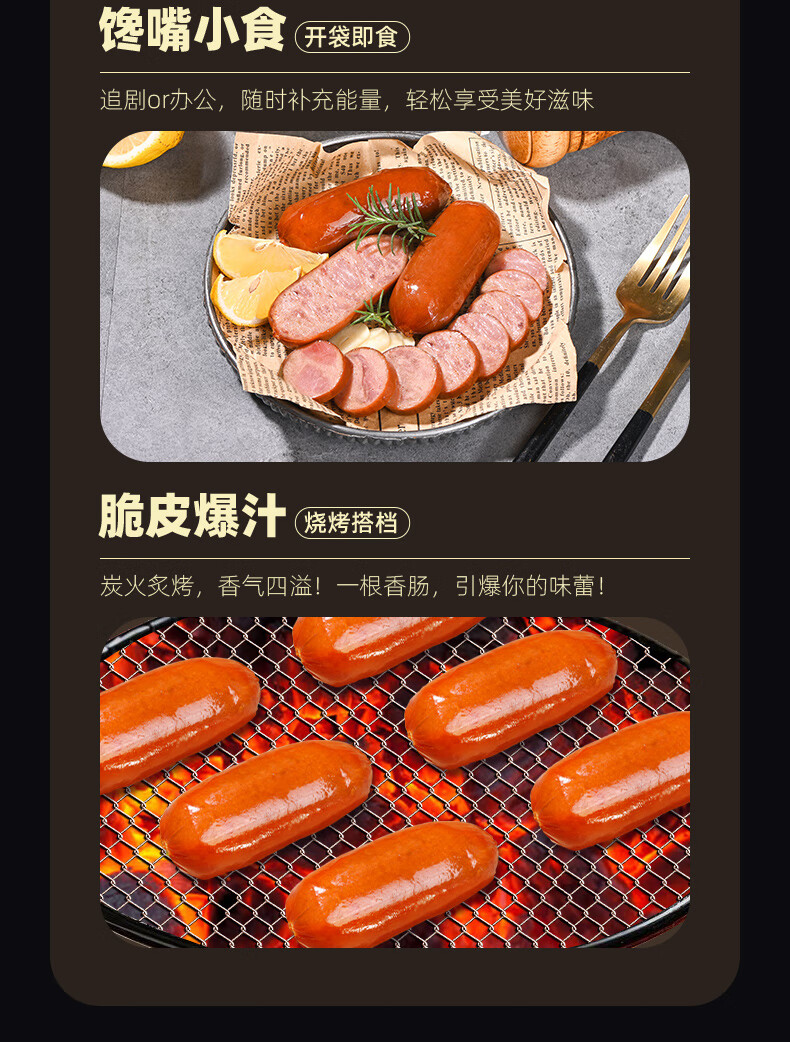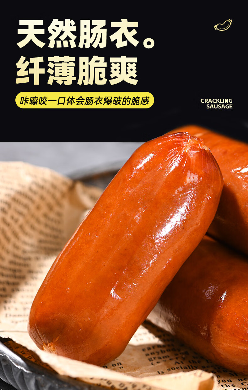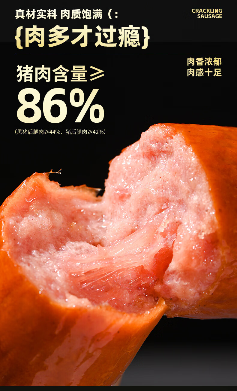 京东京造黑猪肉肠320g【8小包】早餐 儿童零食即食烤肠香肠火腿肠