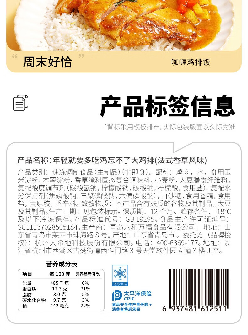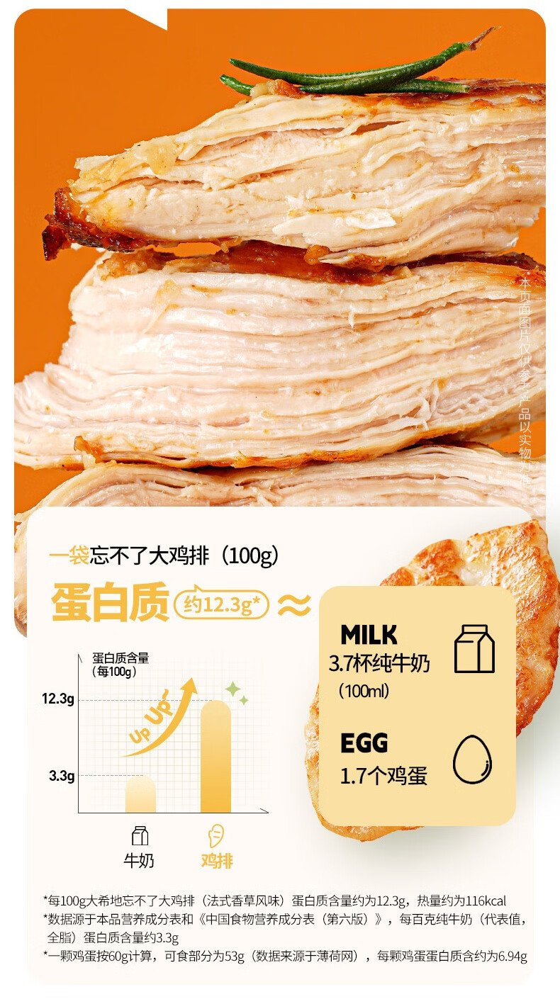 大希地香草大鸡排低脂鸡胸肉鸡扒半成品健身轻食餐100g*5片烧烤早餐