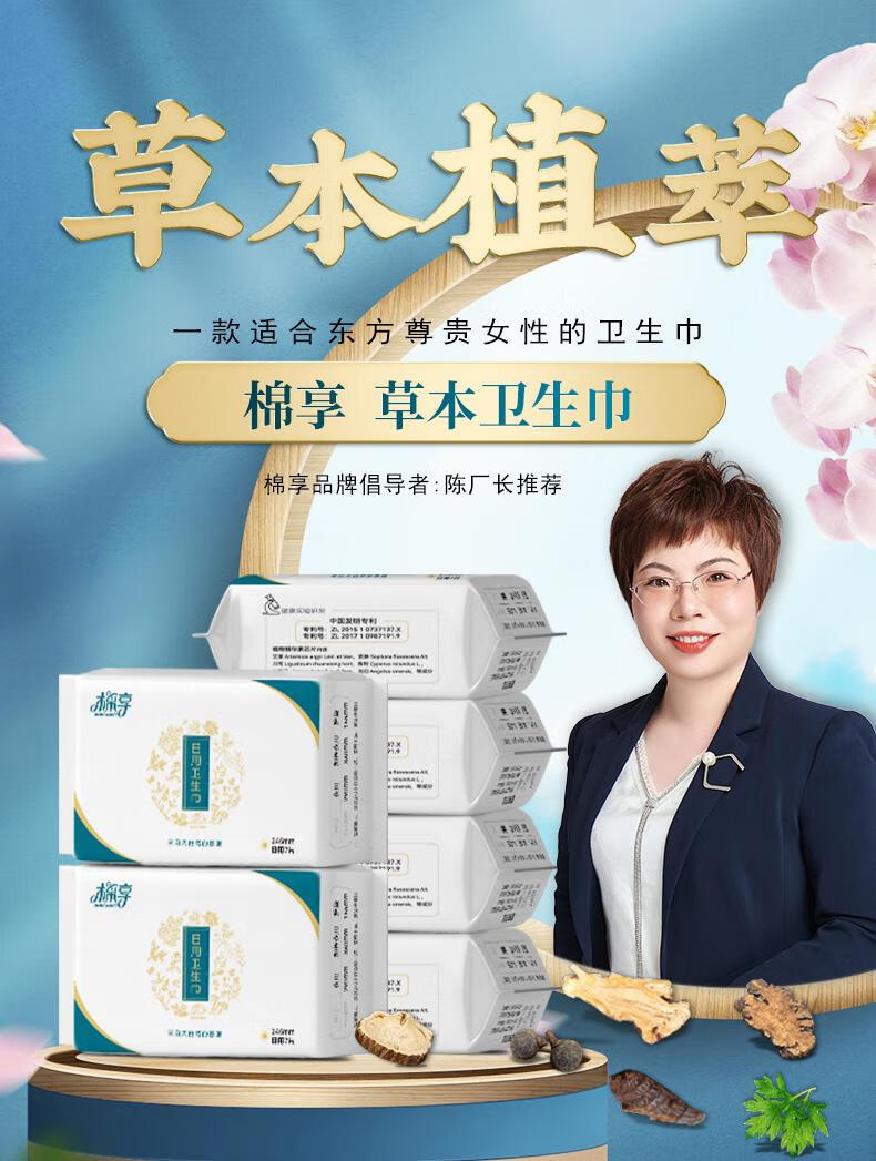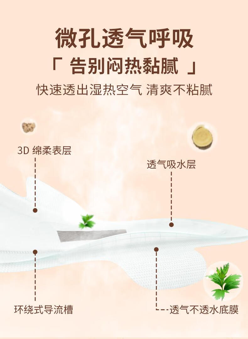 棉享草本艾草卫生巾夜用姨妈巾医护级认证日夜组合超薄透气一整箱批发 艾草护理日用7包+夜用3包 64片