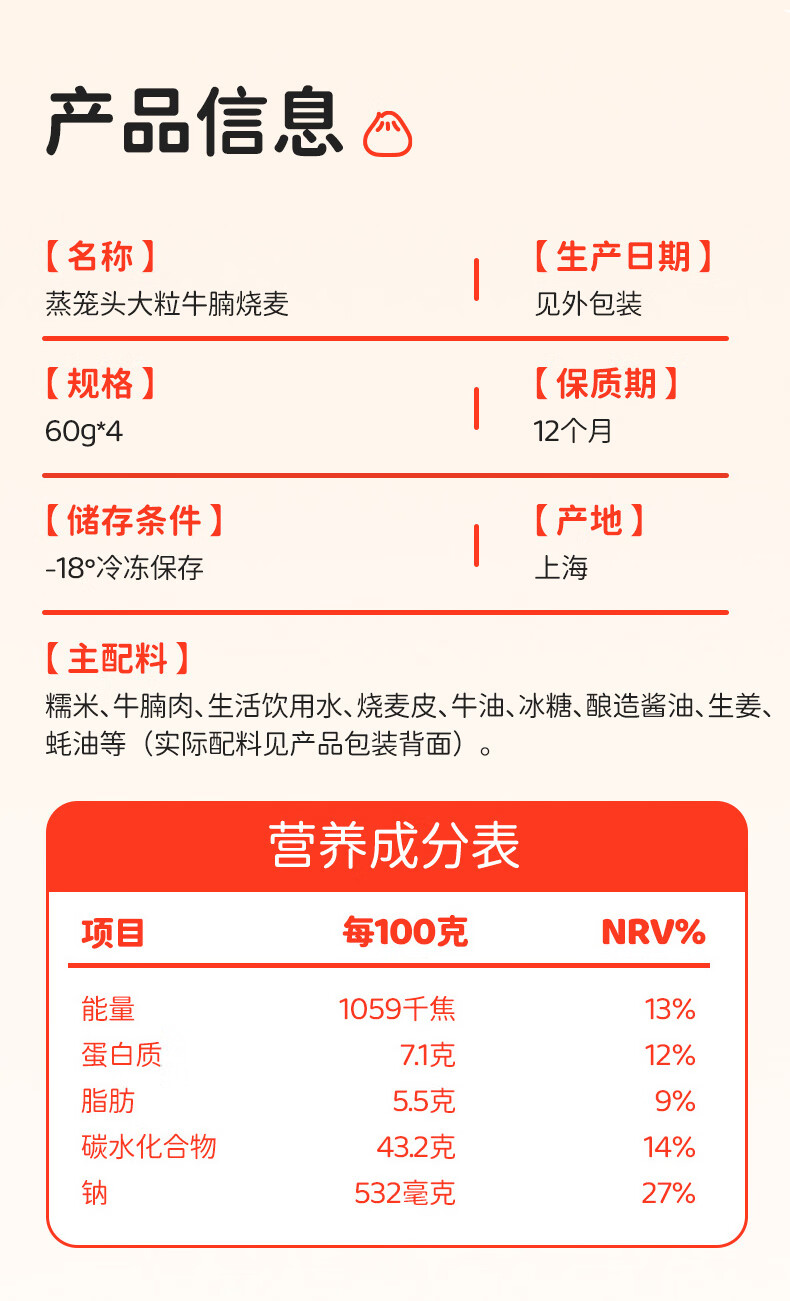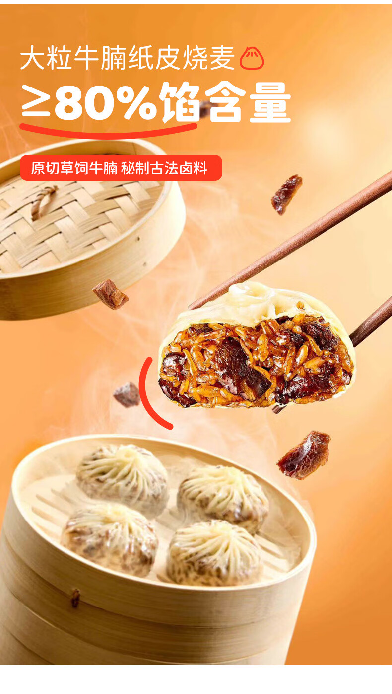 蒸笼头【大粒牛腩纸皮烧麦】早餐半成品速冻手工速食薄皮糯米烧麦 大粒牛腩纸皮烧麦240g*3袋