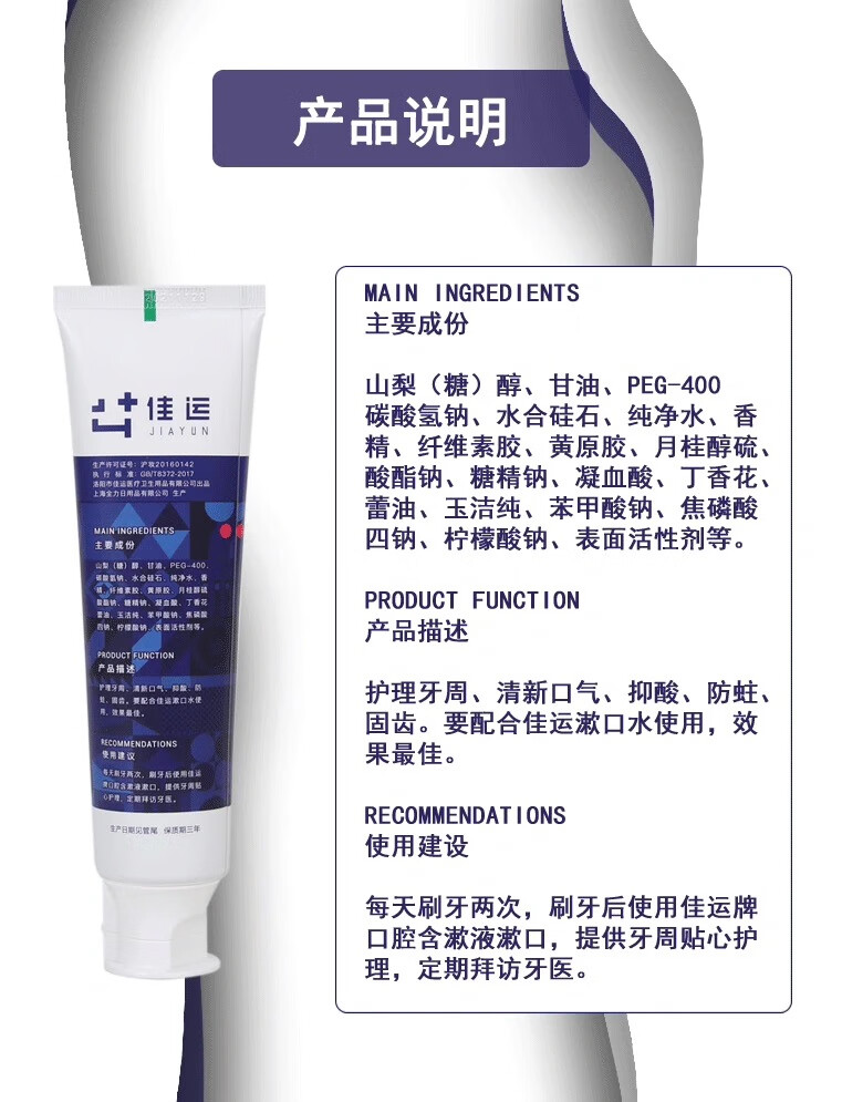 佳运牙周护理牙膏牙齿矫正期间口腔护理去异味牙龈护理正畸可用 120g装2盒(送牙刷2支)