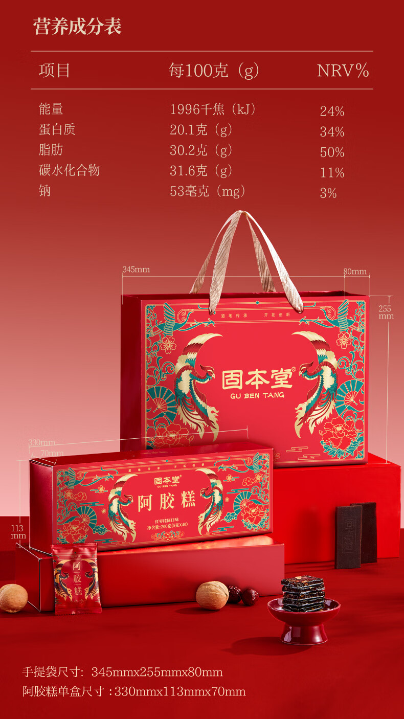 固本堂阿胶糕礼盒400g补气血女性滋补营养品送老婆女友女神节礼物送妈妈