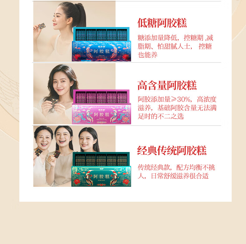东阿阿胶官方店【倪妮推荐】桃花姬阿胶糕 早餐营养品 女神节礼物礼盒 75g*4盒 礼盒装|直播间更优惠