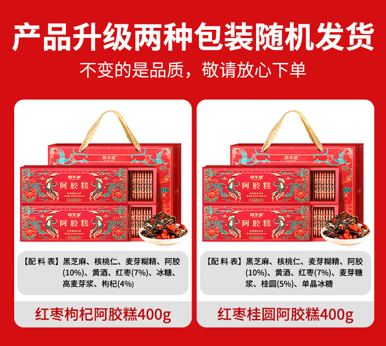同仁堂阿胶阿胶糕礼盒补品气血女送长辈高端妇女节礼物改良胶元糕500g*2