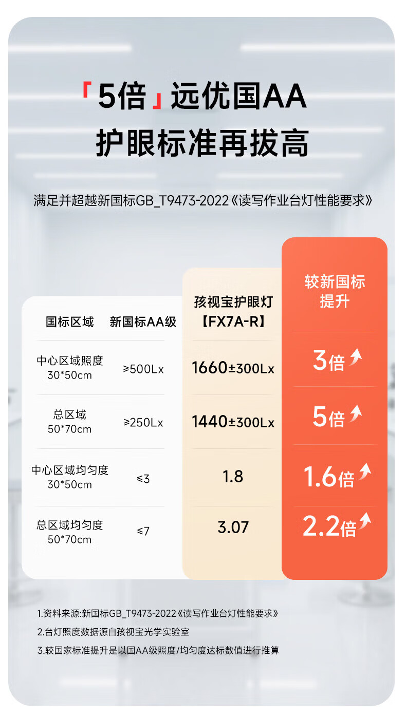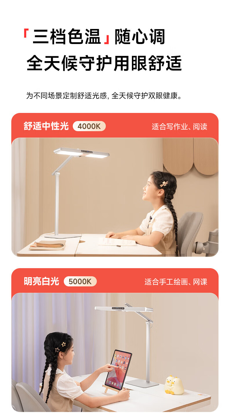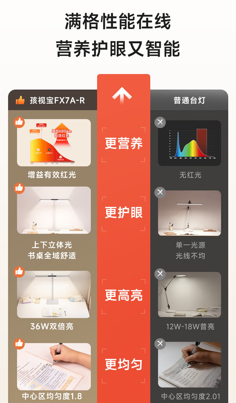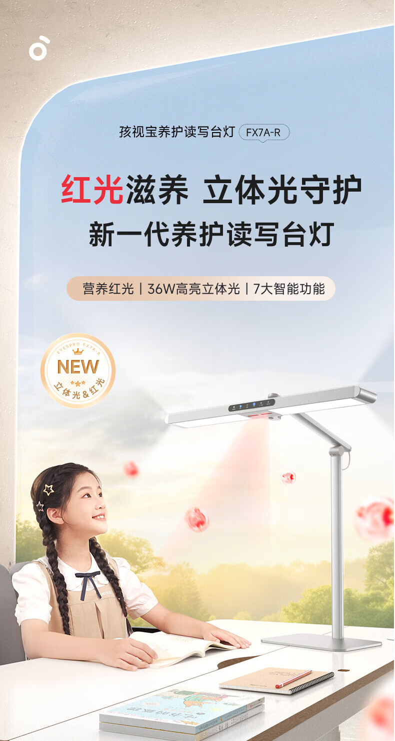 孩视宝国AA儿童护眼灯学生学习防蓝光防近视全光谱学习桌专用桌面大路灯 【近视防控认证】FX3-R 18W红光增益