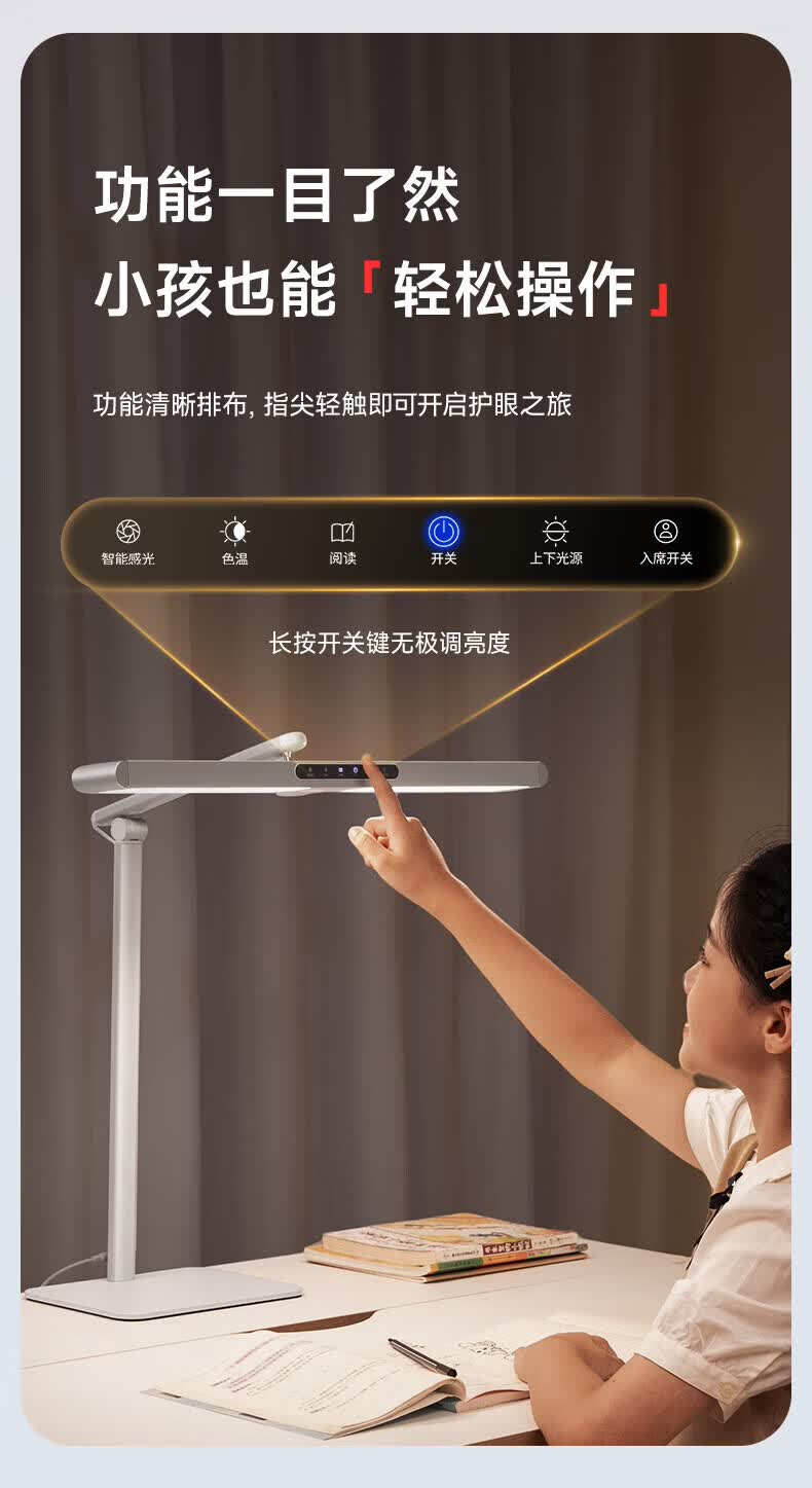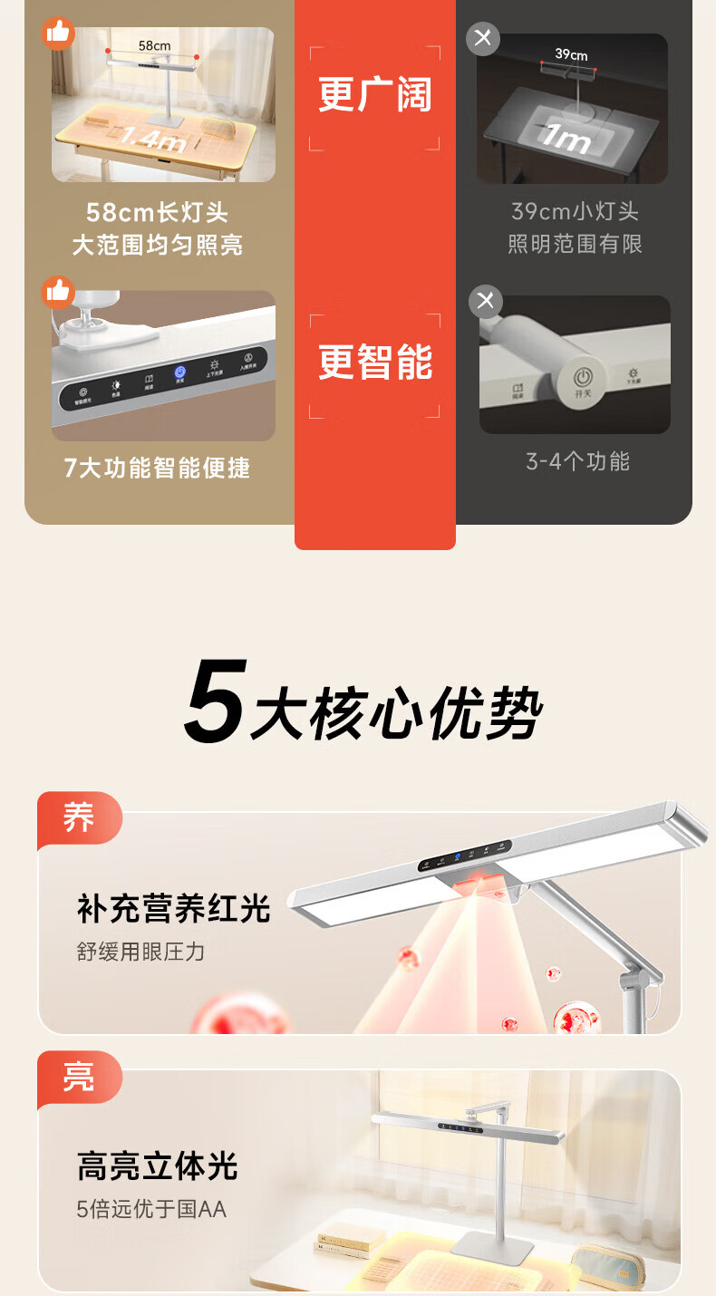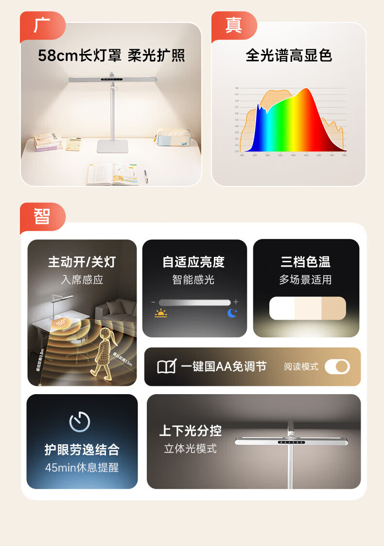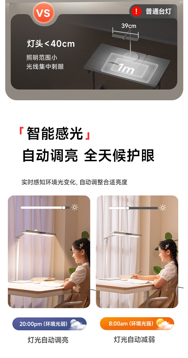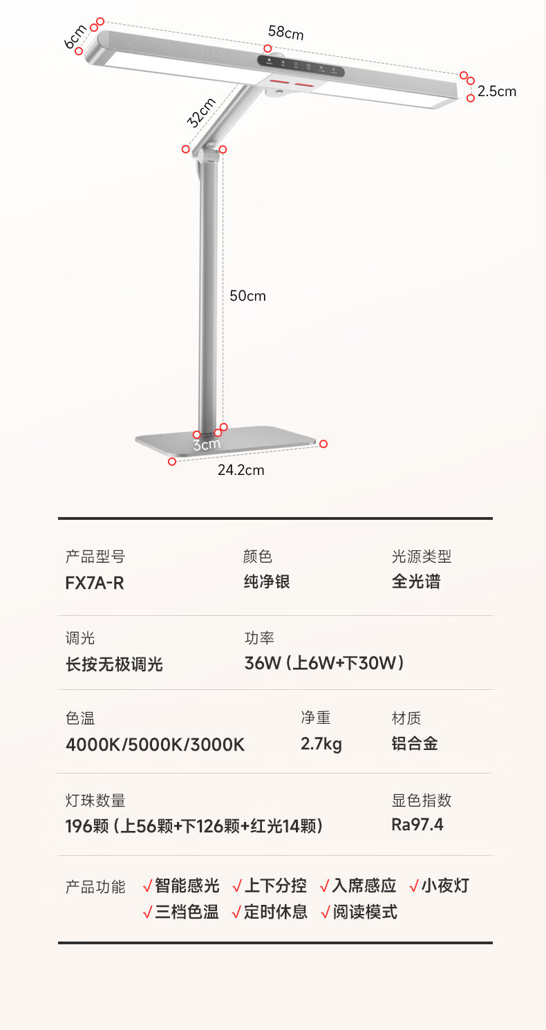 孩视宝国AA儿童护眼灯学生学习防蓝光防近视全光谱学习桌专用桌面大路灯 【近视防控认证】FX3-R 18W红光增益