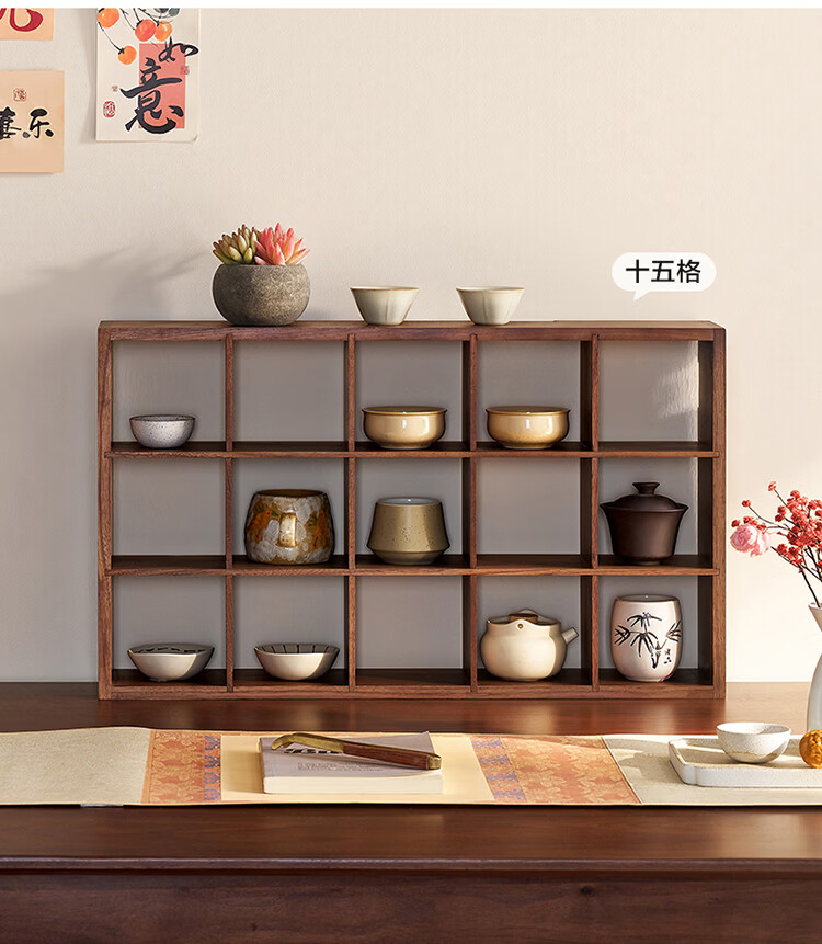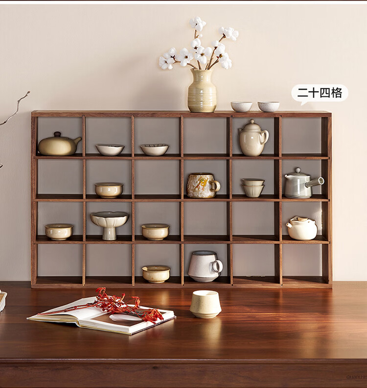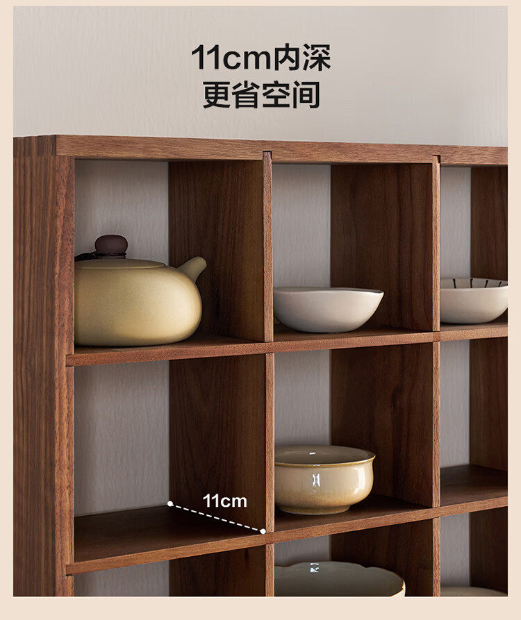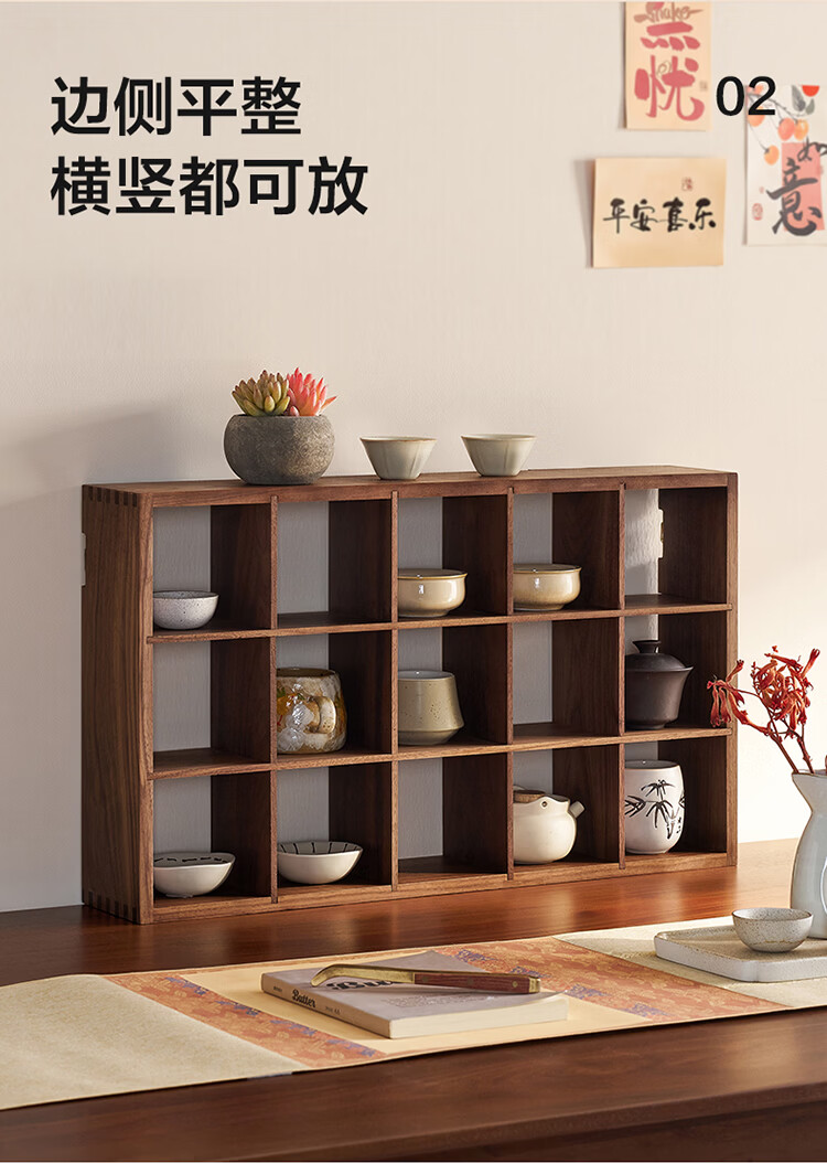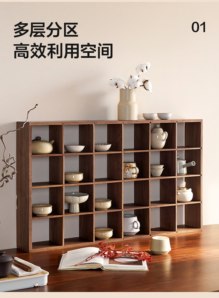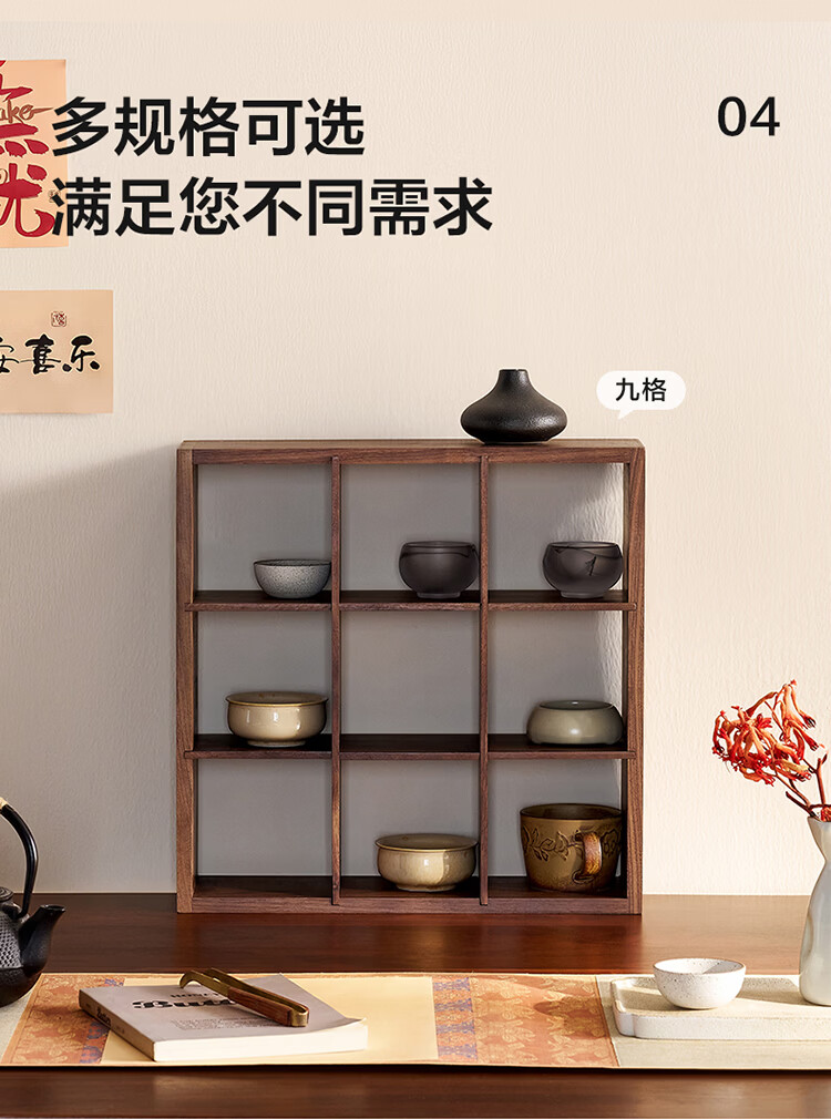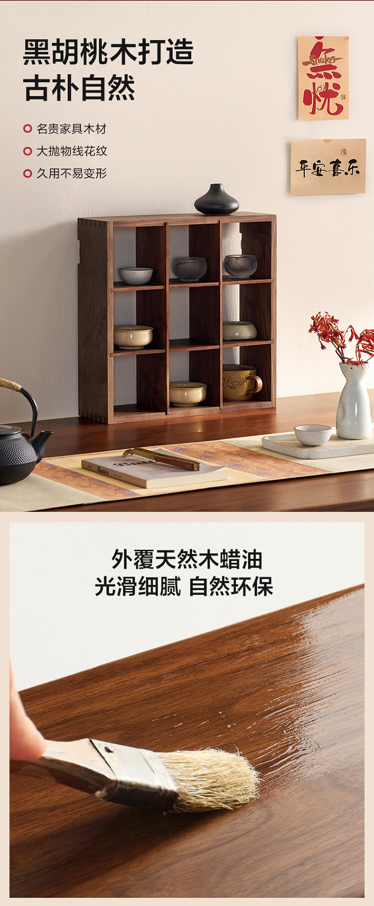 全友家居实木博古架小型茶具收纳柜桌面置物架茶杯拜访茶柜九宫格KD 【黑胡桃木】九格置物架