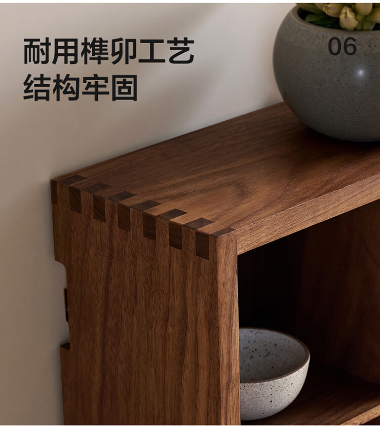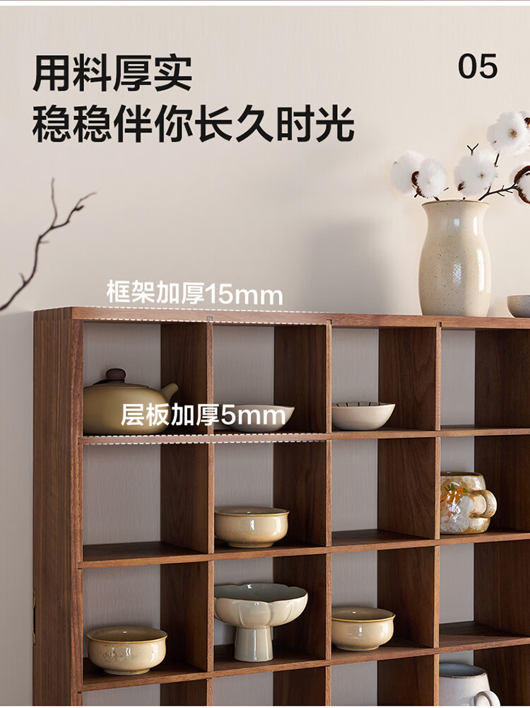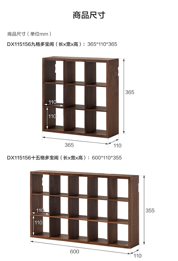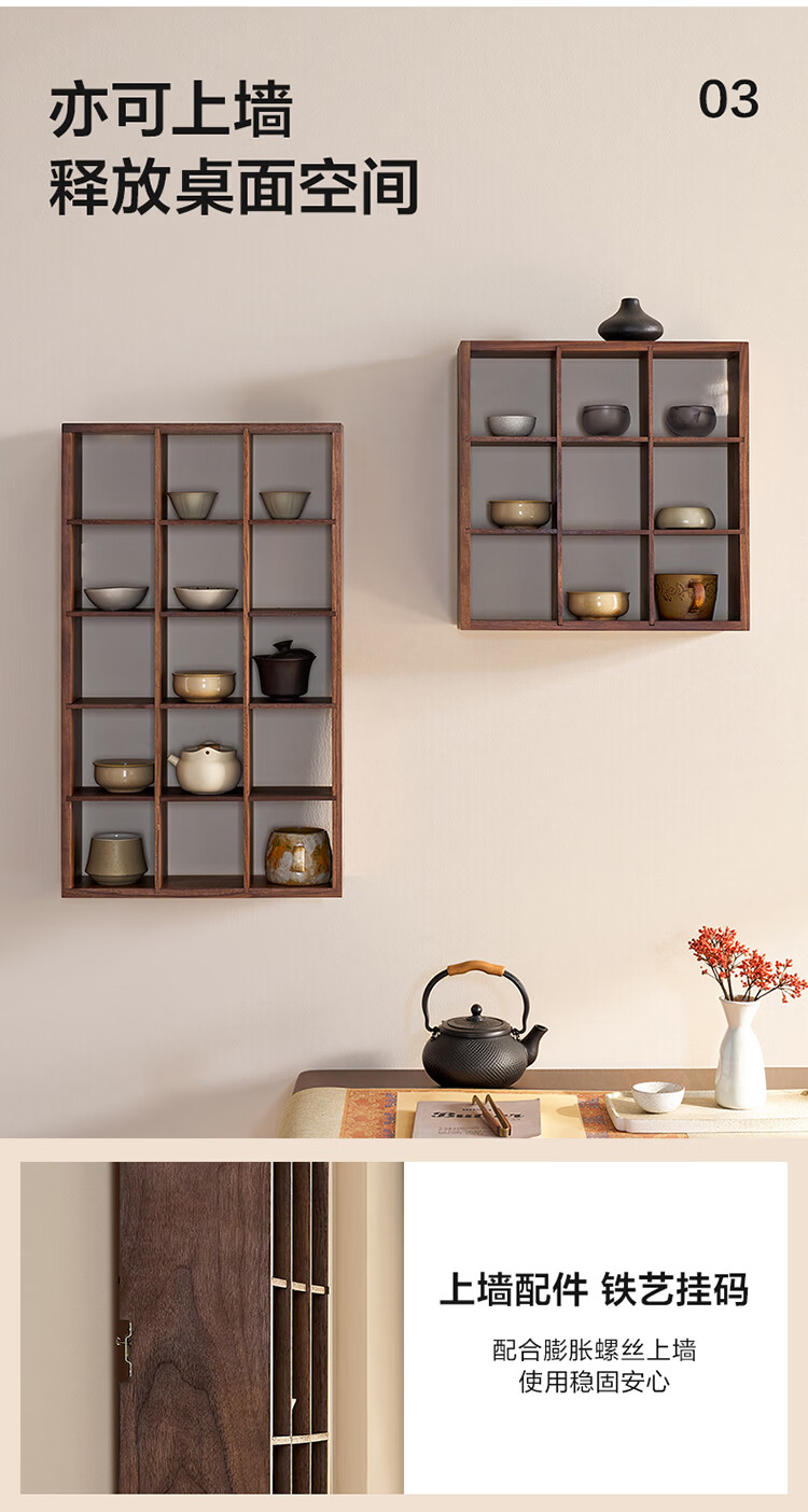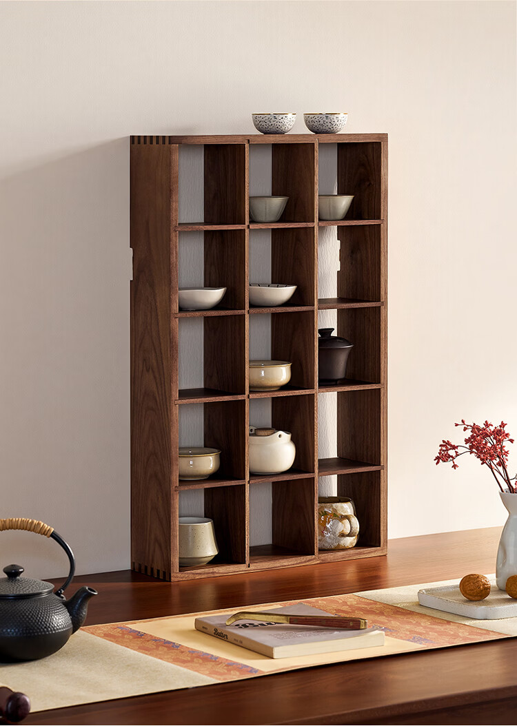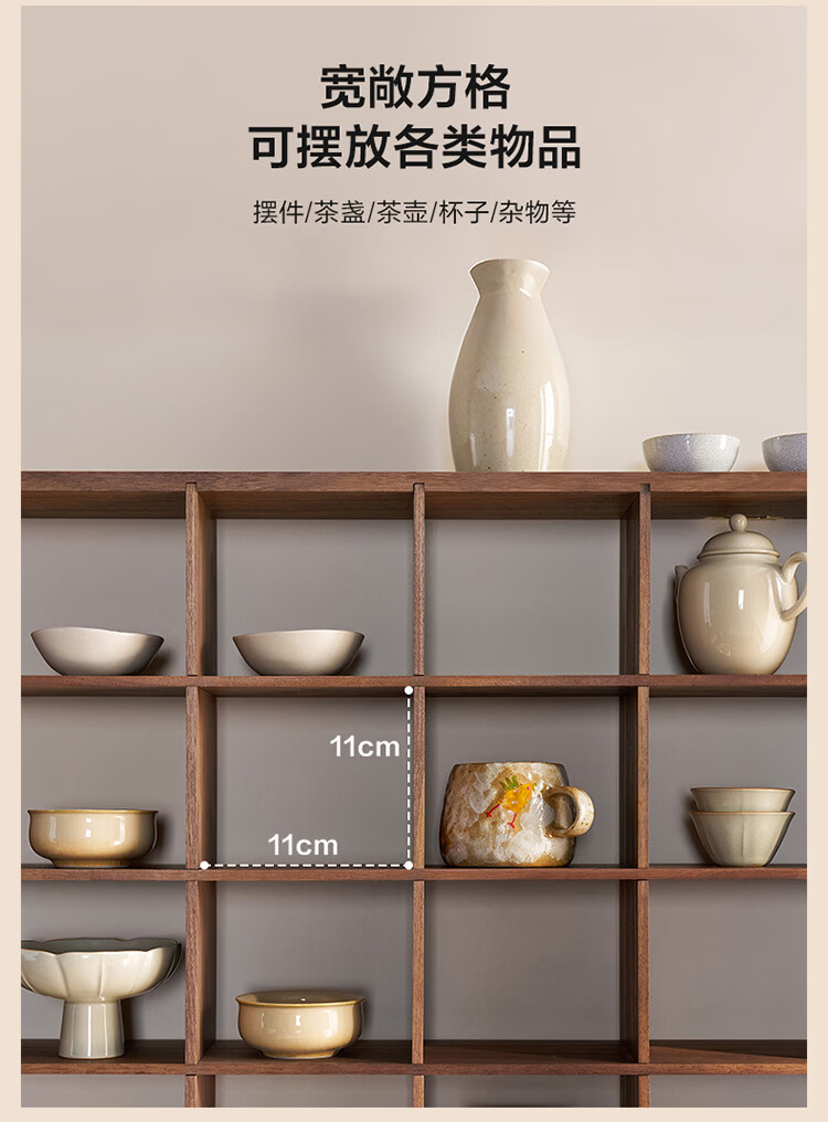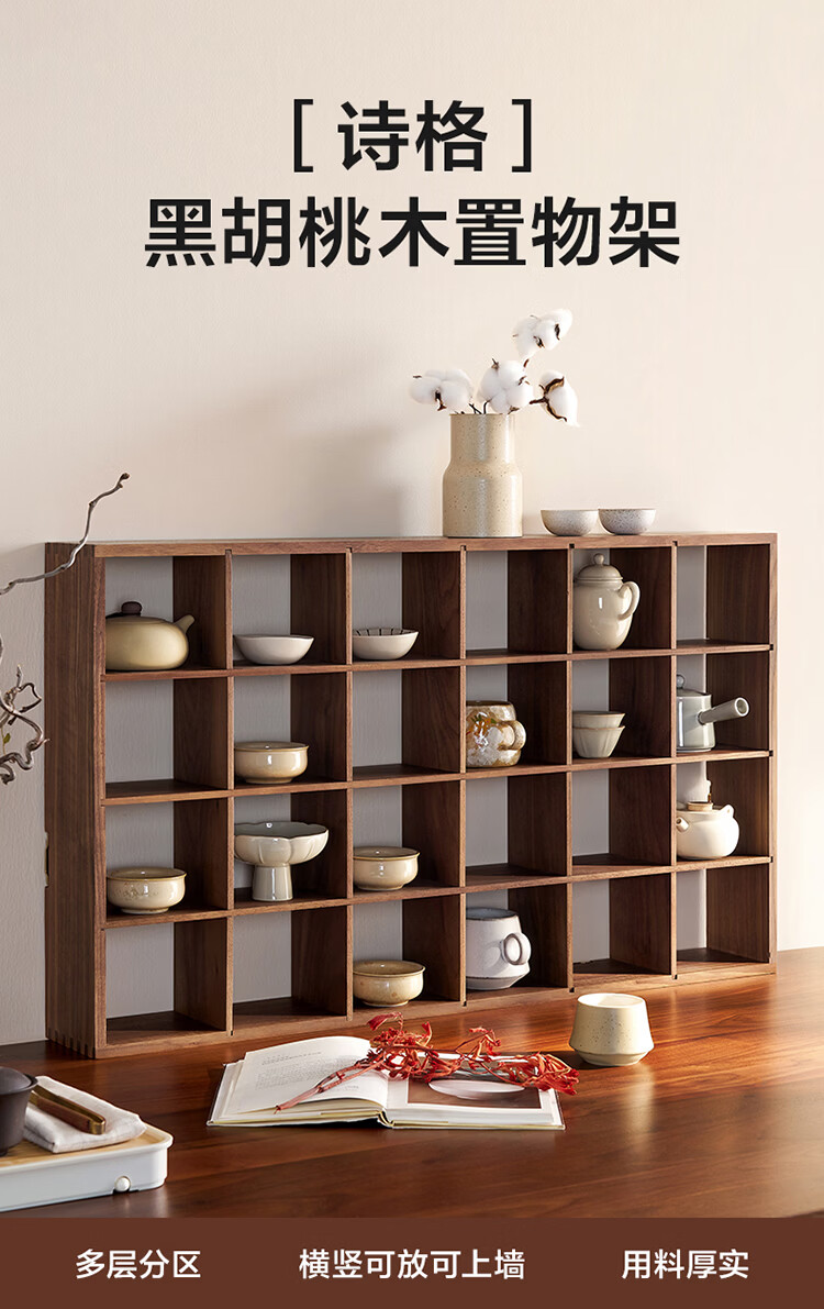 全友家居实木博古架小型茶具收纳柜桌面置物架茶杯拜访茶柜九宫格KD 【黑胡桃木】九格置物架
