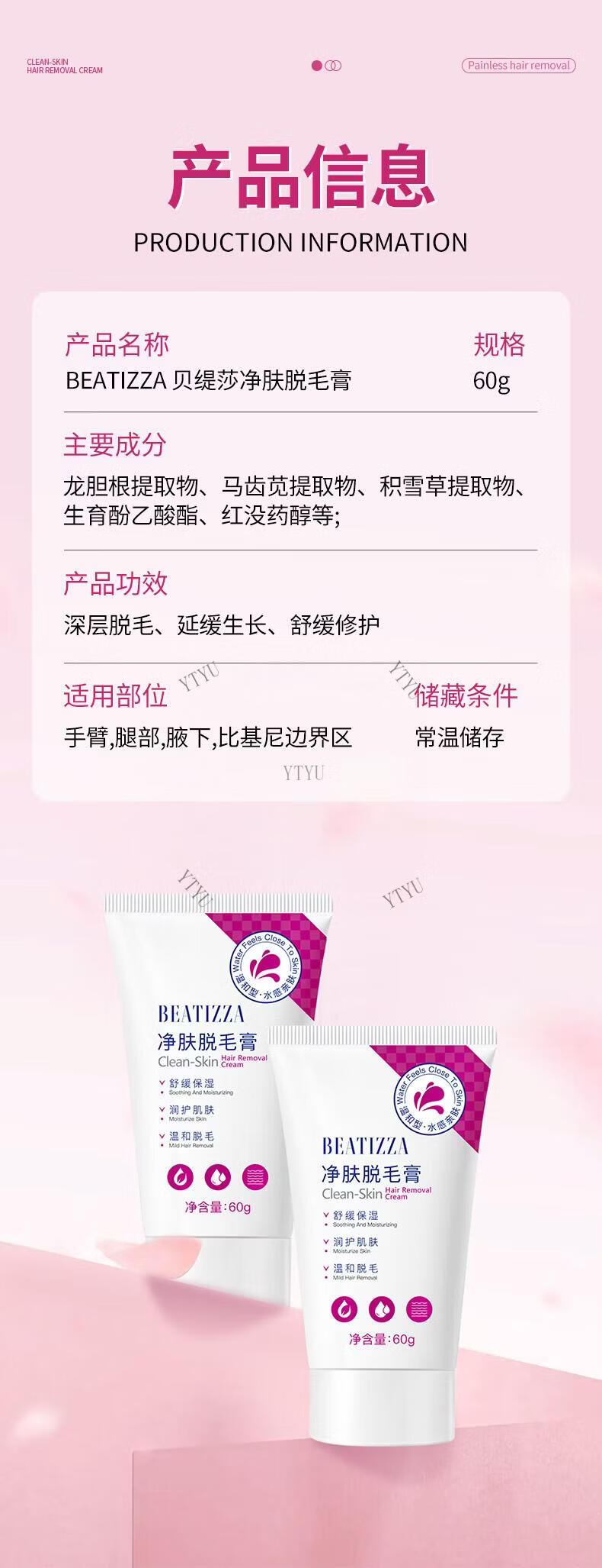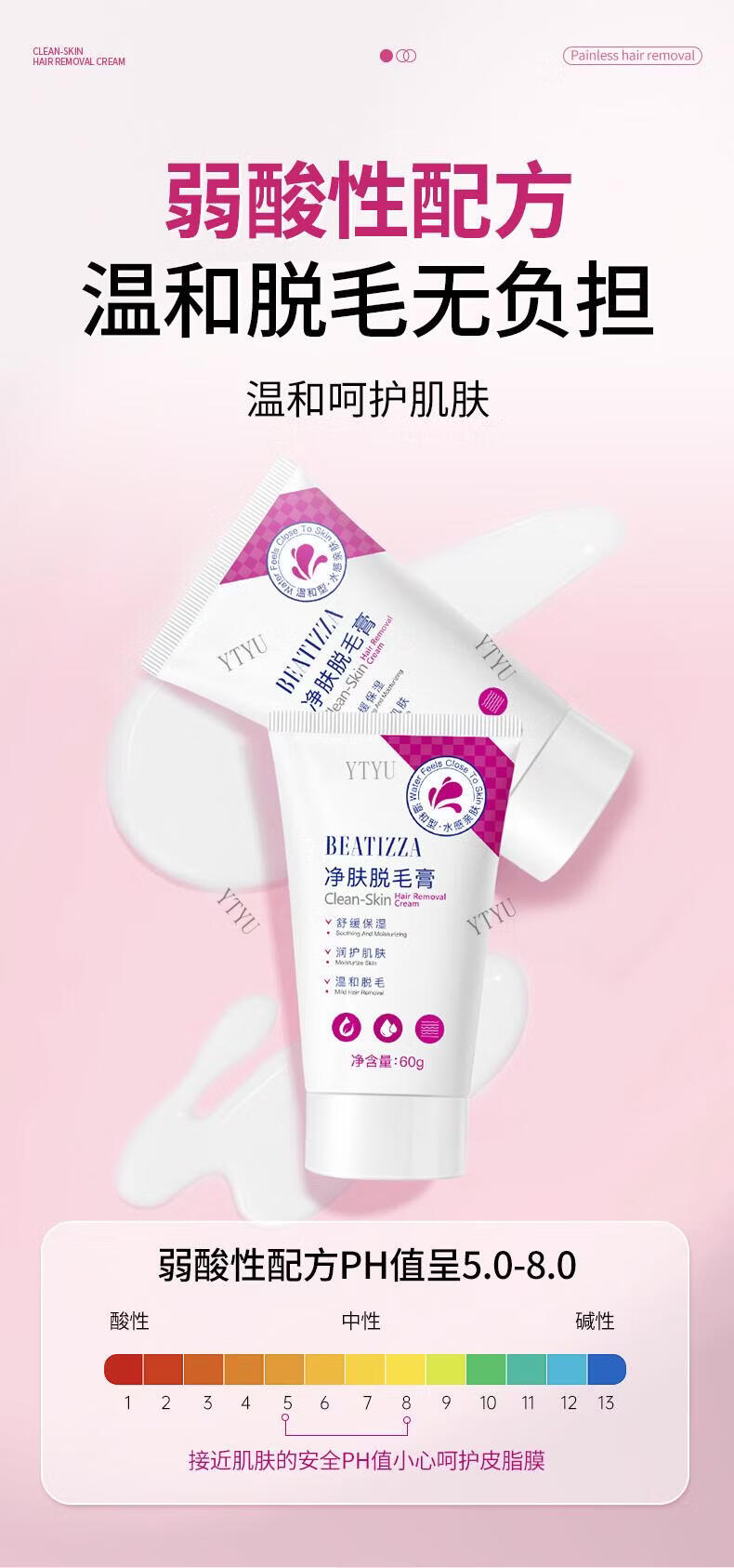 YTYU私密处脱毛膏男女脱毛神器净肤脱温和不刺激去腿毛腋毛无黑点无痛 净肤脱毛膏60g 三支装