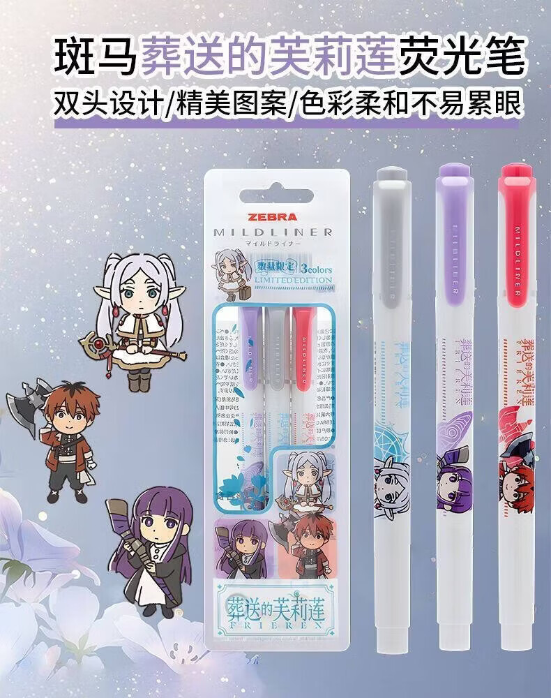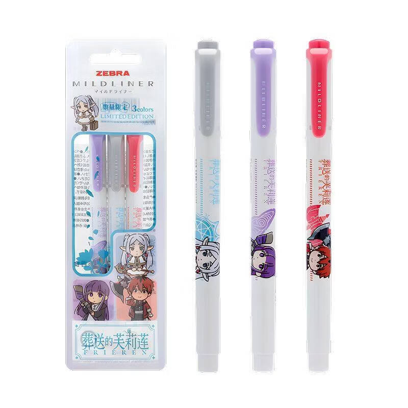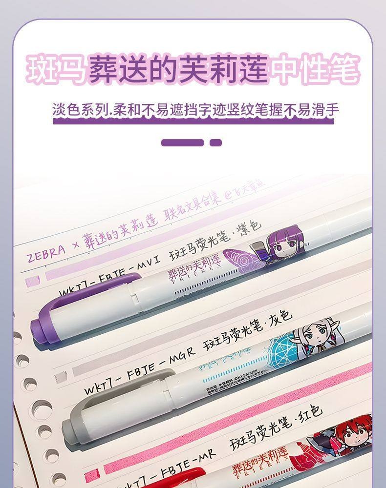 斑马牌(ZEBRA)日本葬送的芙莉莲限定WKT7柔和荧光笔考试复习划重点彩色醒目标记笔文具手账软头荧光笔 小队套装【3支装】