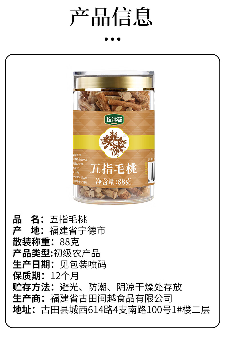 珍锦荟五指毛桃88g 新干货广东煲汤五爪龙根搭汤料包莫 氏鸡煲配料