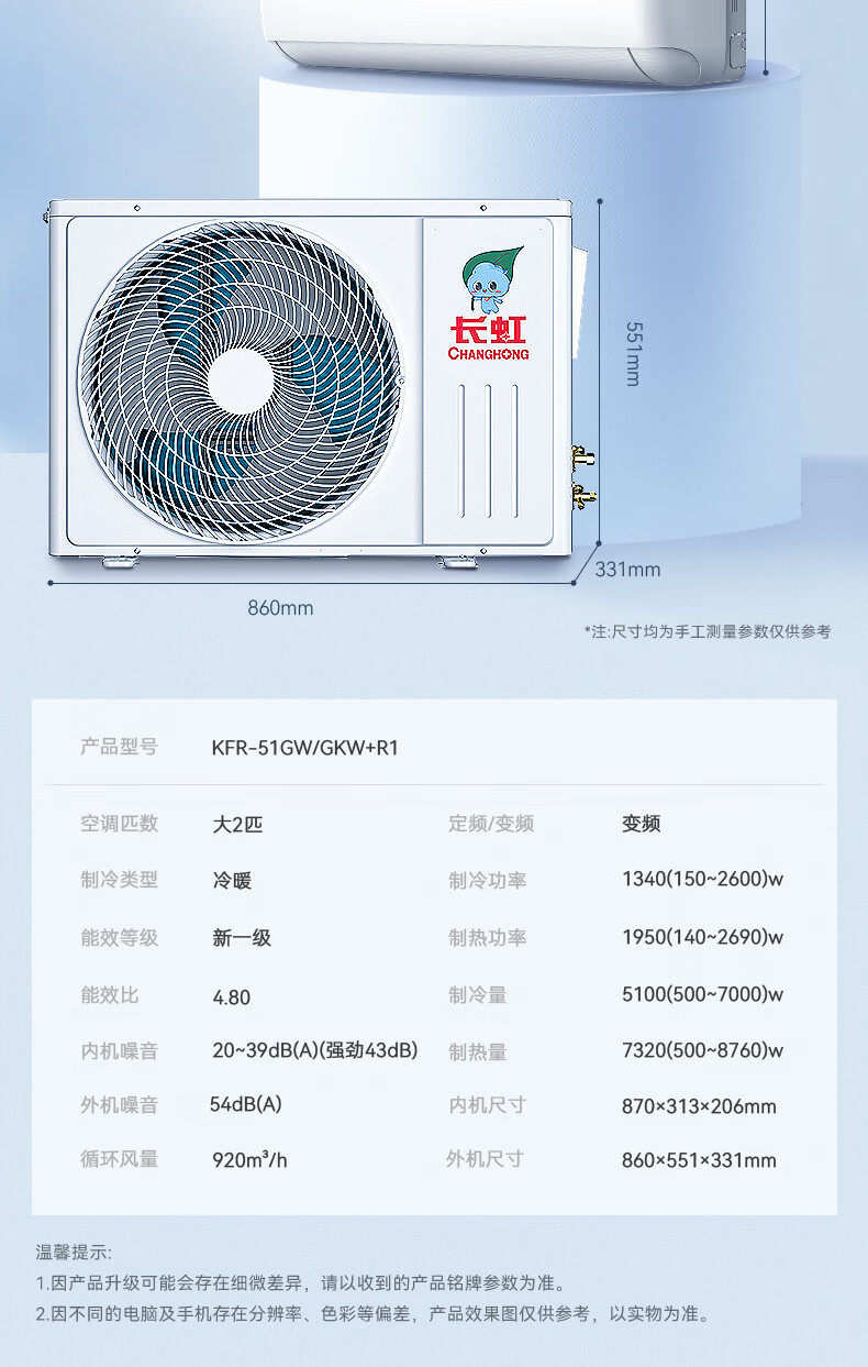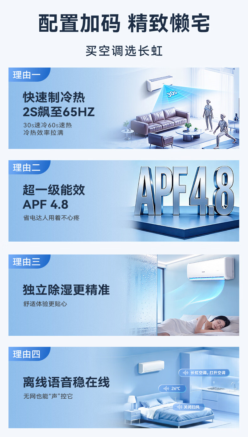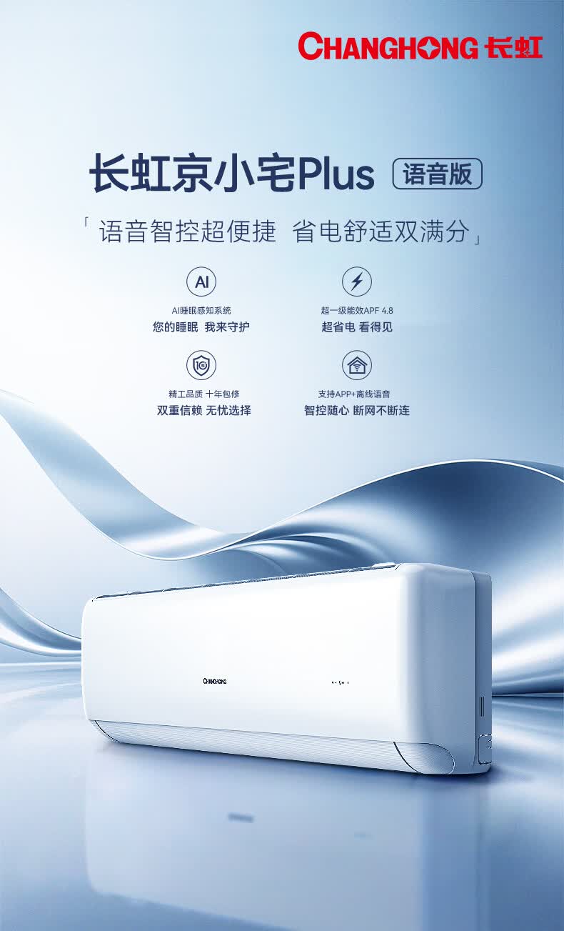 长虹空调大2匹京小宅Plus智慧语音新一级能效双排铜管变频冷暖家用挂机KFR-51GW/GKW+R1十年包修