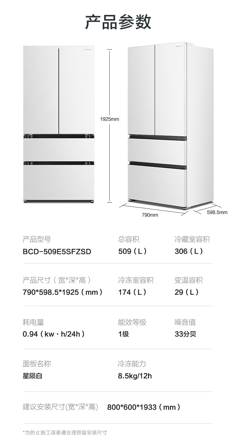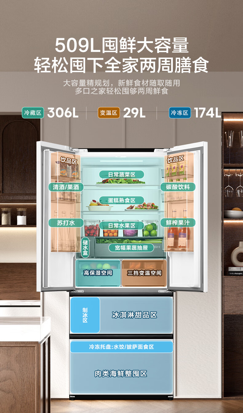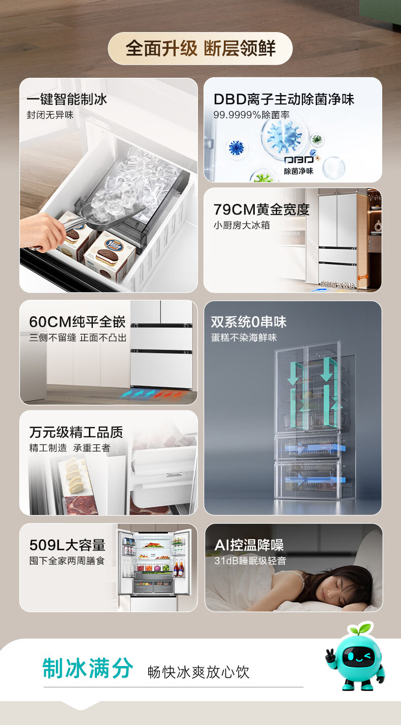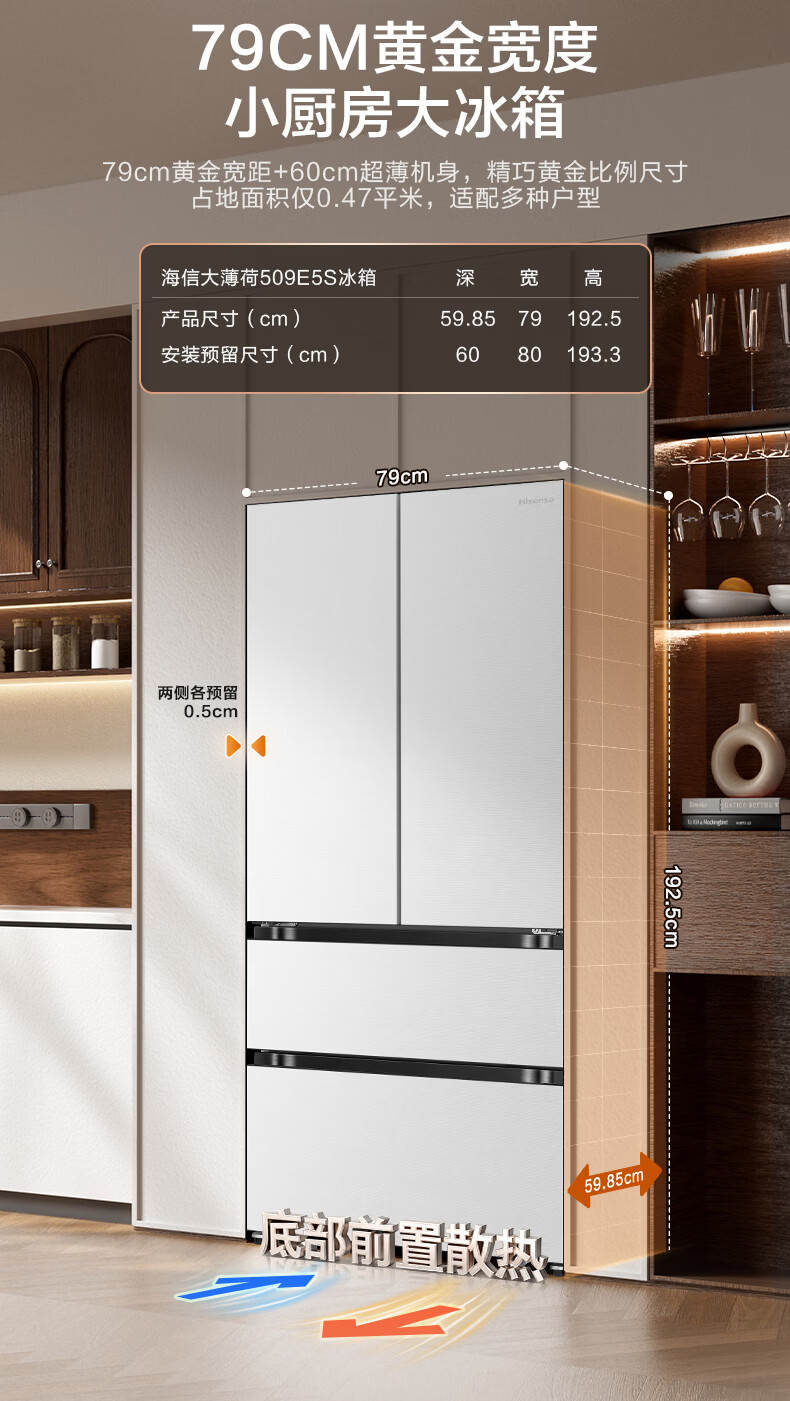 海信大薄荷2.0 509L法式多门冰箱双系统自动制冰超薄超窄零嵌入大容量净味BCD-509E5SFZSD白国家补贴
