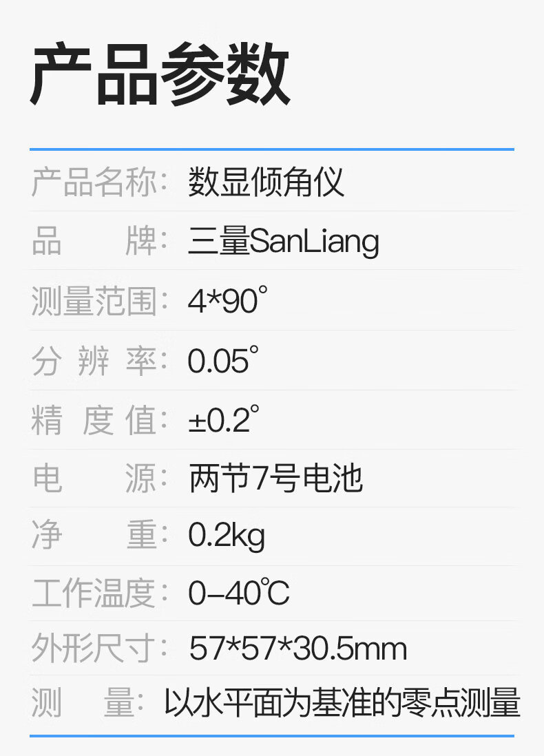 三量(sanliang)正品三量高精度数显倾角仪盒带磁角度仪水平仪电子角度尺角度规 181-107 经济型双激光(可充电) 无规格
