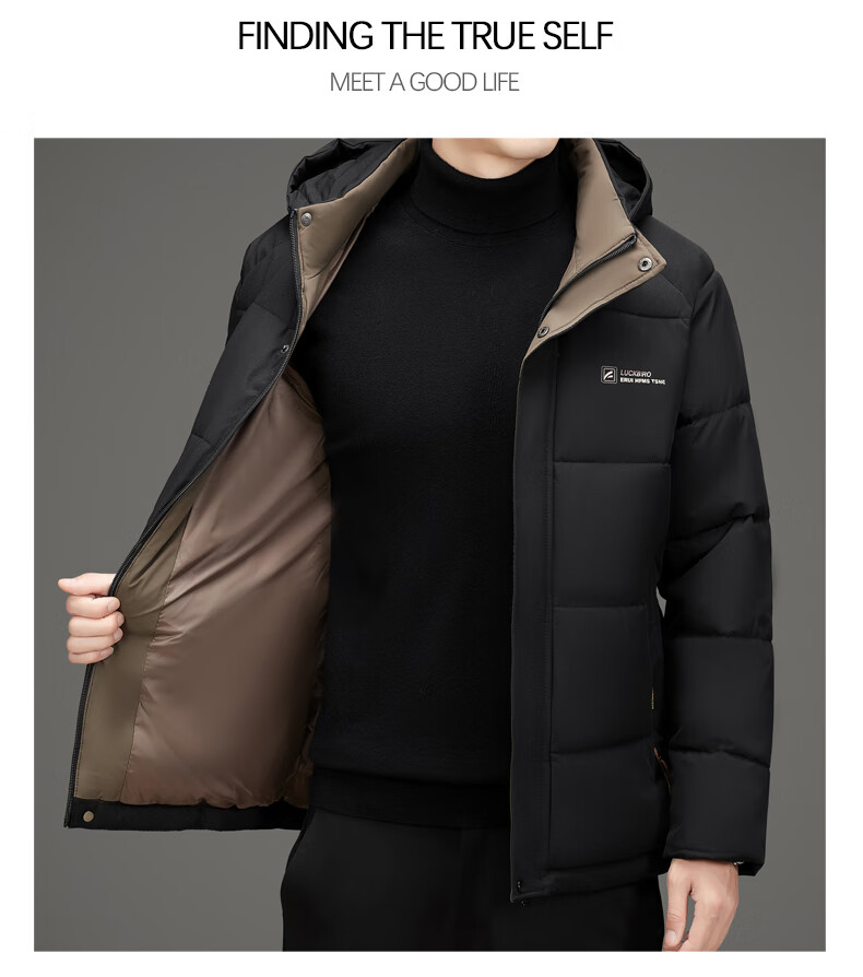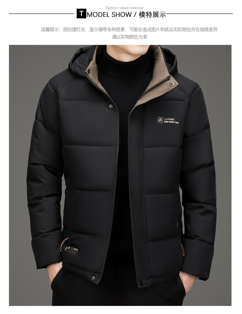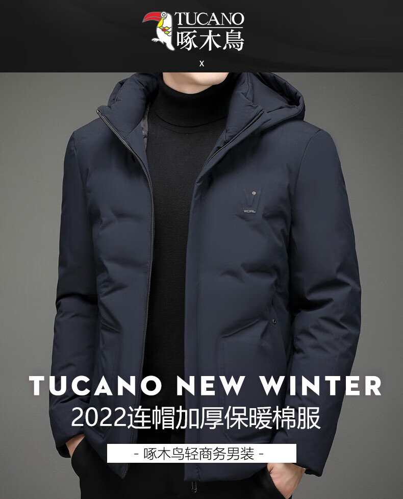 啄木鸟(TUCANO)棉服男短款连帽纯色加厚棉袄冬季款中青年宽松保暖可拆卸帽子棉衣 88285黑色 5XL 【建议170-195斤】