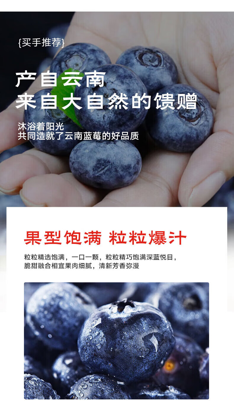 静羽云南花香露天蓝莓【多地次日达】高山孕妇甜水果当季新鲜送礼物盒 【80%选择】爆卖果王|约18mm+ 125g*6盒【超值-品质升级】净600g