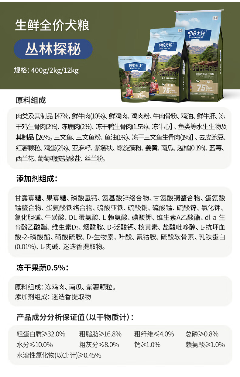 伯纳天纯生·鲜系列Ultra全价犬粮丛林探秘400g/包