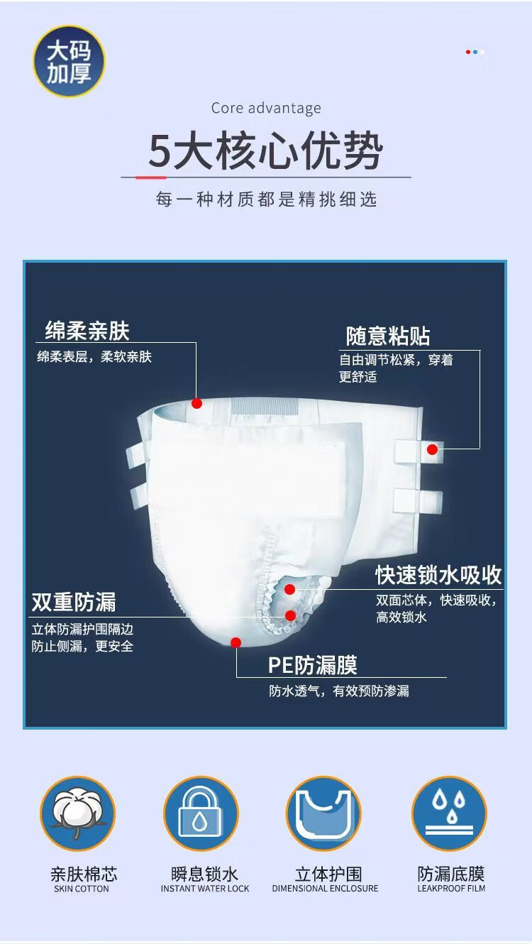 【透气不闷热】成人纸尿裤加厚夜用一次性尿不湿老年人大码男女 【全新加厚升级】XL码40片加厚吸收型