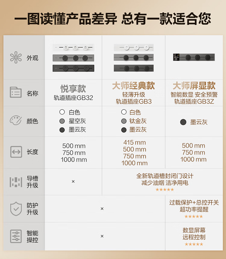 公牛(BULL)轨道插座餐边柜可移动滑动插排嵌入式大师款插线板家用厨房多功能导轨数显插座 控制+数显屏50cm轨道+3五孔