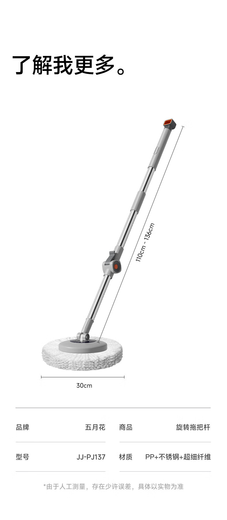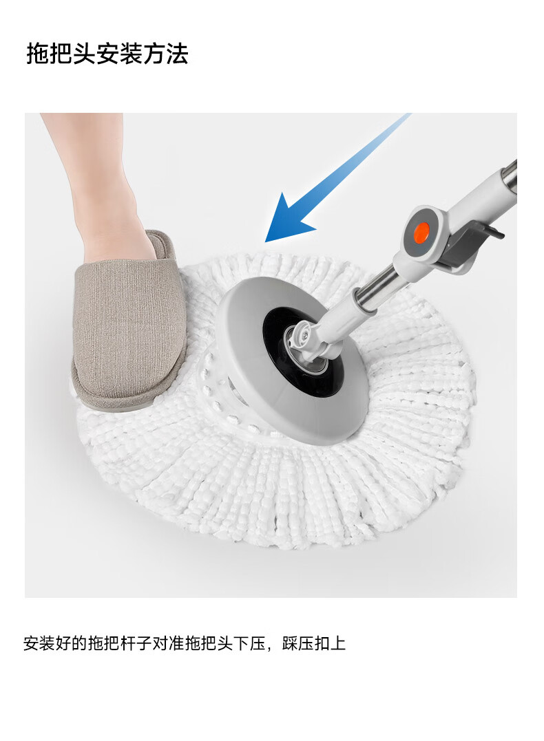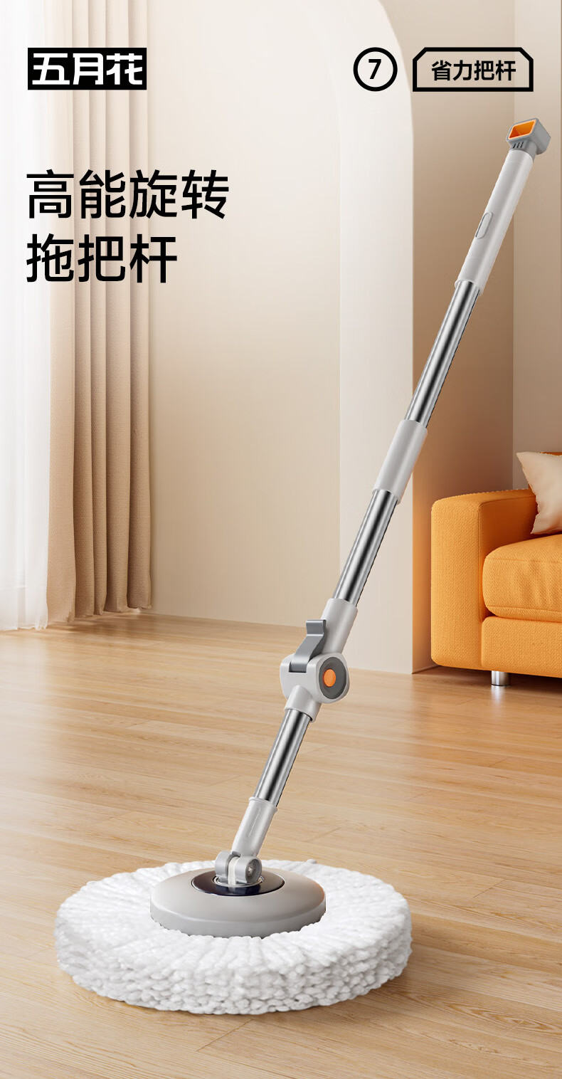 五月花旋转拖把杆共2布加粗拖把盘尘推杆圆拖把头配件杆盘套装JJ-PJ137