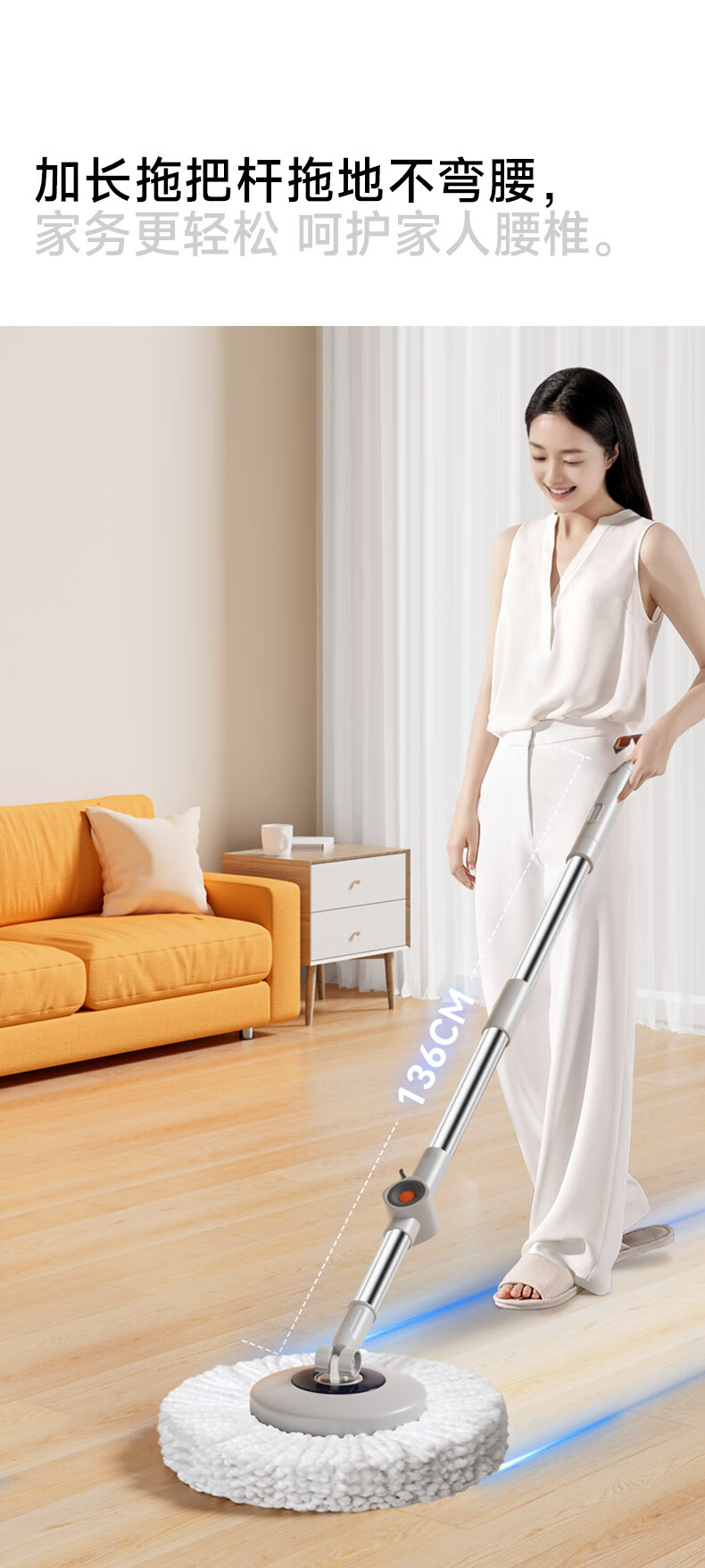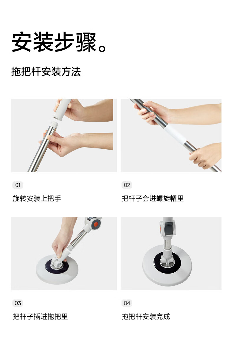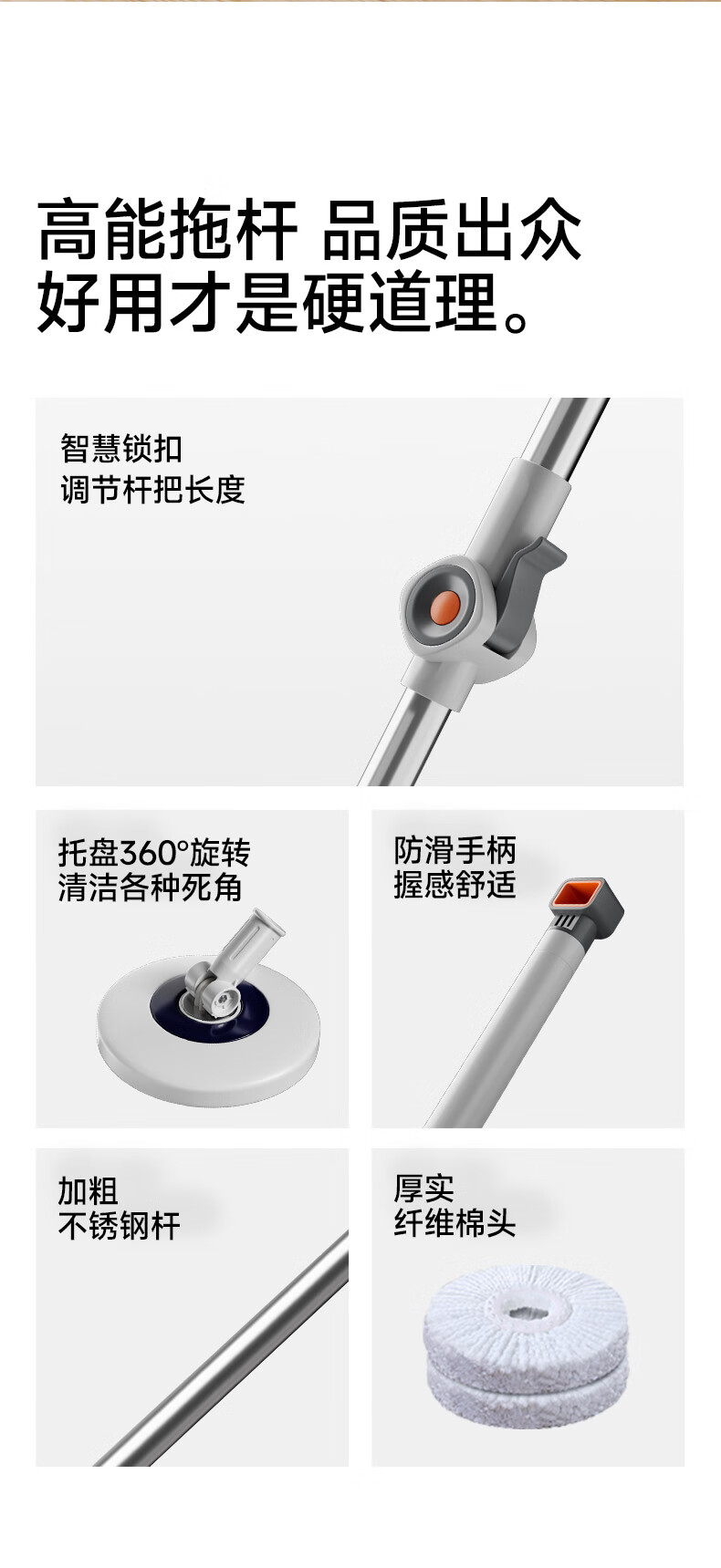 五月花旋转拖把杆共2布加粗拖把盘尘推杆圆拖把头配件杆盘套装JJ-PJ137