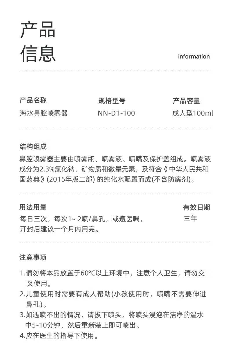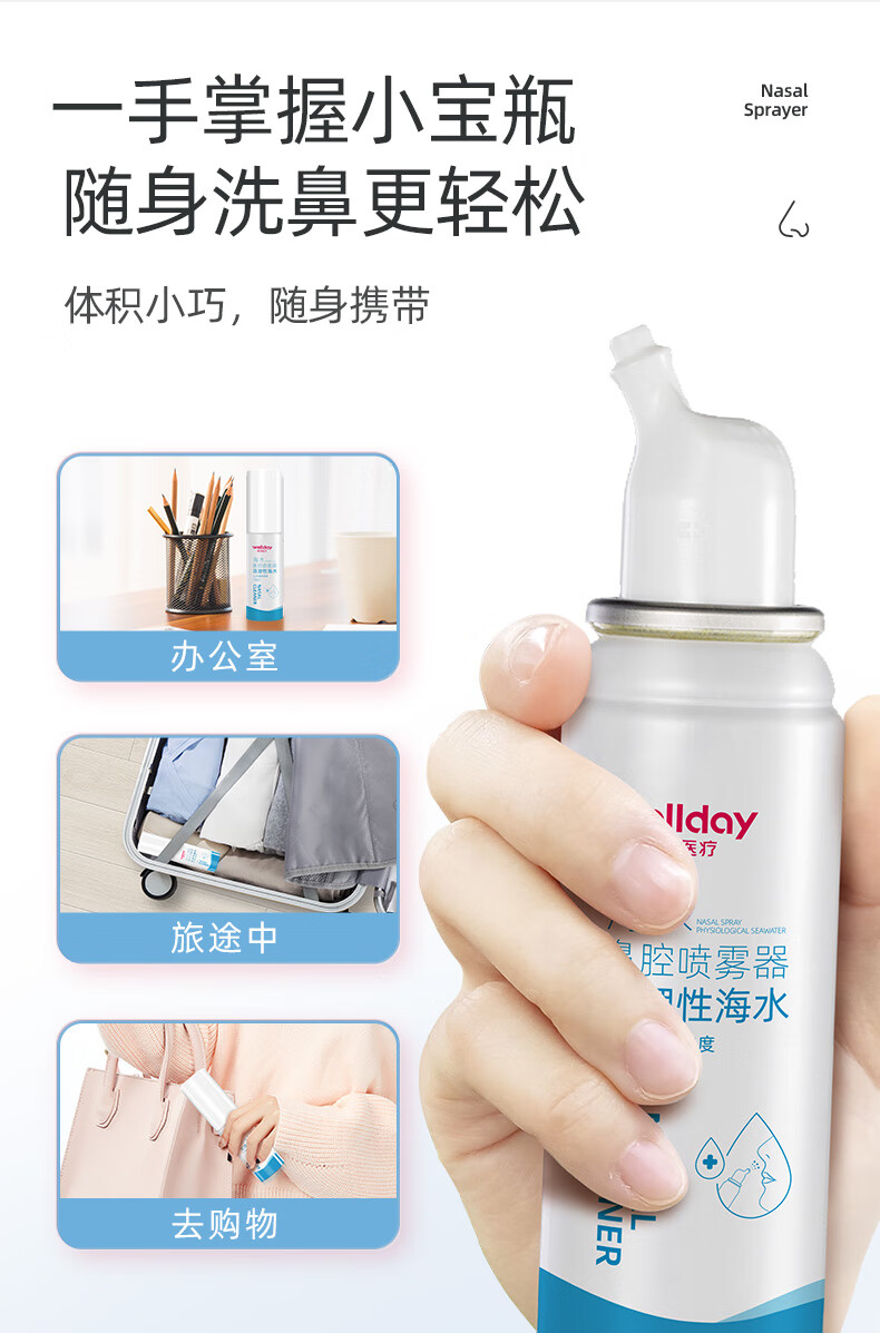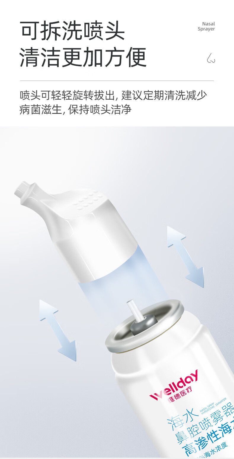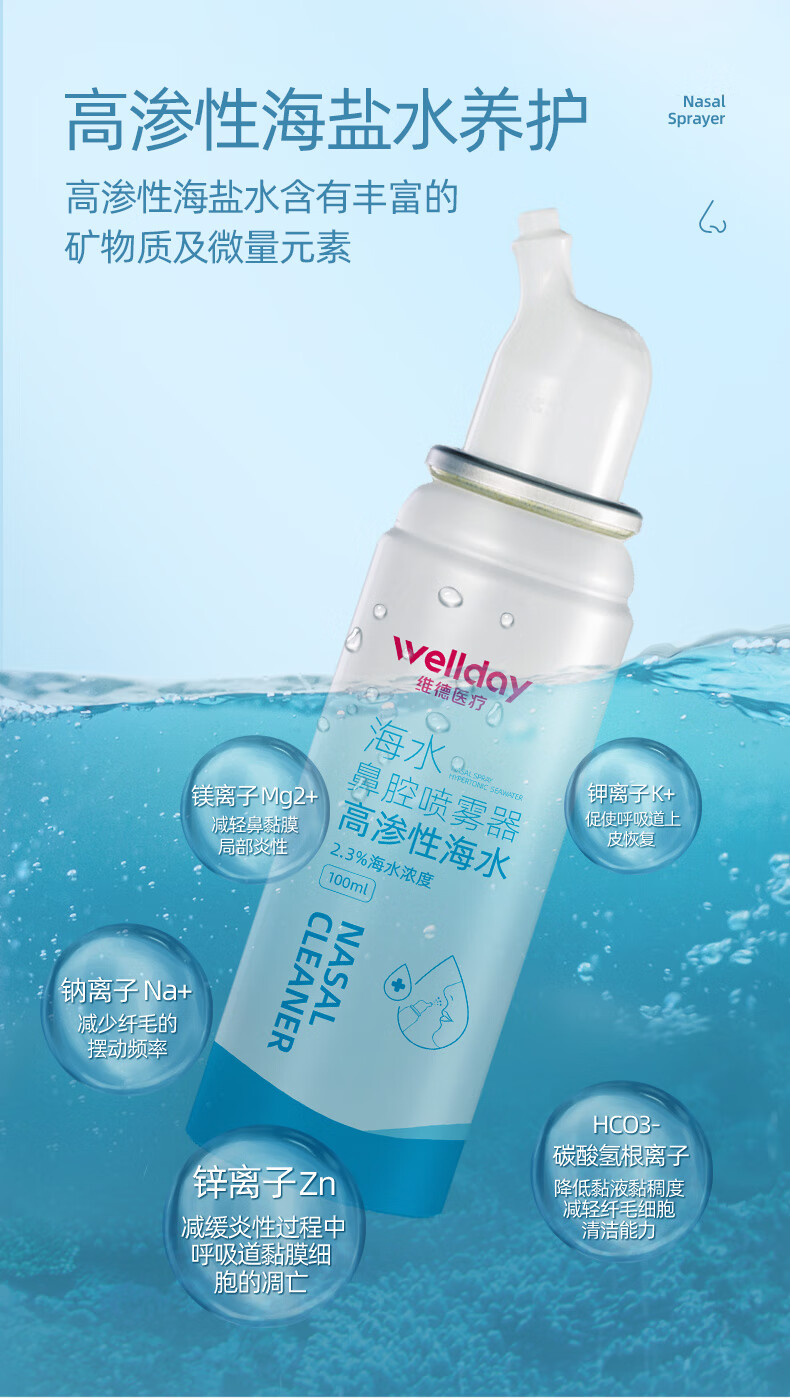 维德(WELLDAY)生理盐水喷鼻洗鼻腔喷雾海盐水喷鼻洗鼻器鼻炎过敏性鼻炎喷剂 成人高渗100ml 2瓶