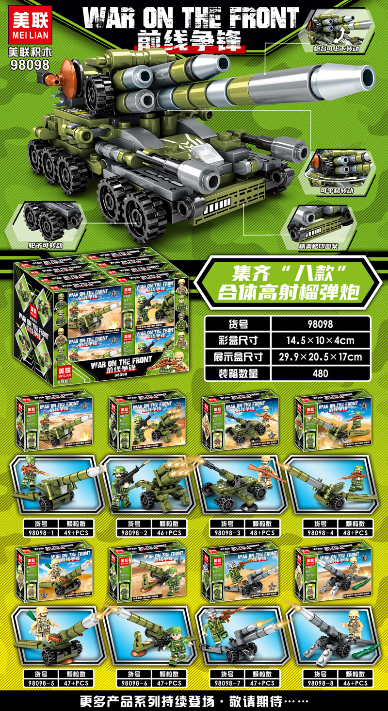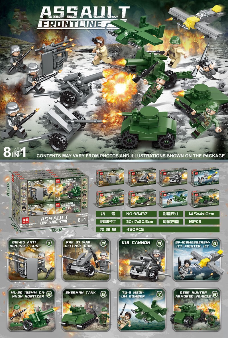 军事积木还原二战前线攻击德美战火硝烟场景大炮坦克拼装儿童玩具 二战前线攻击【8盒装】 送随机军事人仔1只