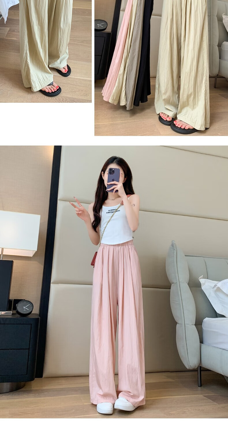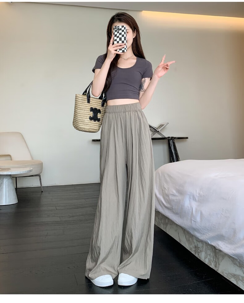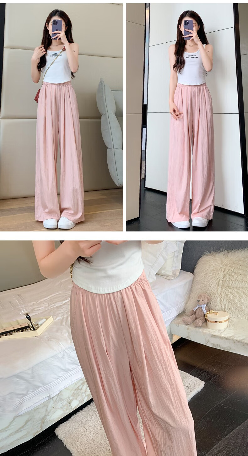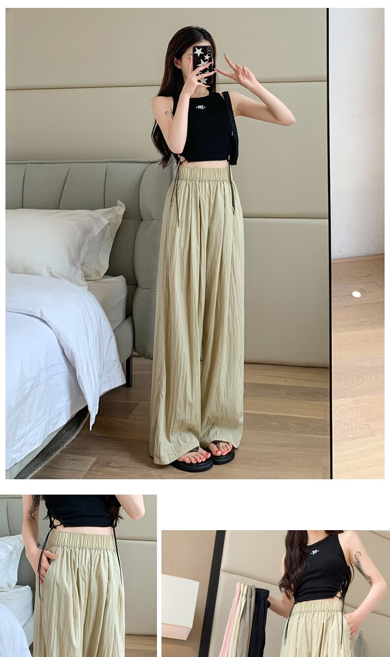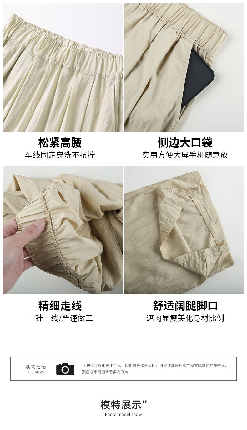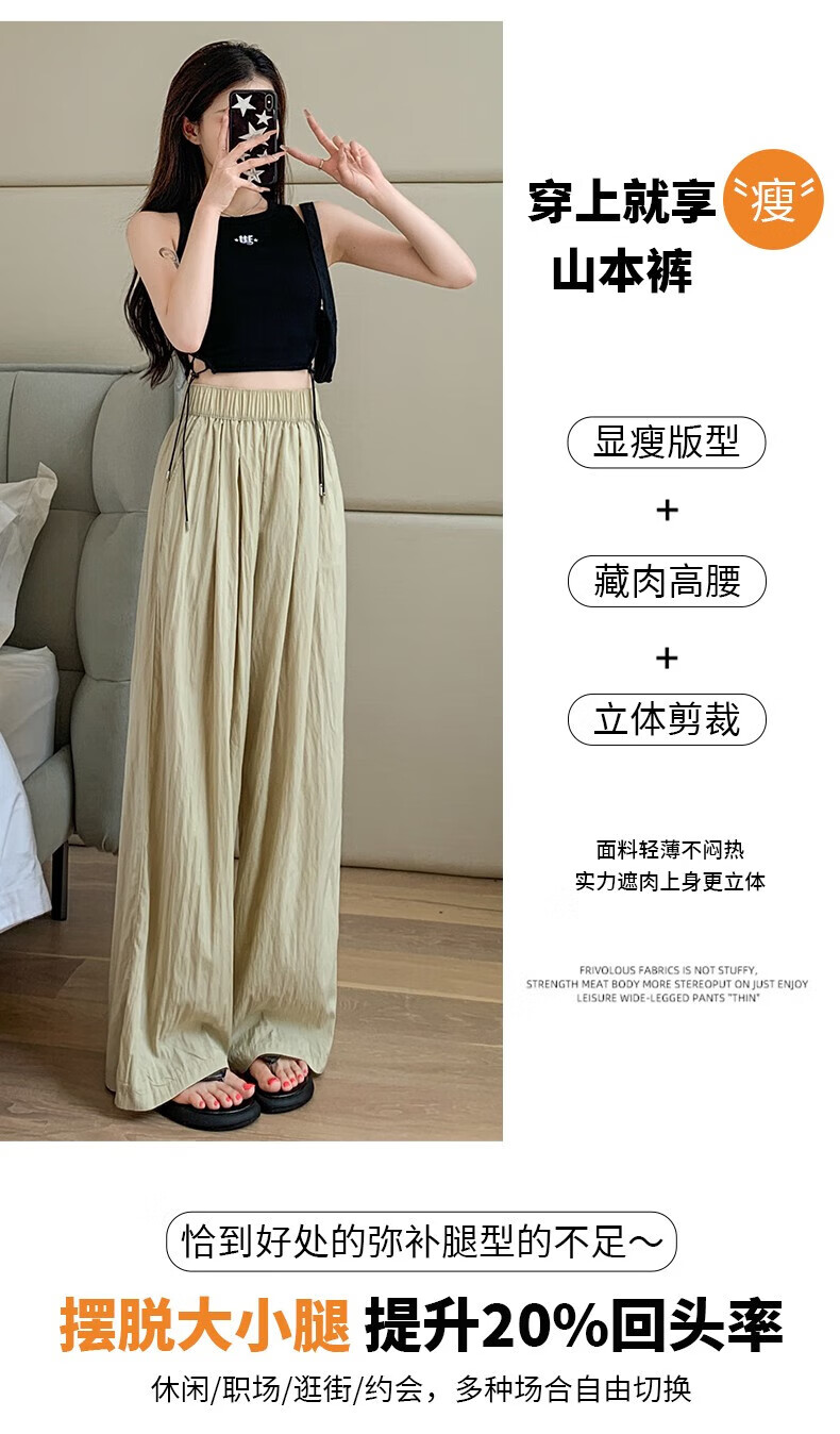 浪莎山本裤女夏季薄款2025新款高腰垂感宽松慵懒冰丝休闲阔腿防晒裤子 奶杏色 M 【推荐101-115斤】