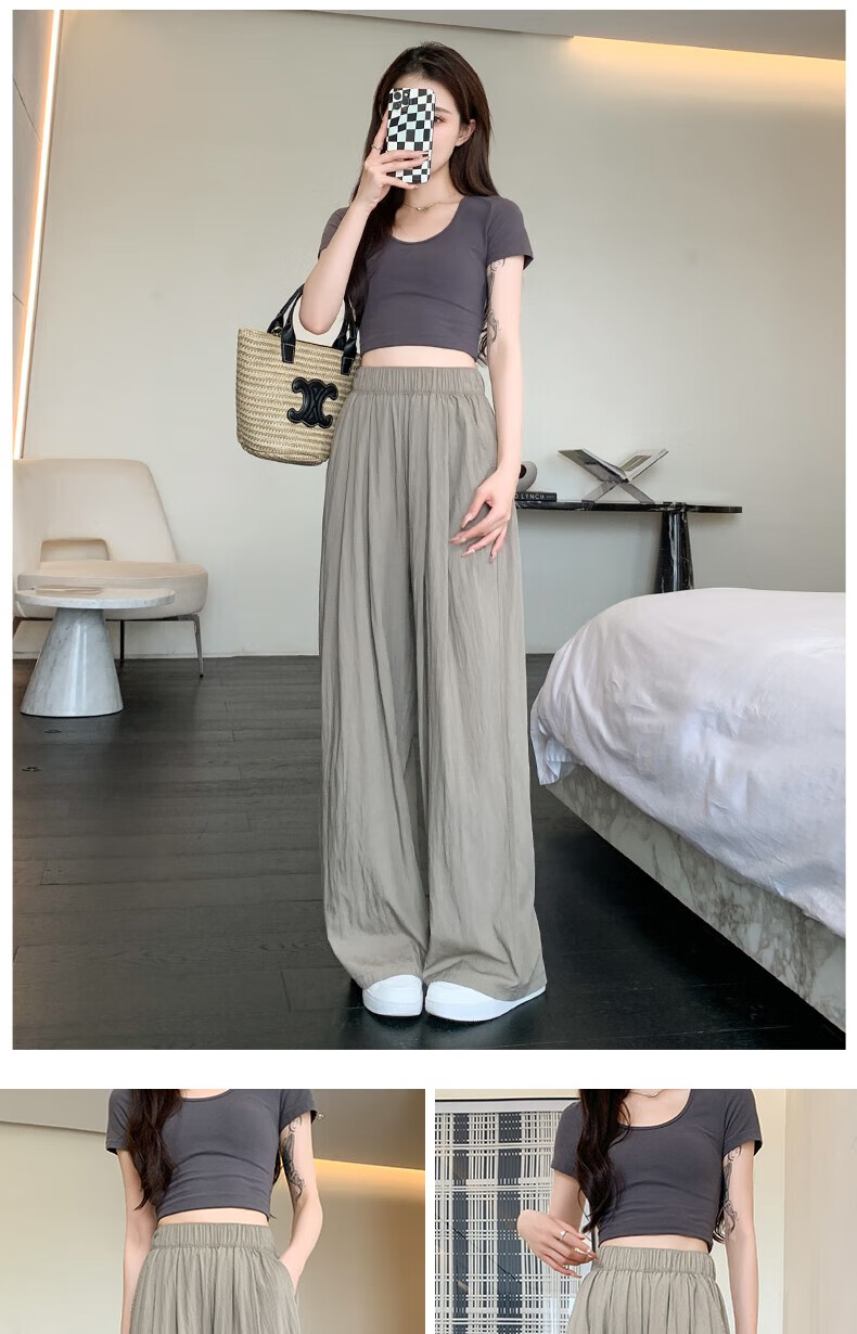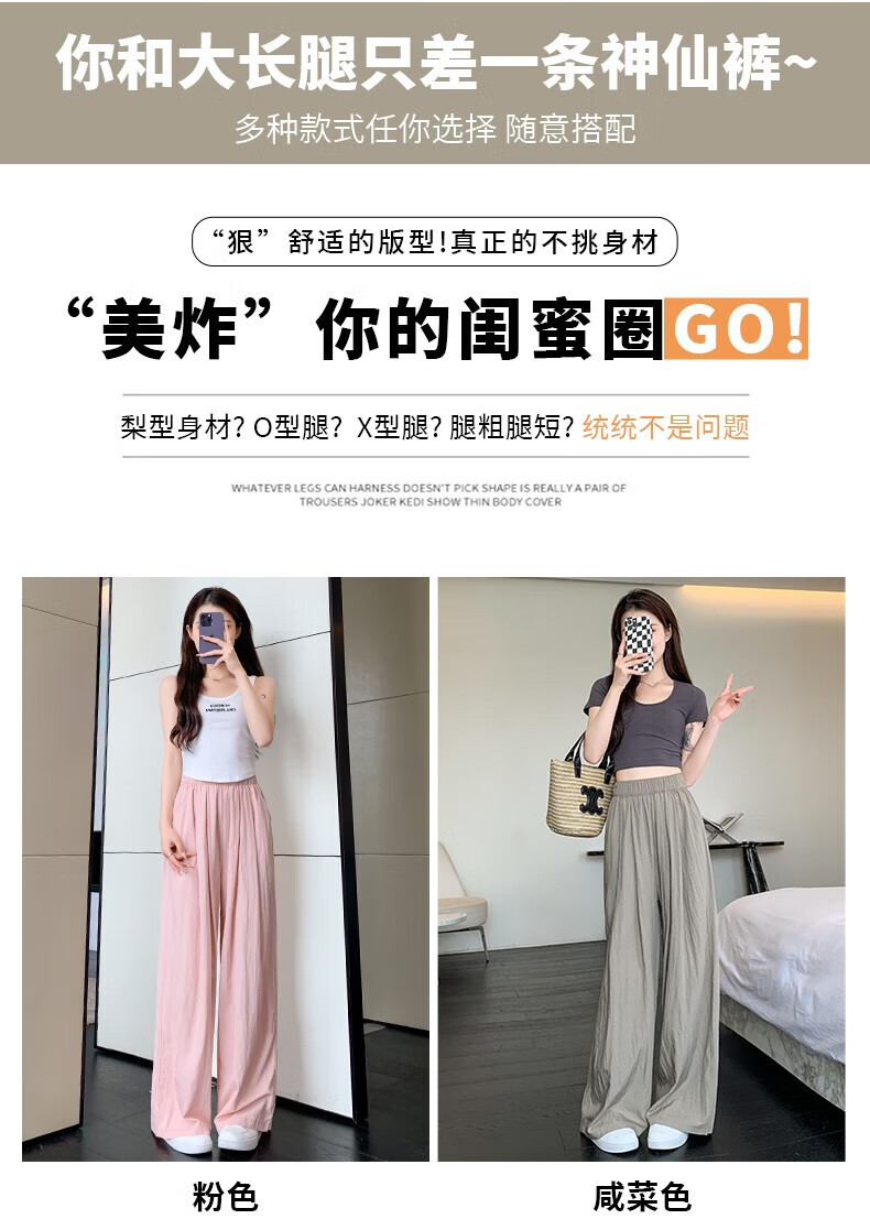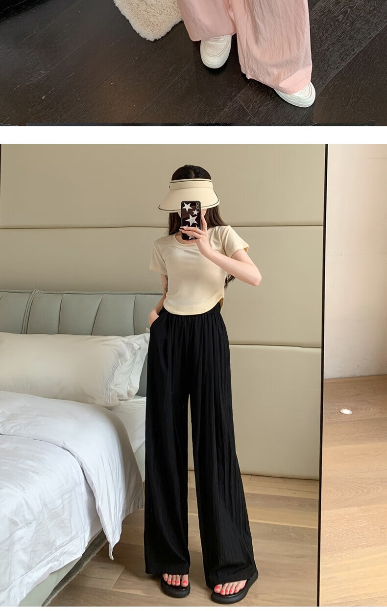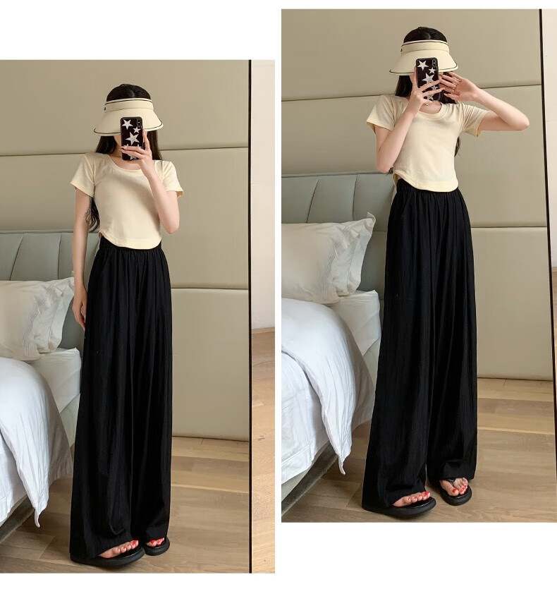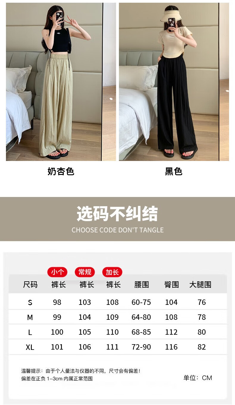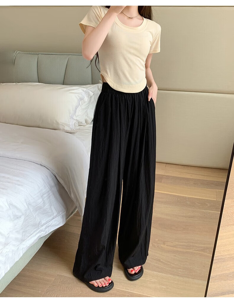 浪莎山本裤女夏季薄款2025新款高腰垂感宽松慵懒冰丝休闲阔腿防晒裤子 奶杏色 M 【推荐101-115斤】