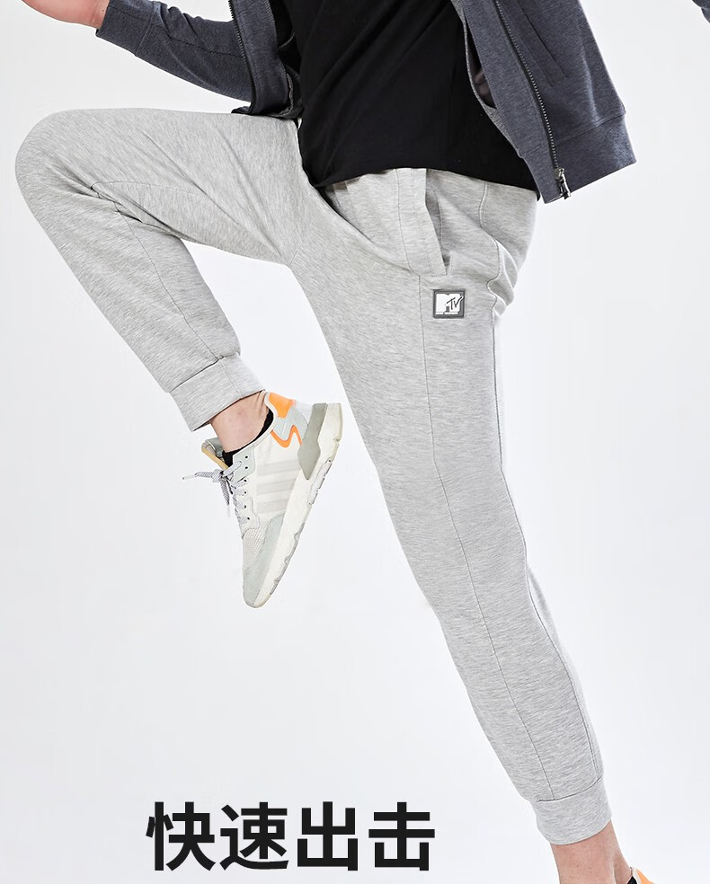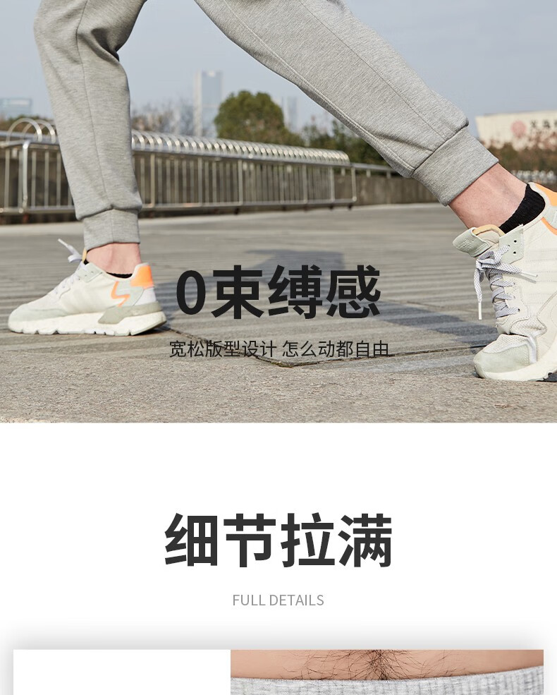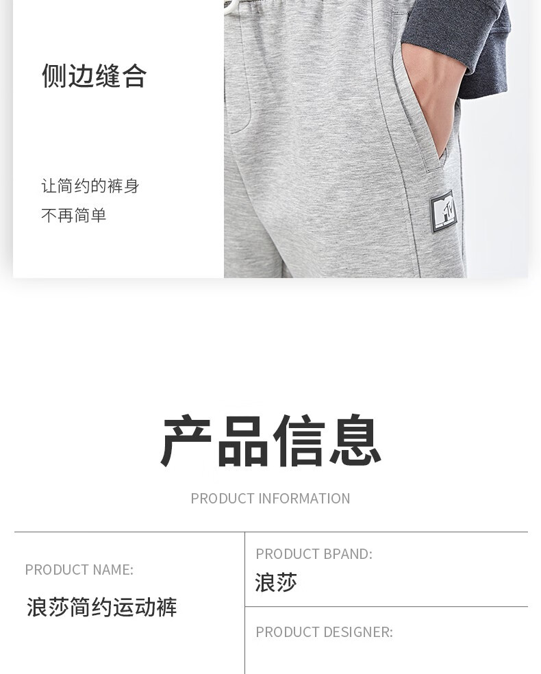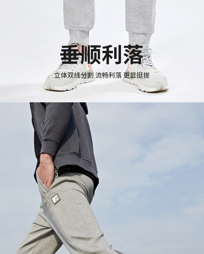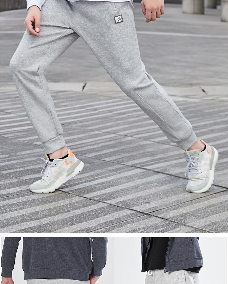 浪莎灰色运动裤男士春秋季休闲长裤直筒束脚卫裤宽松篮球跑步训练裤子 男款-浅灰 3XL (适合150-170斤)