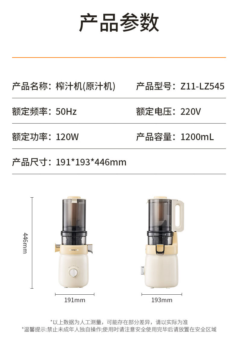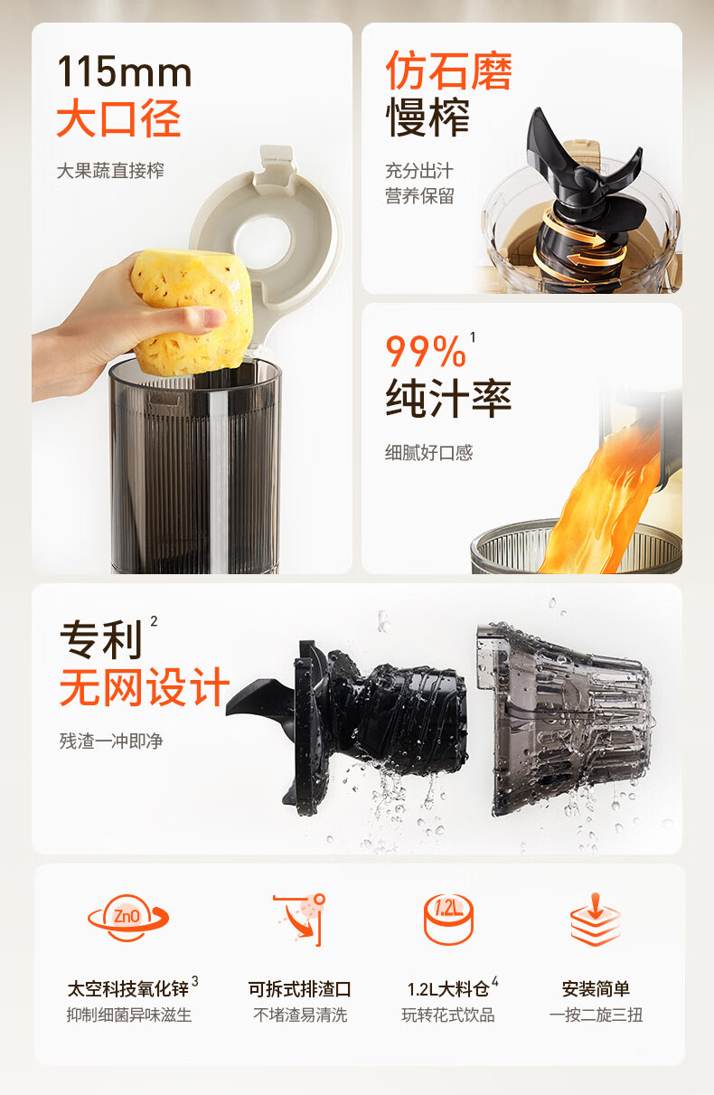 九阳(Joyoung)原汁机 NFC家用榨汁机冰淇淋机渣汁分离果汁机全自动冷压炸DIY水果冰激凌多功能料理机Z11-LZ545