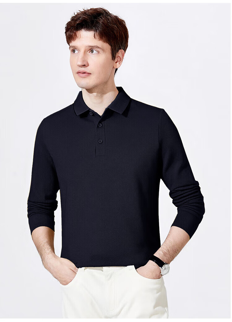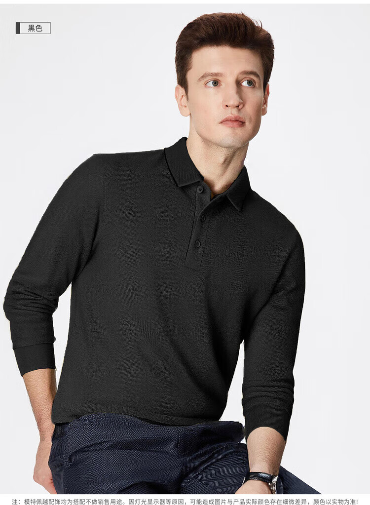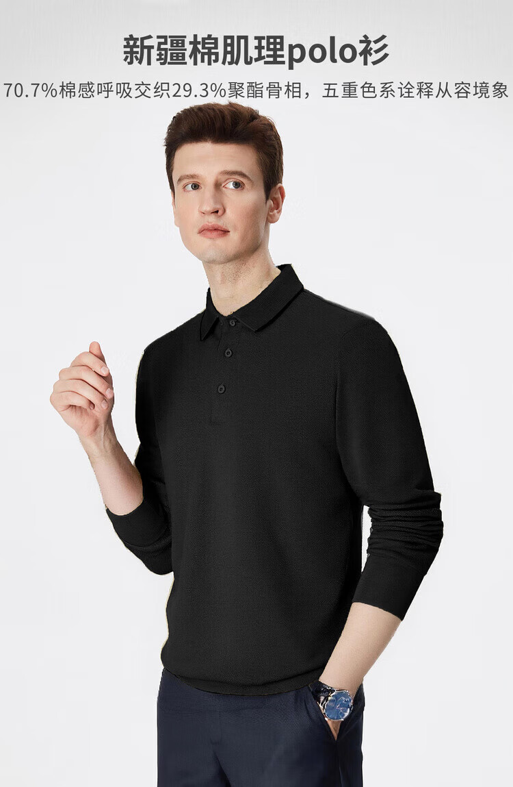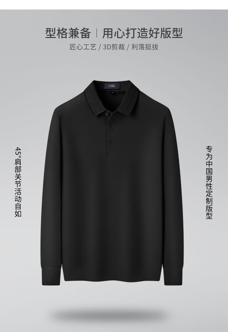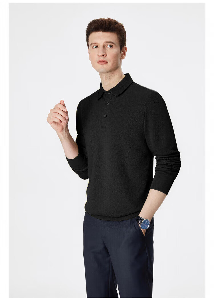 杉杉(FIRS)【珠地网保暖】长袖T恤男秋冬保暖商务休闲免烫易打理POLO衫 黑色 M 170/88A