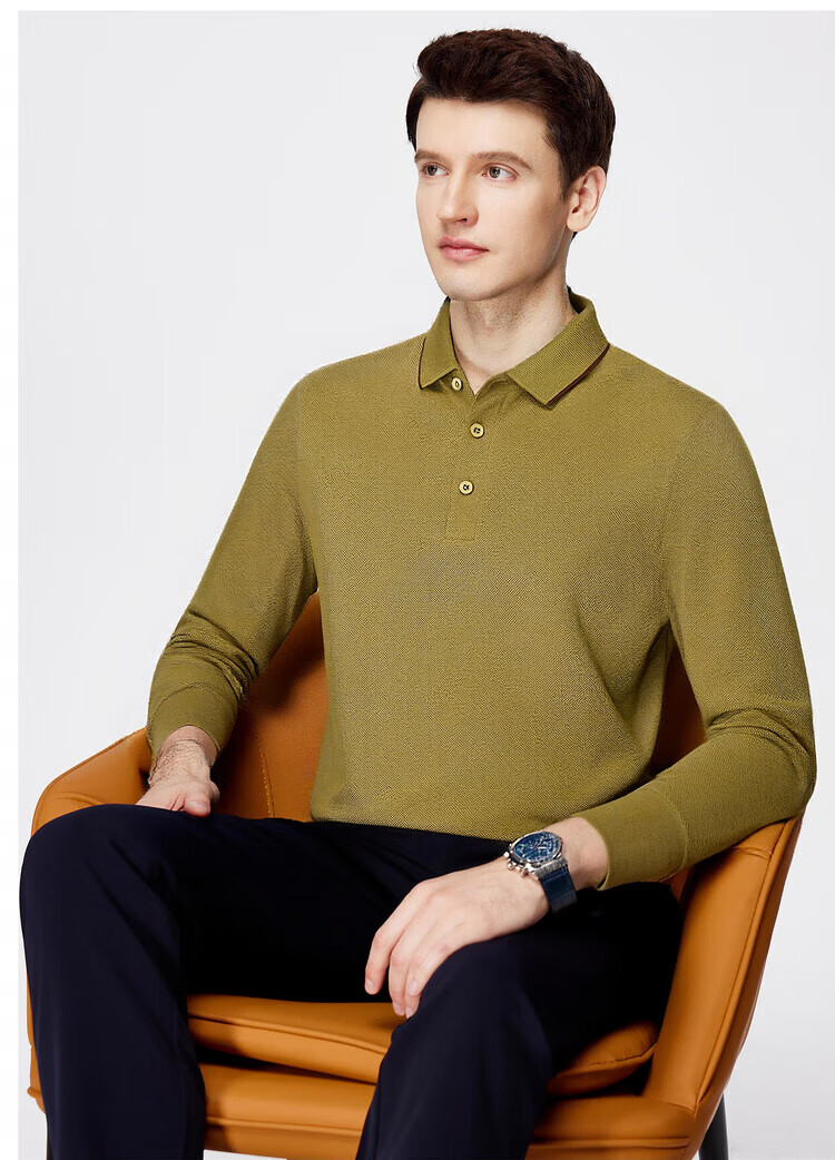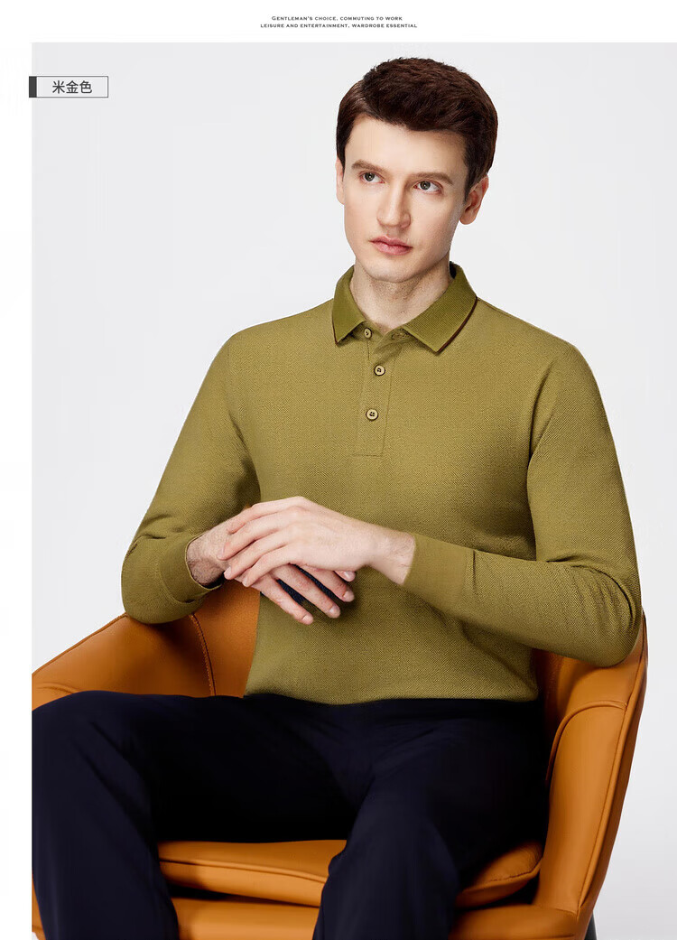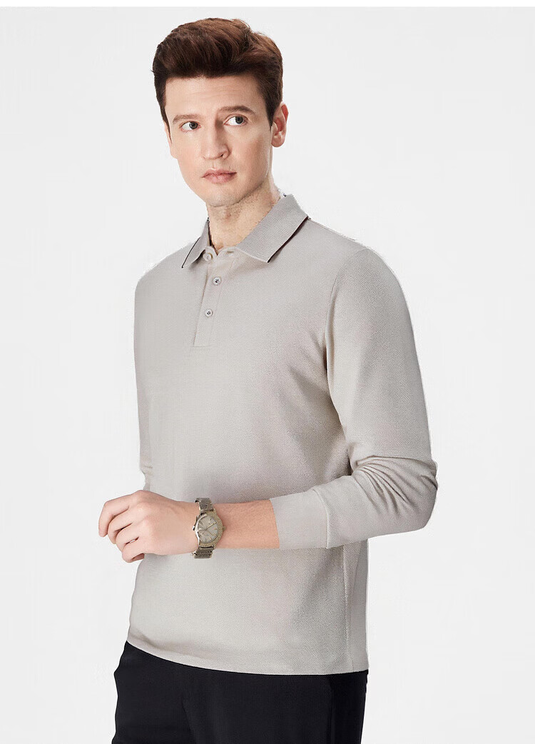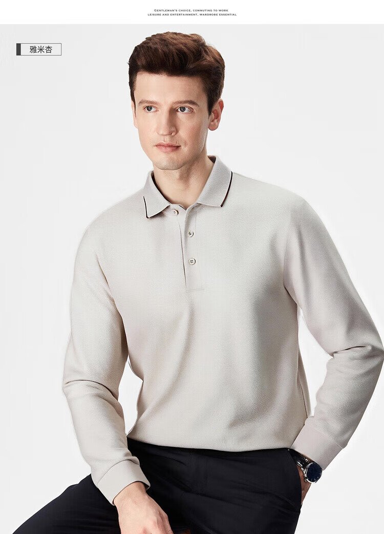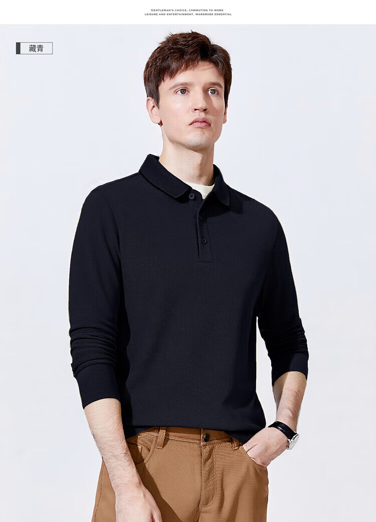 杉杉(FIRS)【珠地网保暖】长袖T恤男秋冬保暖商务休闲免烫易打理POLO衫 黑色 M 170/88A