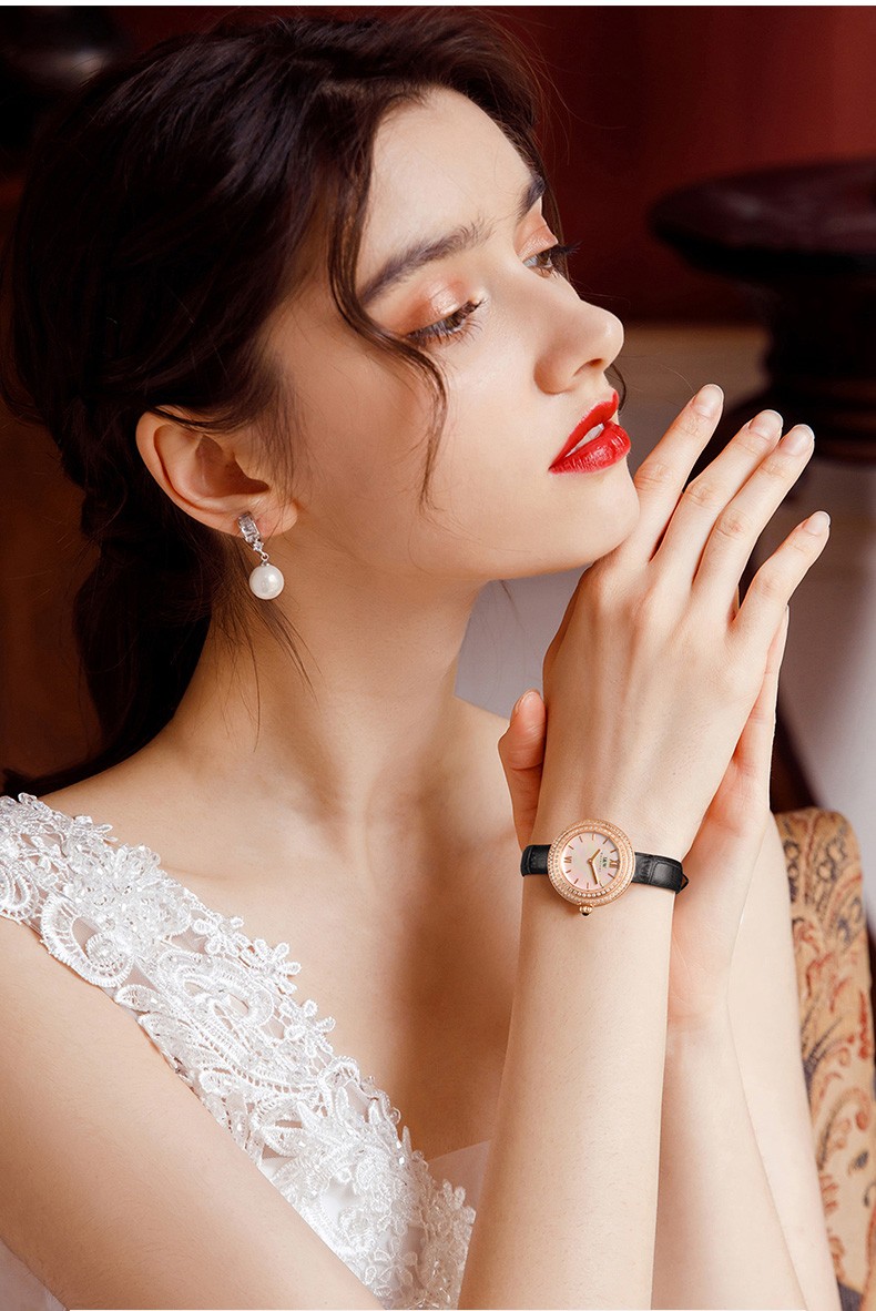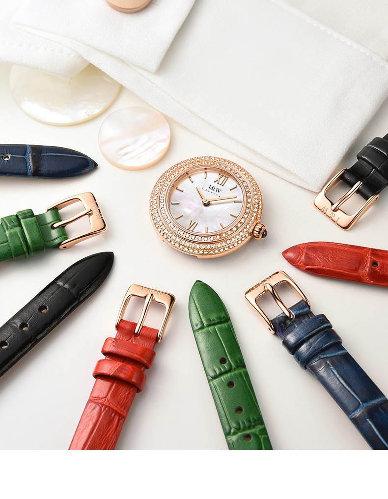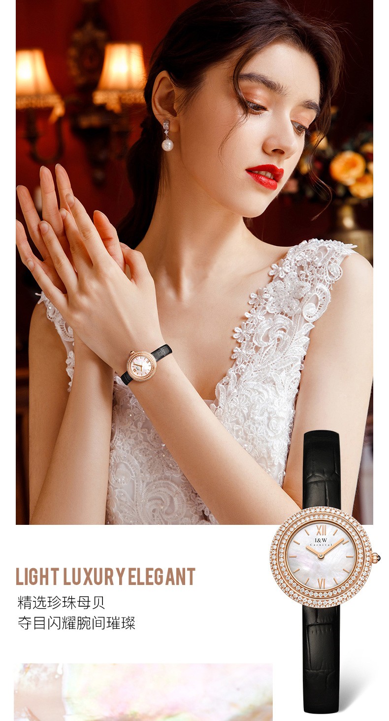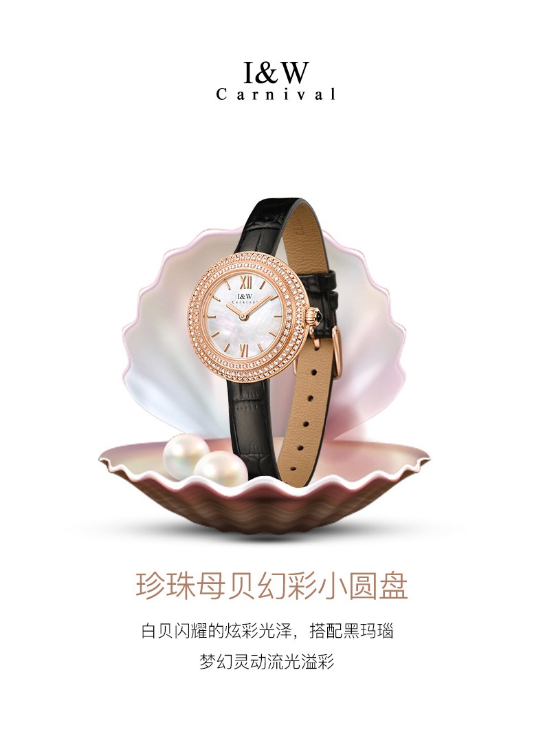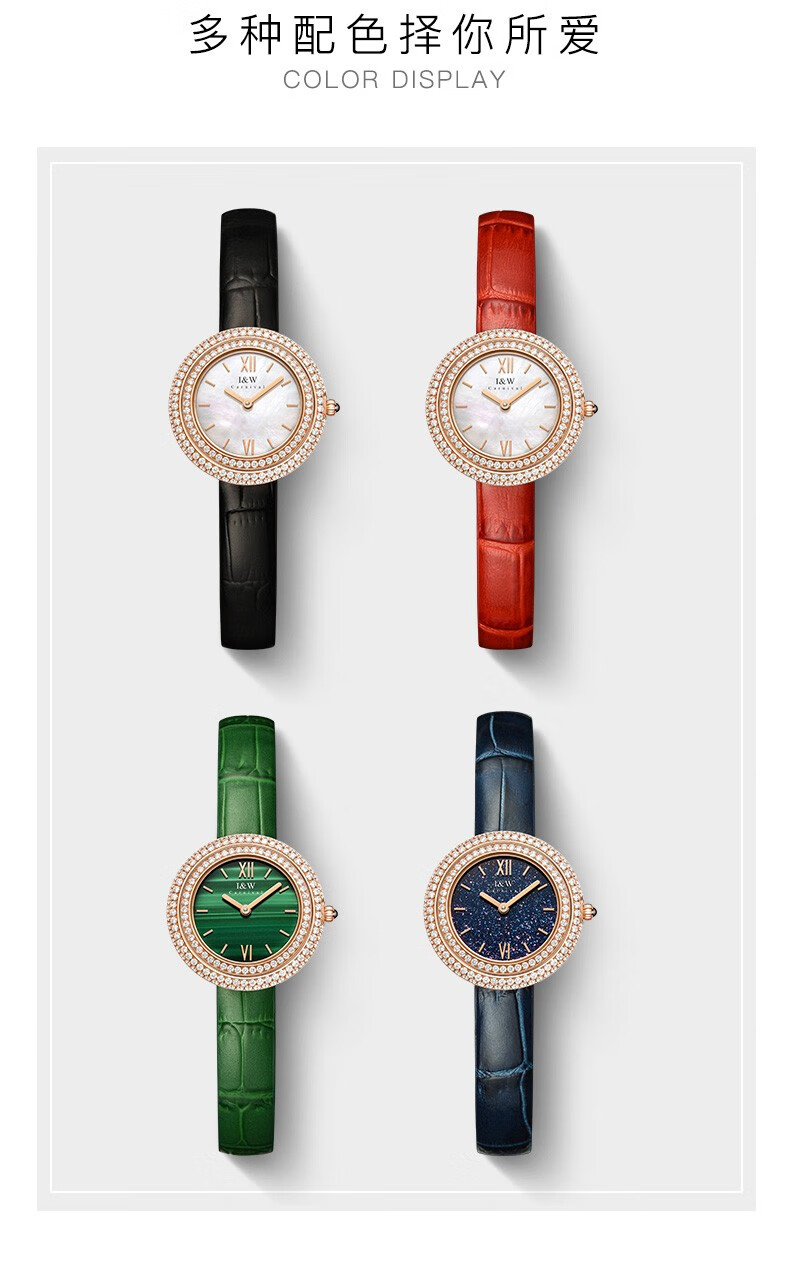 爱沃驰瑞士达芬奇系列璀璨星空轻奢石英手表女士表七夕生日礼物送女友 玫壳白盘|红皮带