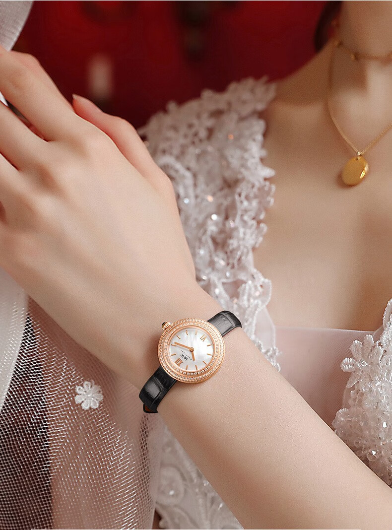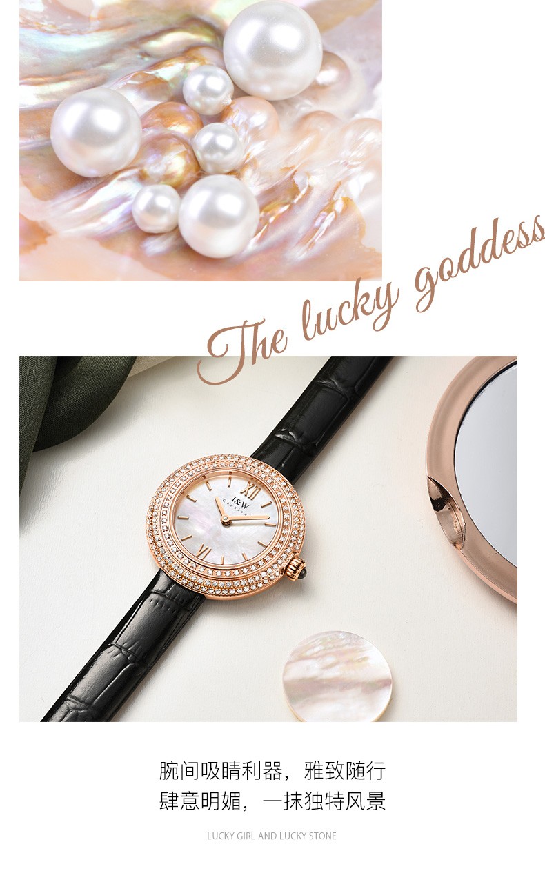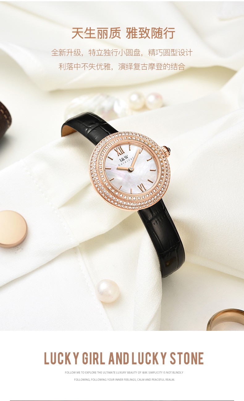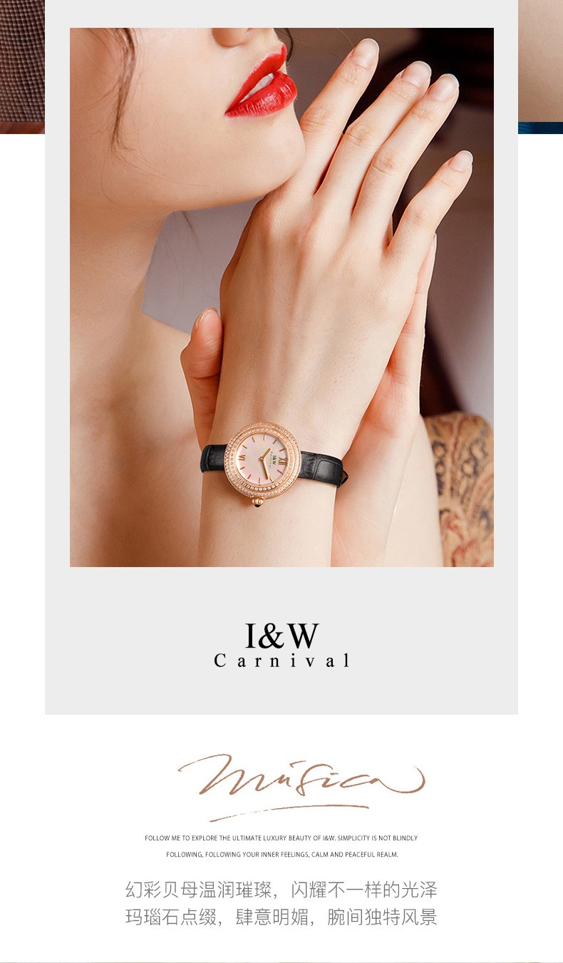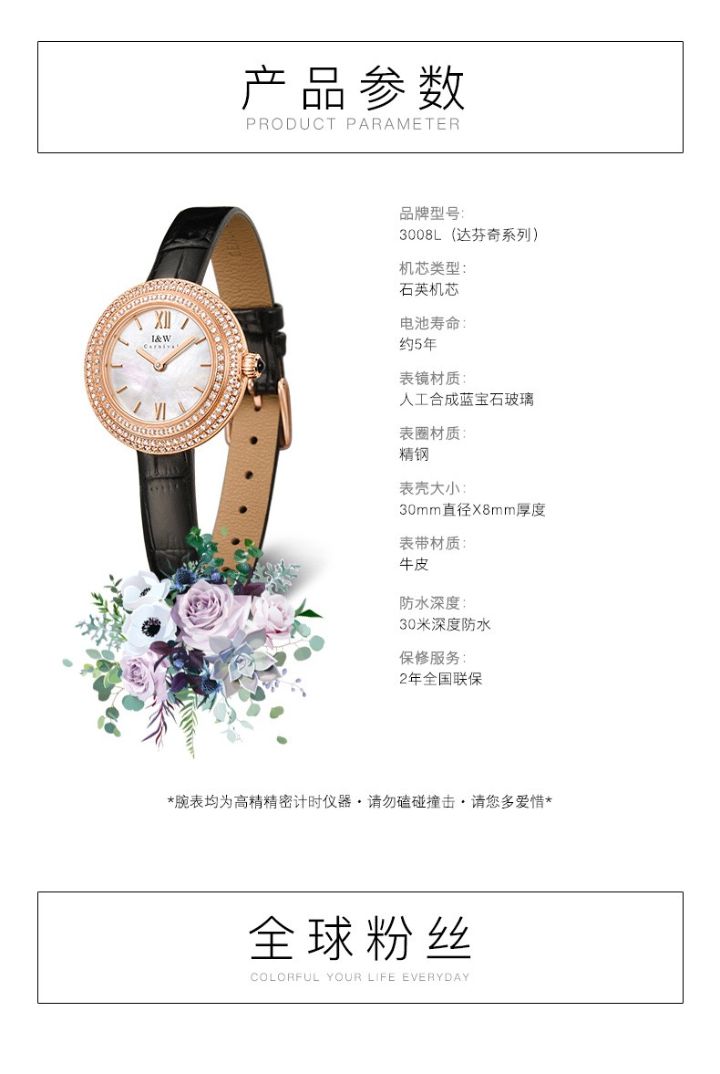 爱沃驰瑞士达芬奇系列璀璨星空轻奢石英手表女士表七夕生日礼物送女友 玫壳白盘|红皮带